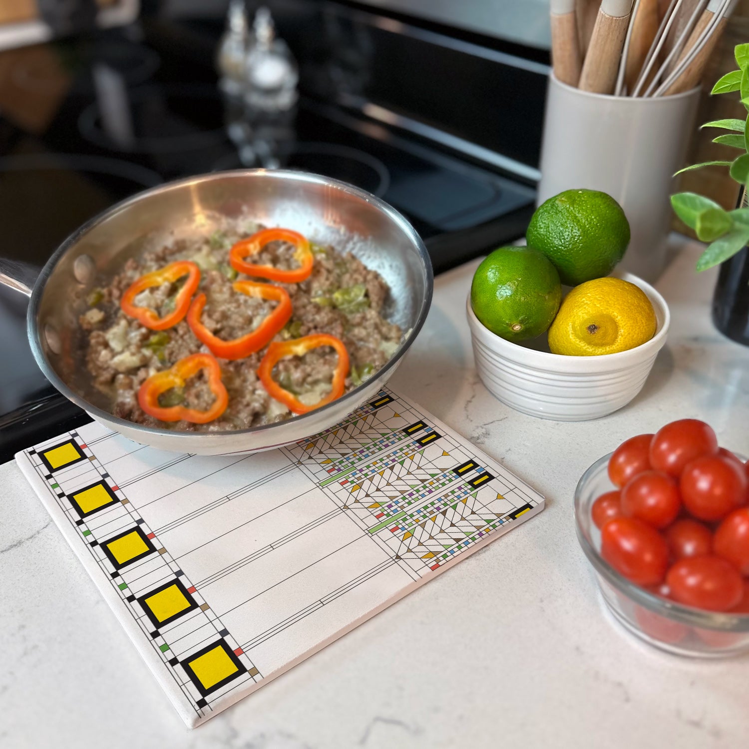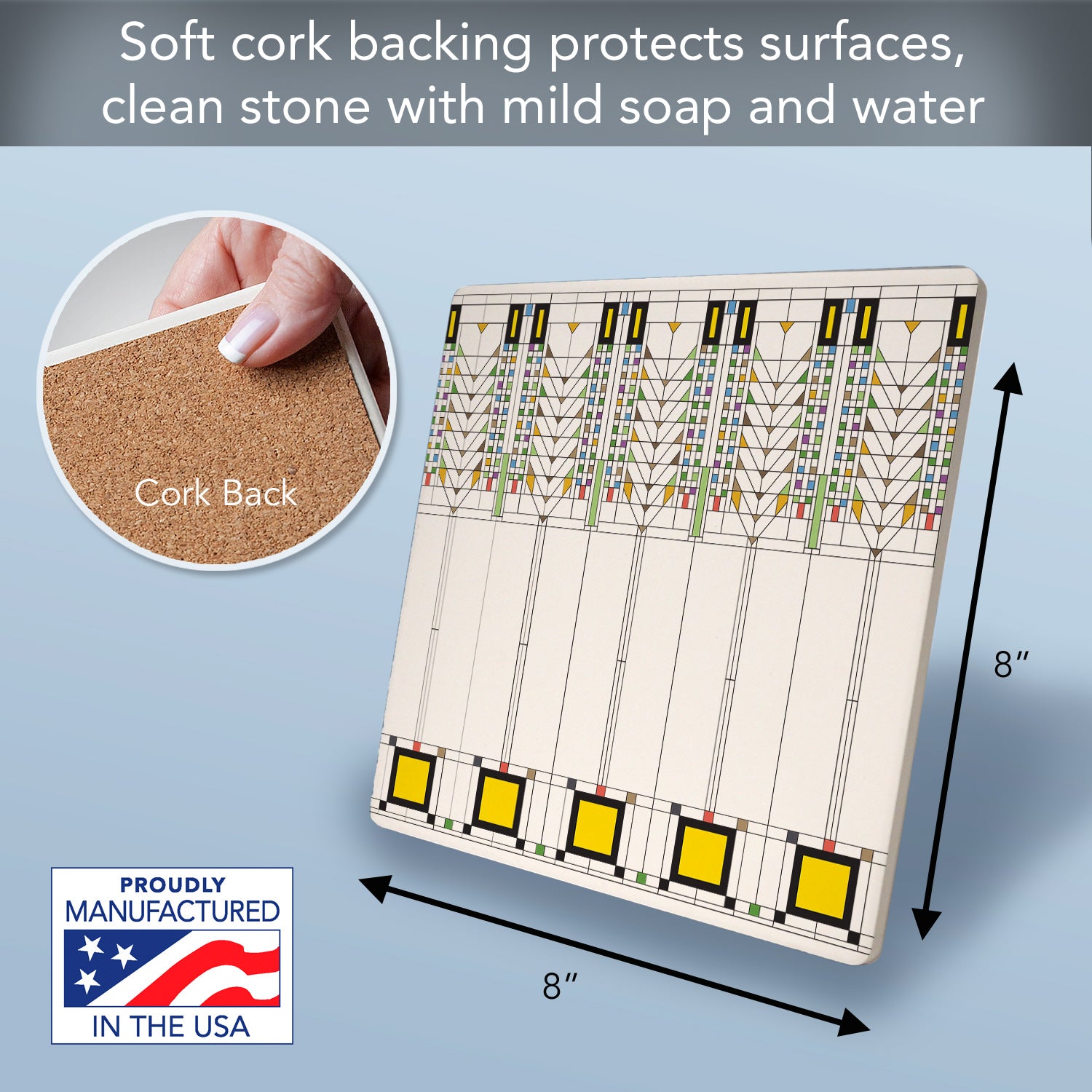 Frank Lloyd Wright's Tree of Life Design on 8" Square Stone Trivet Manufactured in the USA