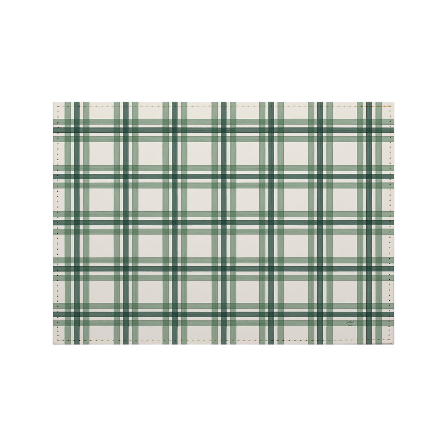 Green Plaid Luxurious Vegan Leather Placemats 4 Pack Look and Feel of Genuine Leather Infused with Copper