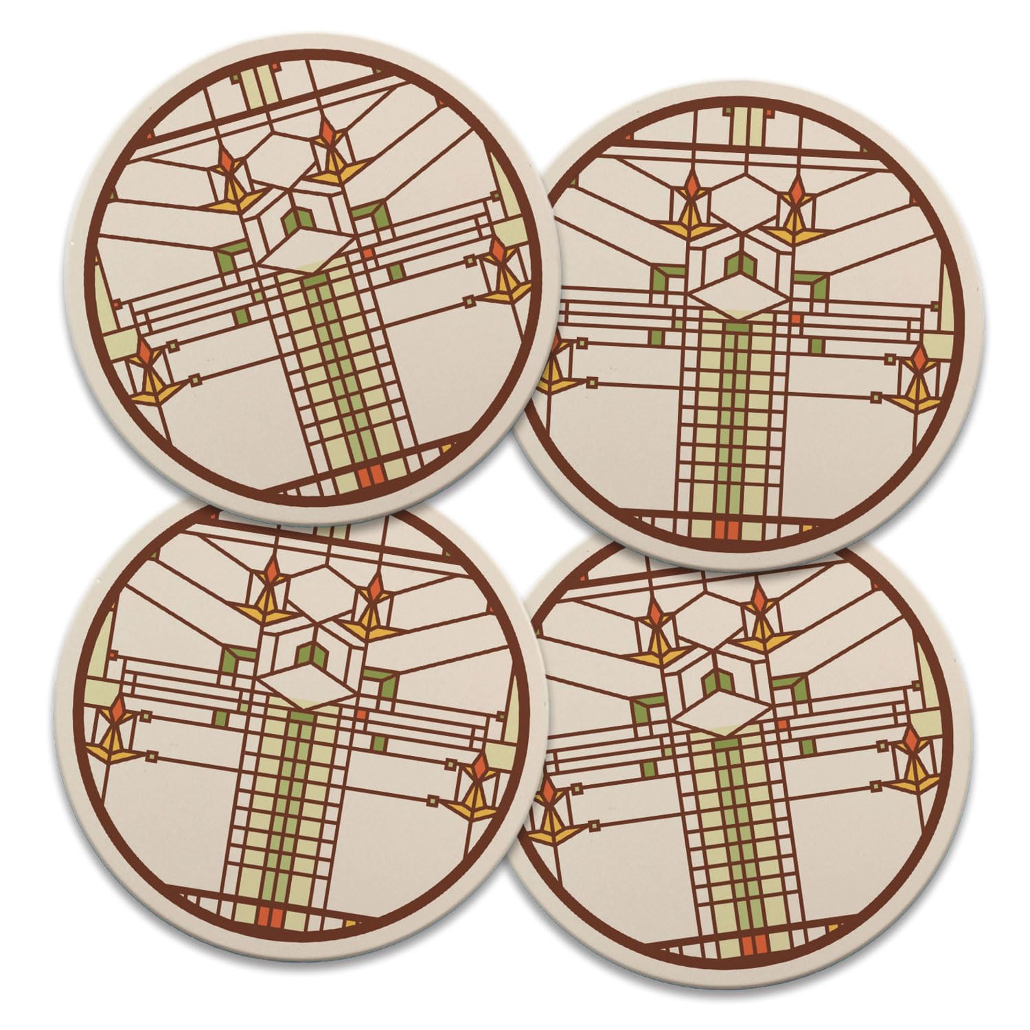 Harley Bradley House Designs from Frank Lloyd Wright Foundation on 4 Pack Round Absorbent Stone Coasters