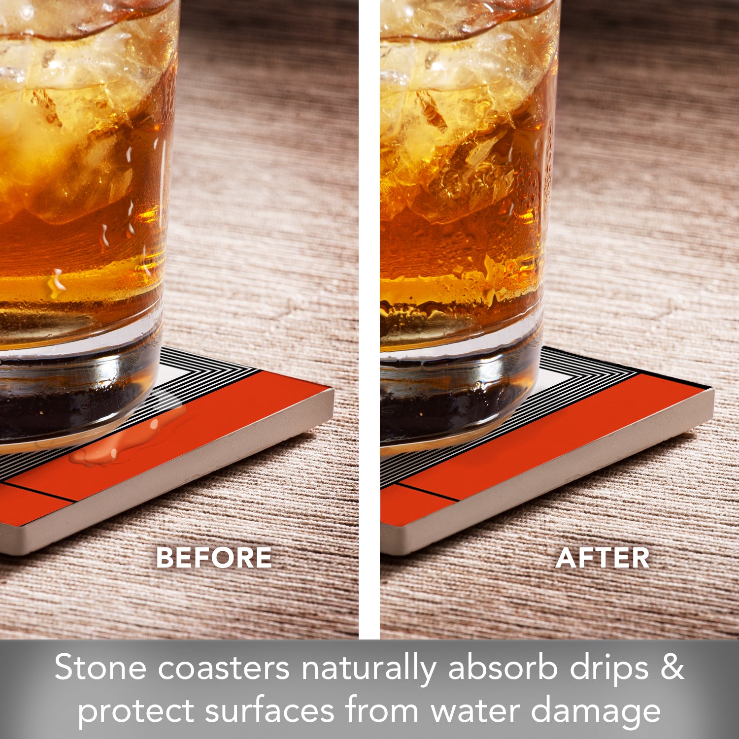 ABSORBENT STONE-Set of 4 natural absorbent stone coasters. Constructed of absorbent stone that absorbs drips and condensation. Absorption prevents rings and stains.