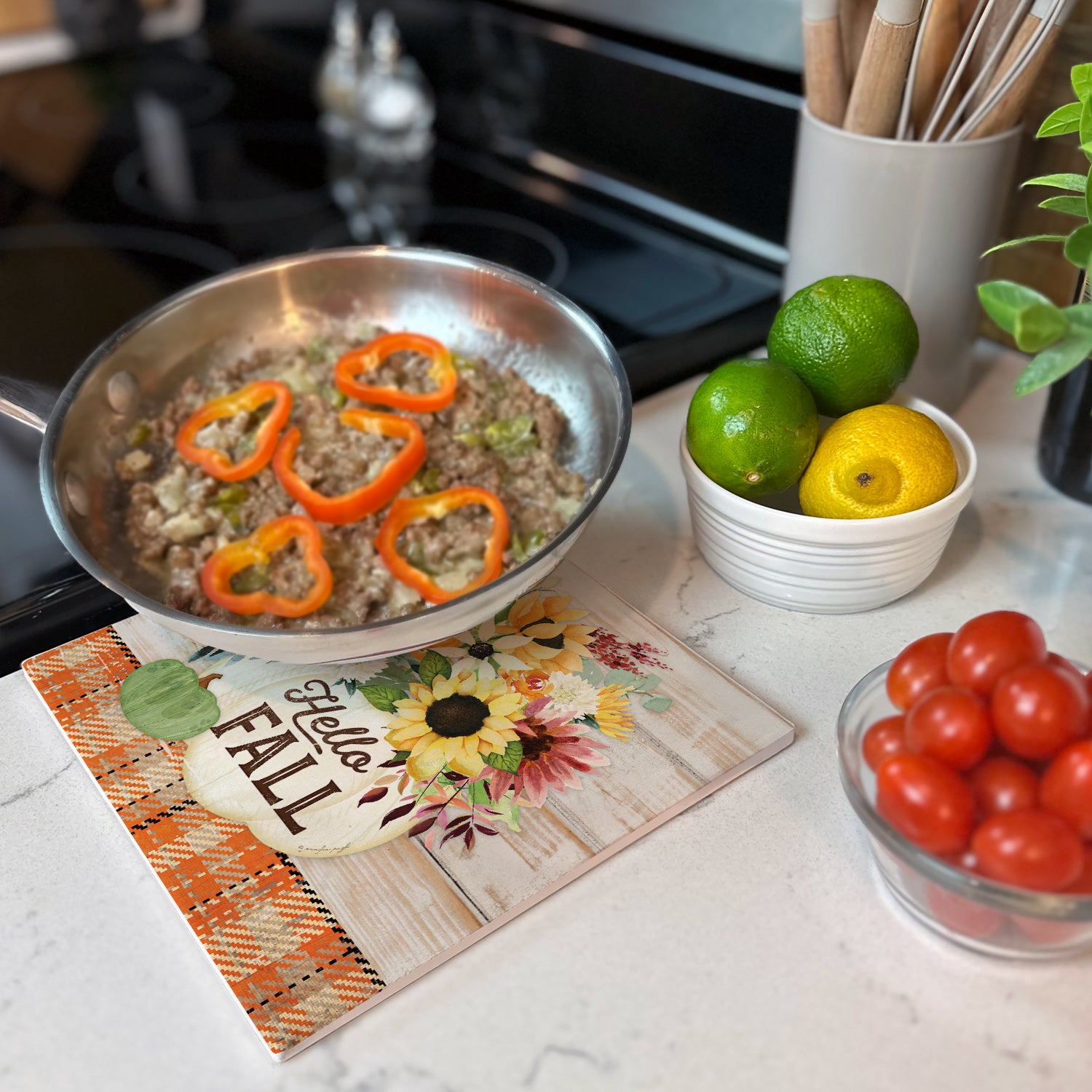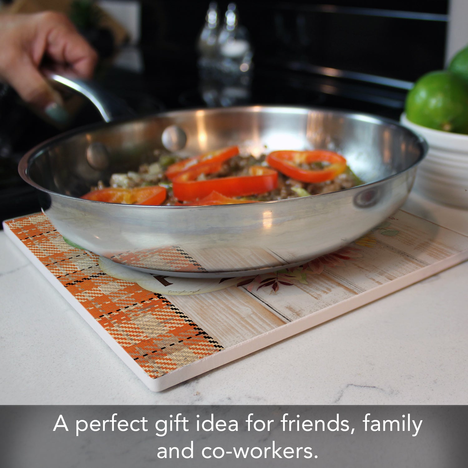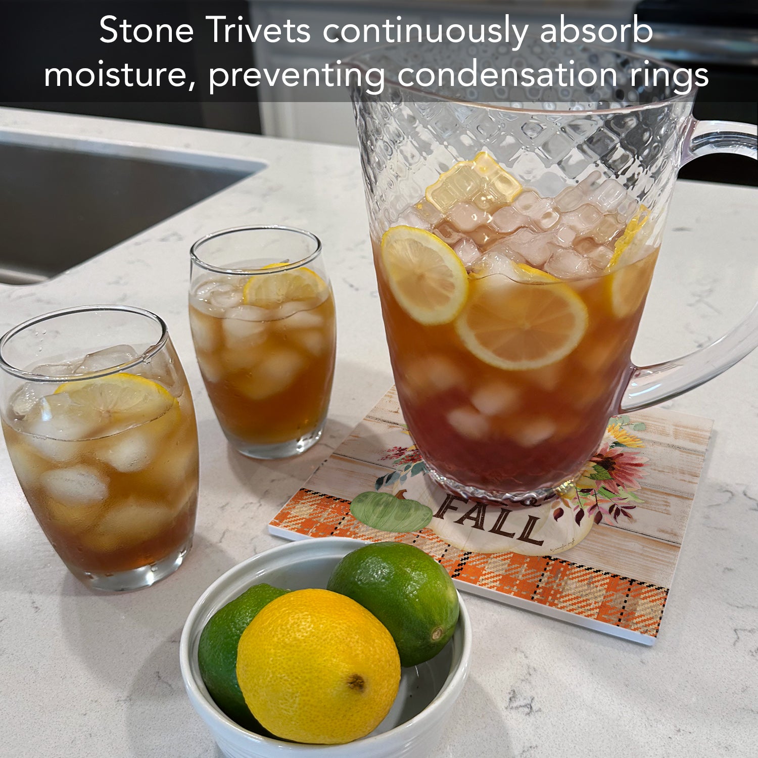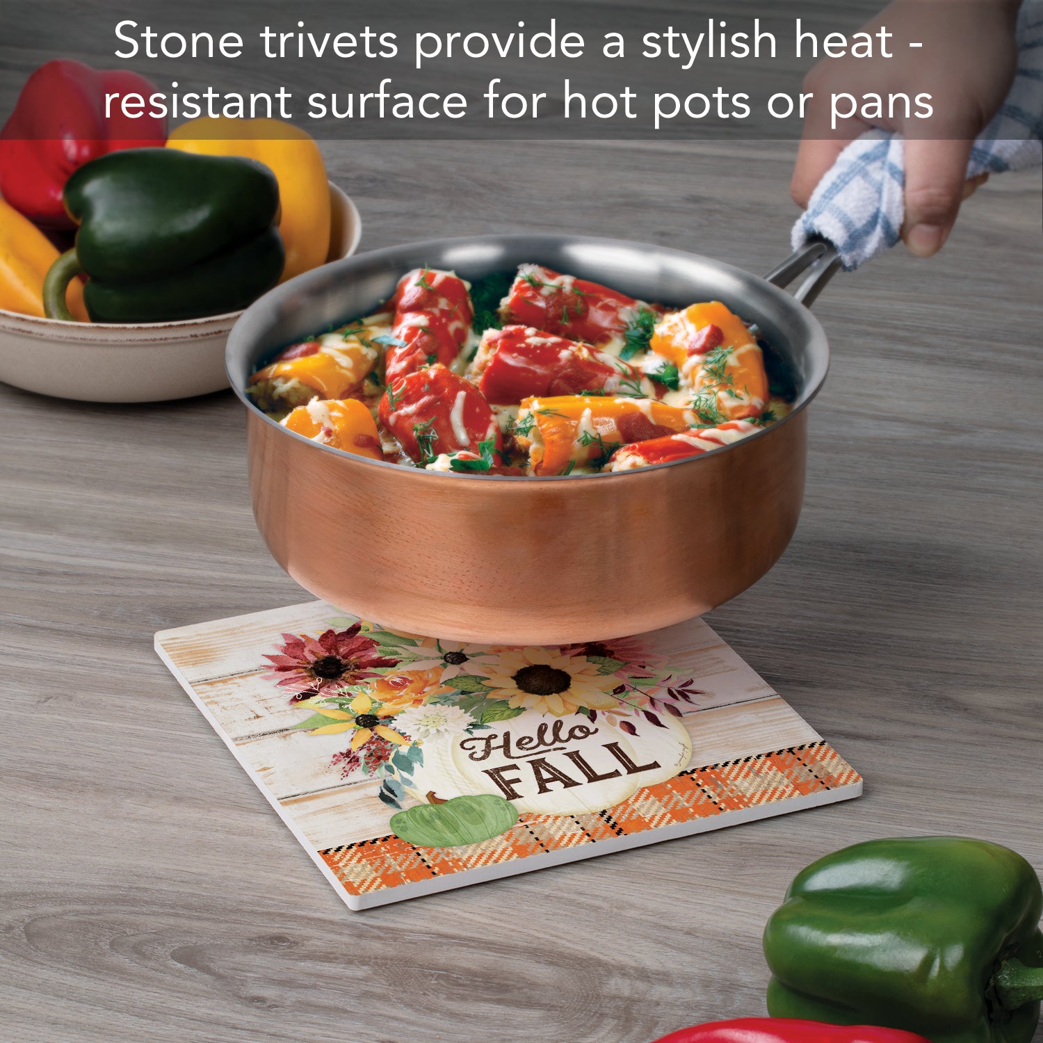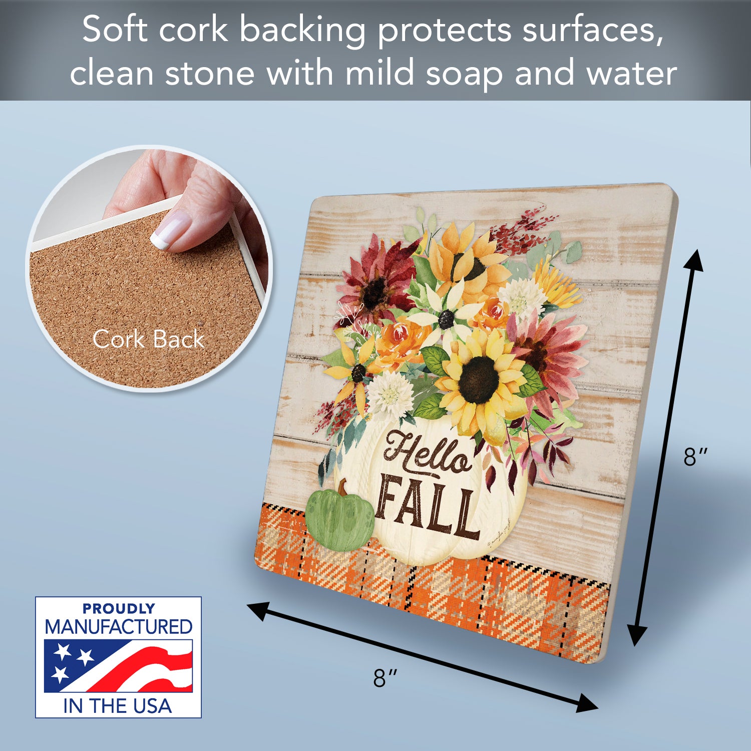 Thirstystone Hello Fall Heat Tolerant Stone Trivet with Non-Skid Cork Backing 8” Square