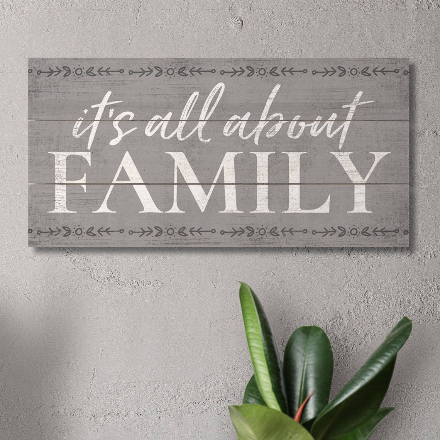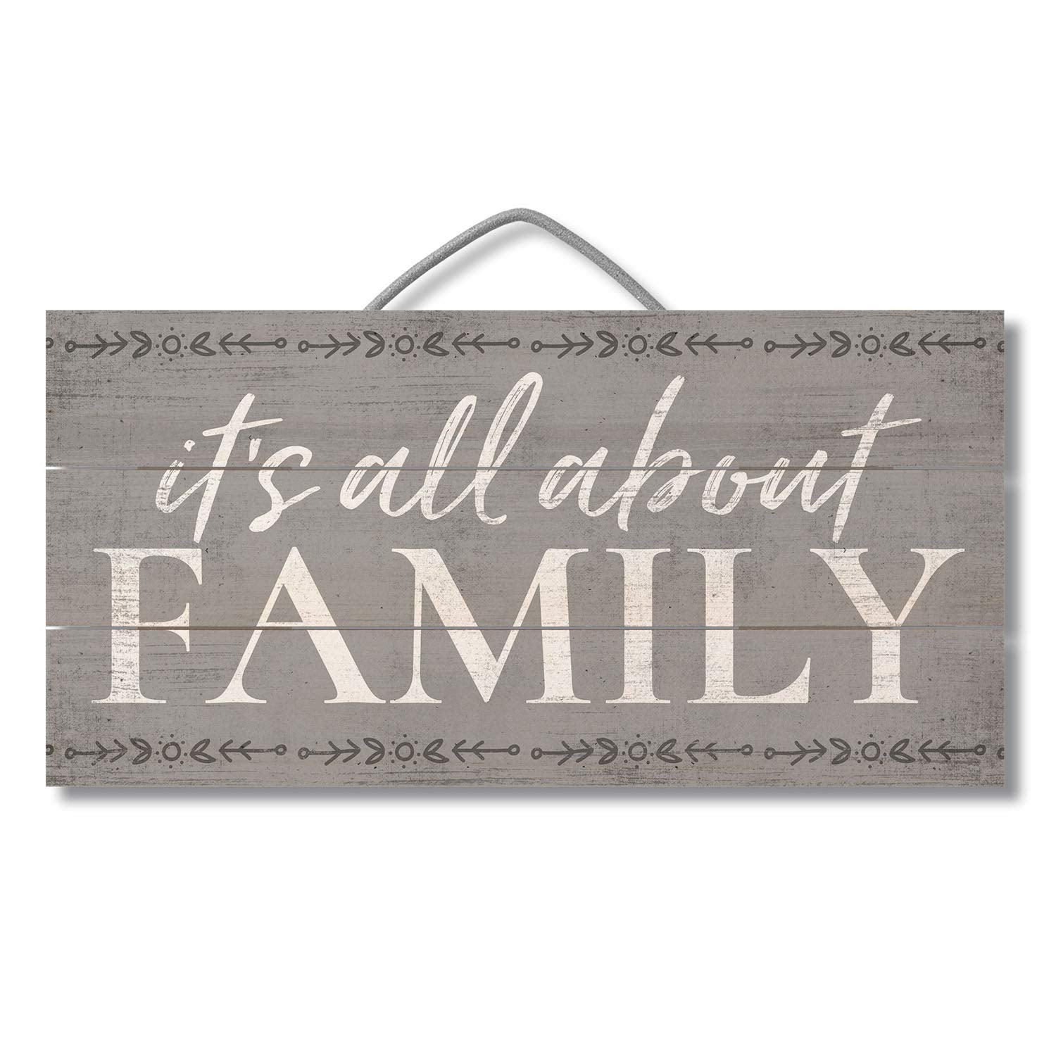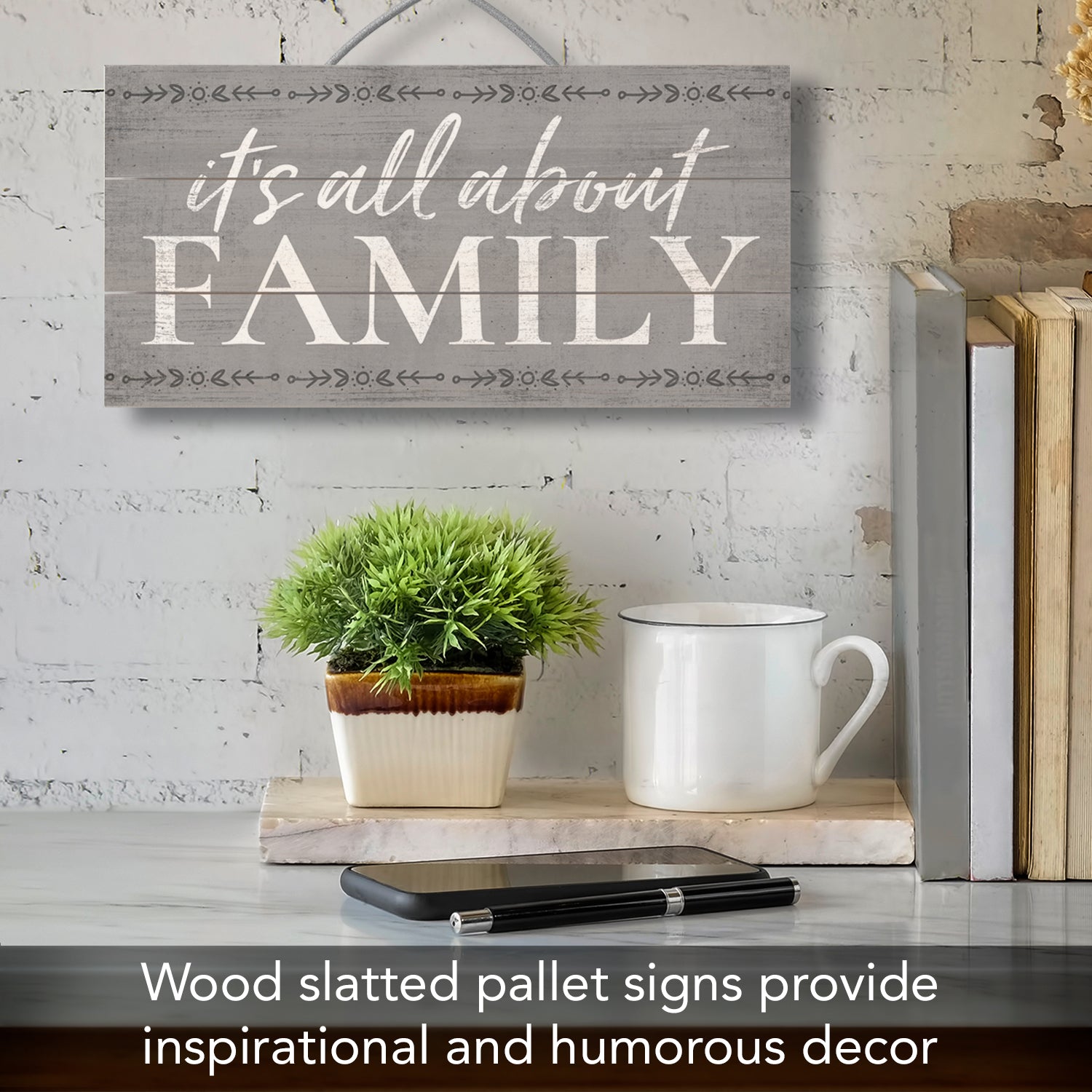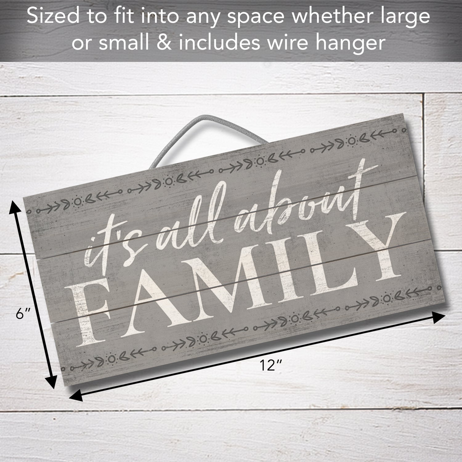 All About Family Decorative Slatted Pallet Wood Sign 12" x 6" Made in The USA Wire Hanger Doubles as an Easel