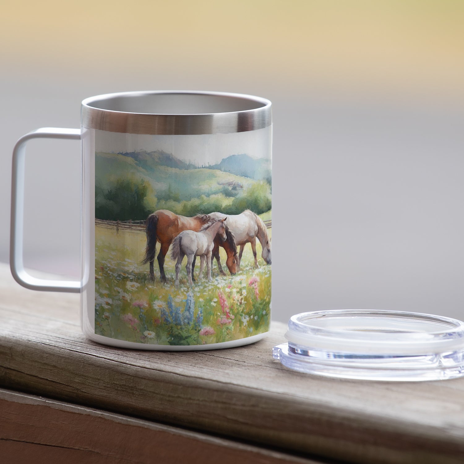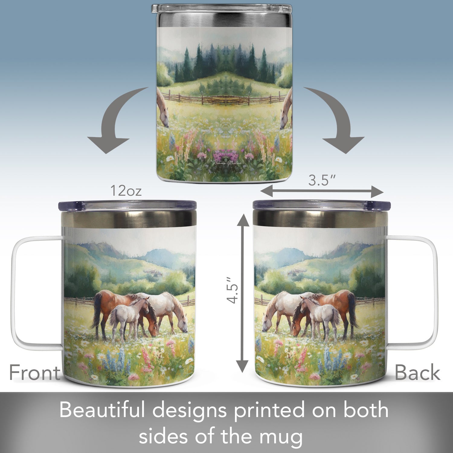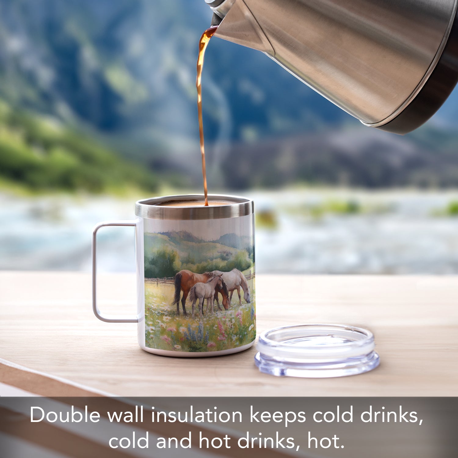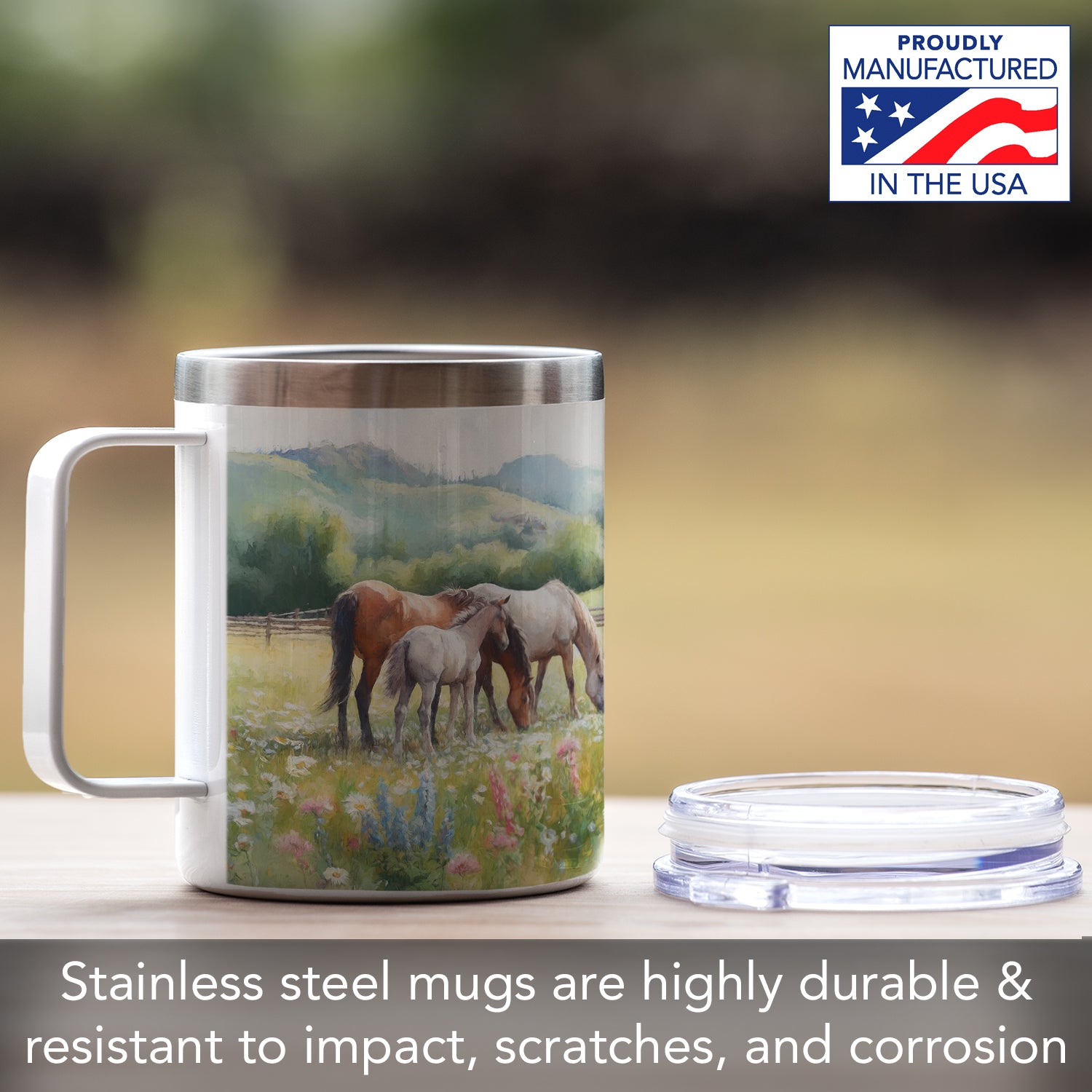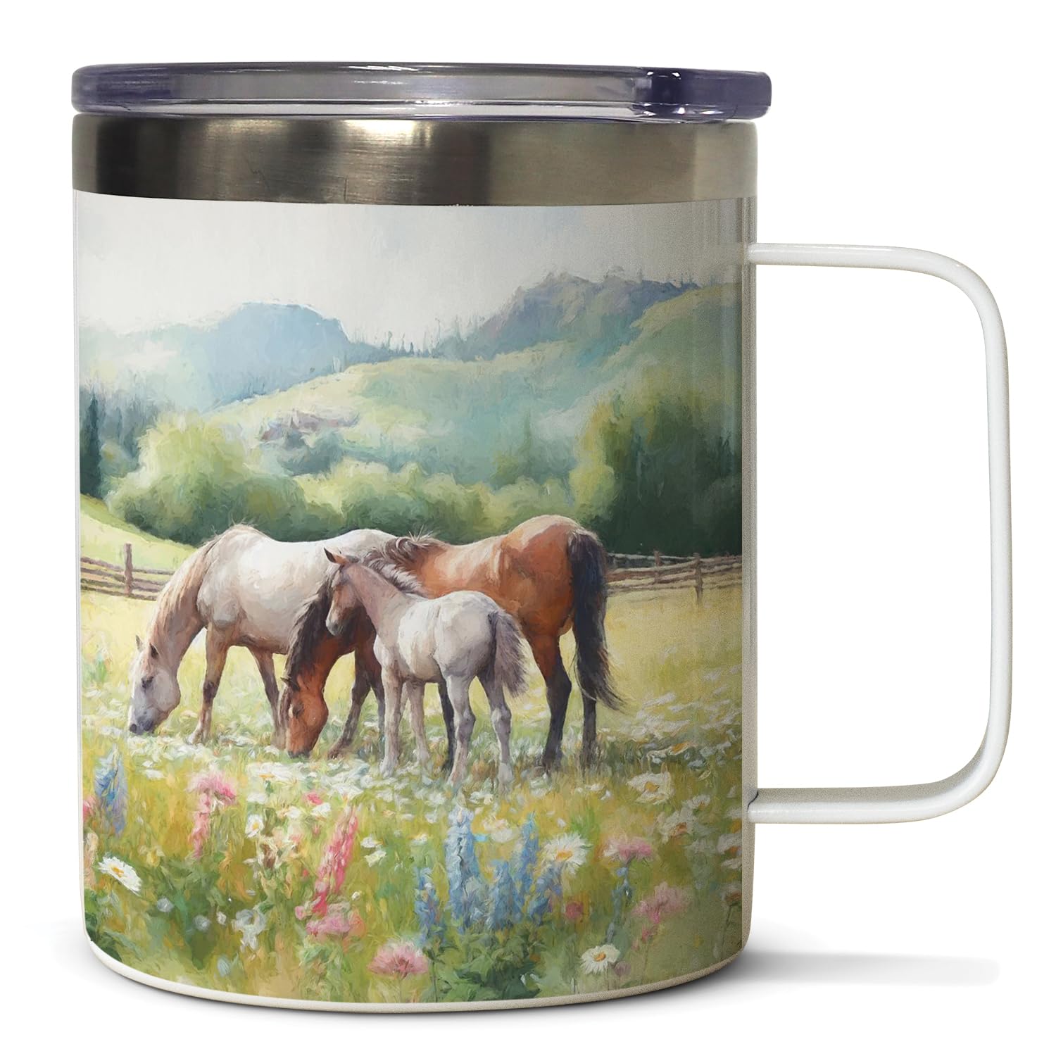 Alpine Pastures Decorative Stainless Steel Travel Mug with Lid 12 oz. Manufactured in the USA
