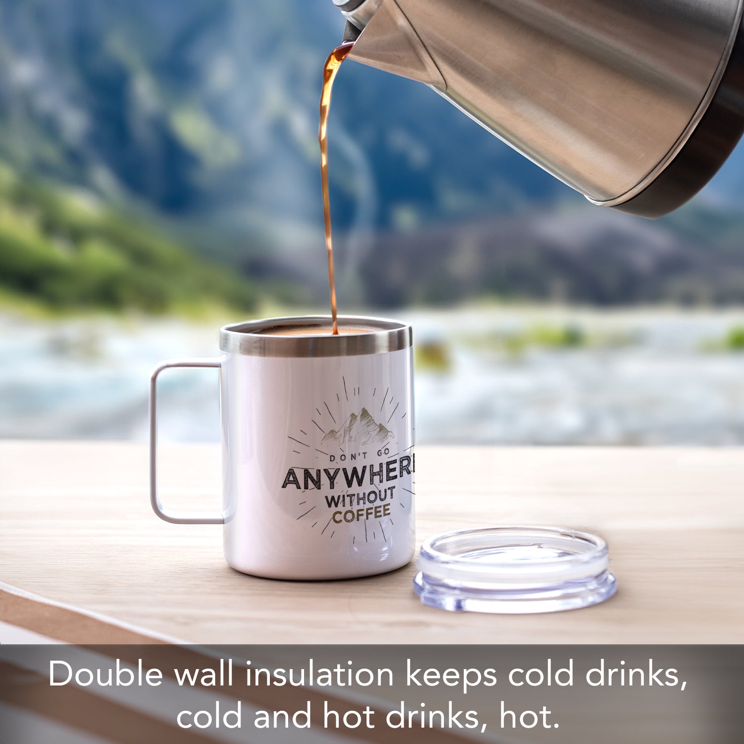 INSULATION-Stainless Steel Mug can be used for hot or cold beverages or soups. The Stainless Steel regulates and maintains the temperature of the contents.