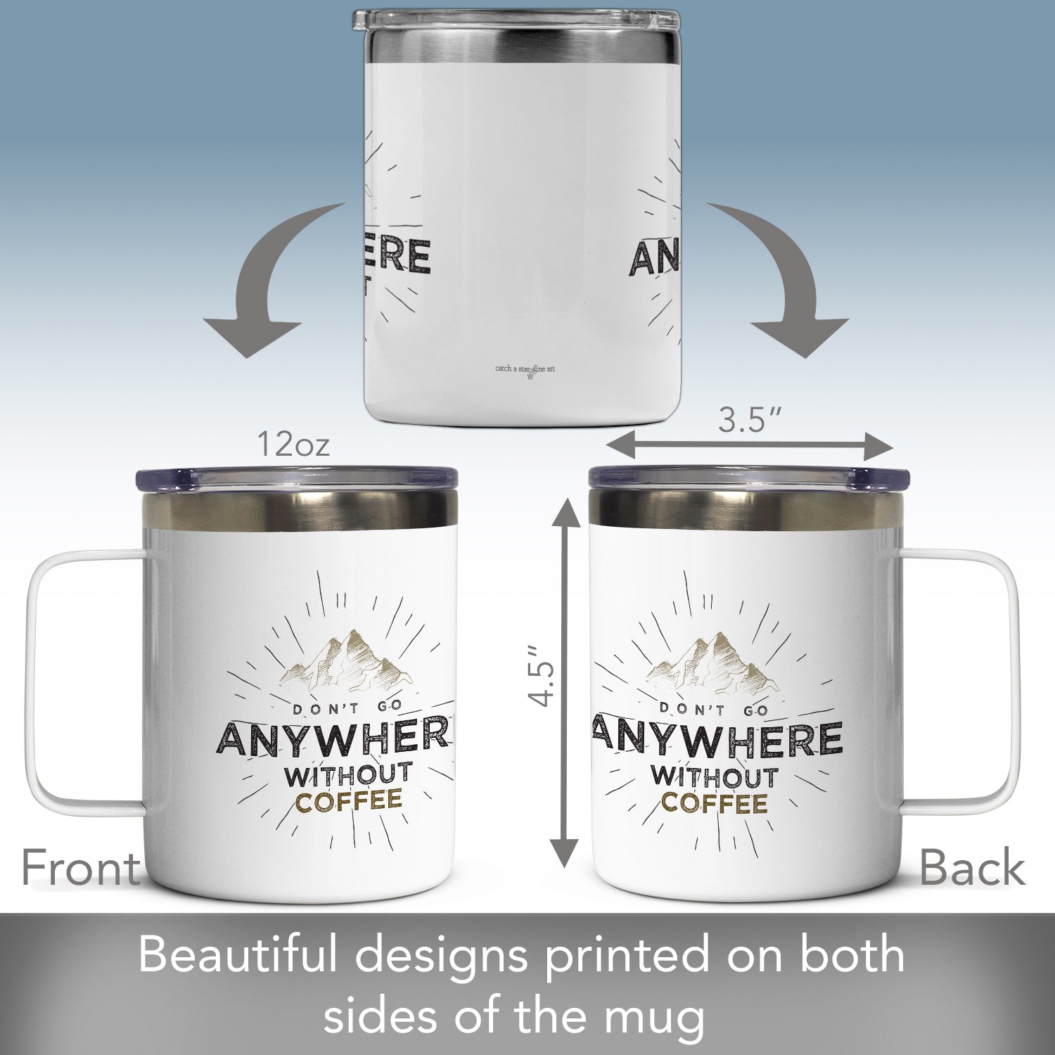 CAPACITY-Mug will hold up to 12 ounces. Each mug measures 4.5” x 3.25” x 4.25”. Great for outdoor activities, commuting, or simply enjoying beverages at home or in the office.