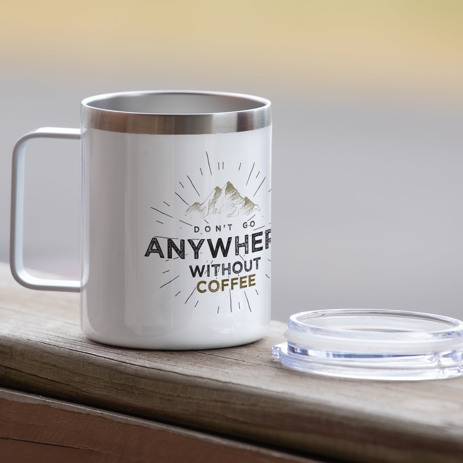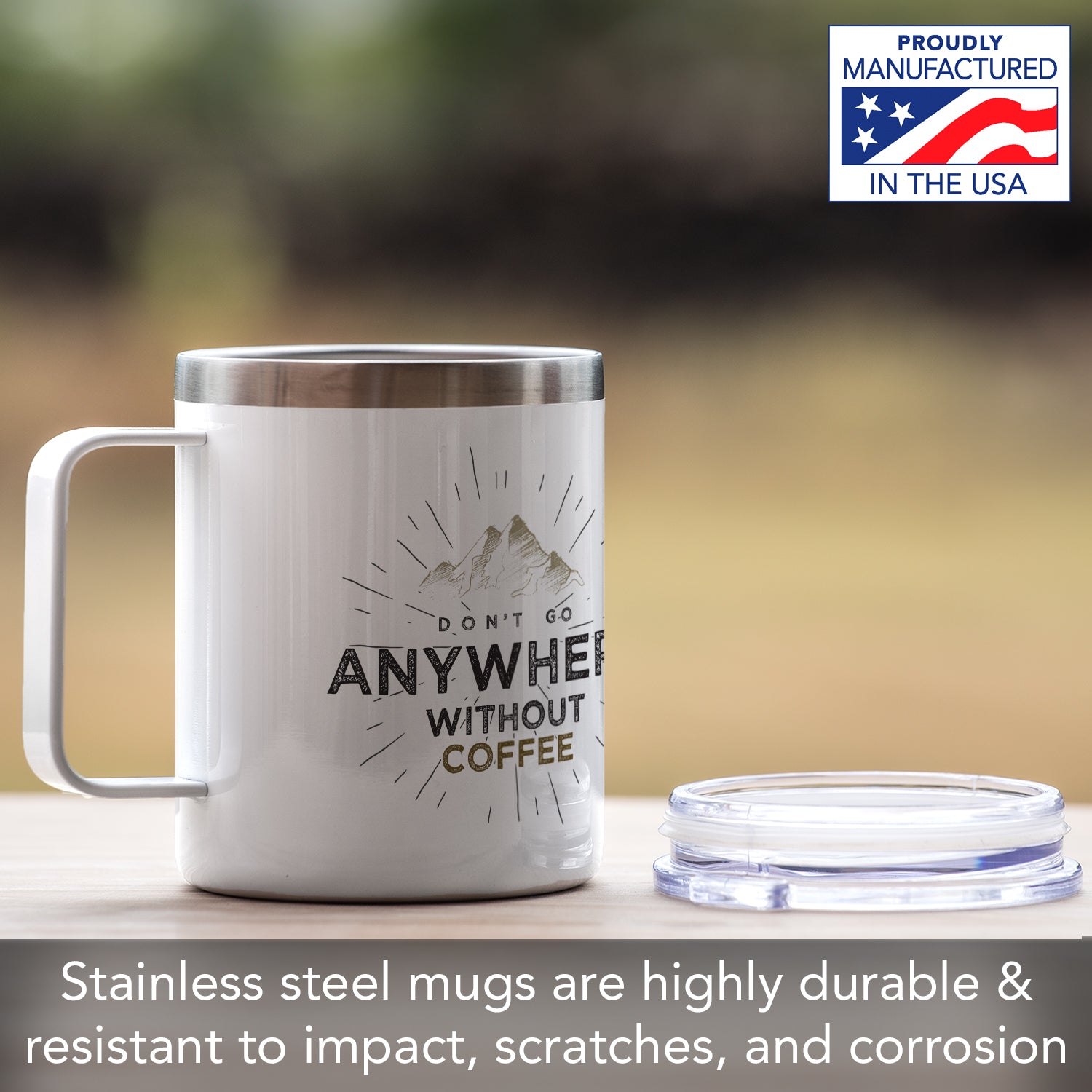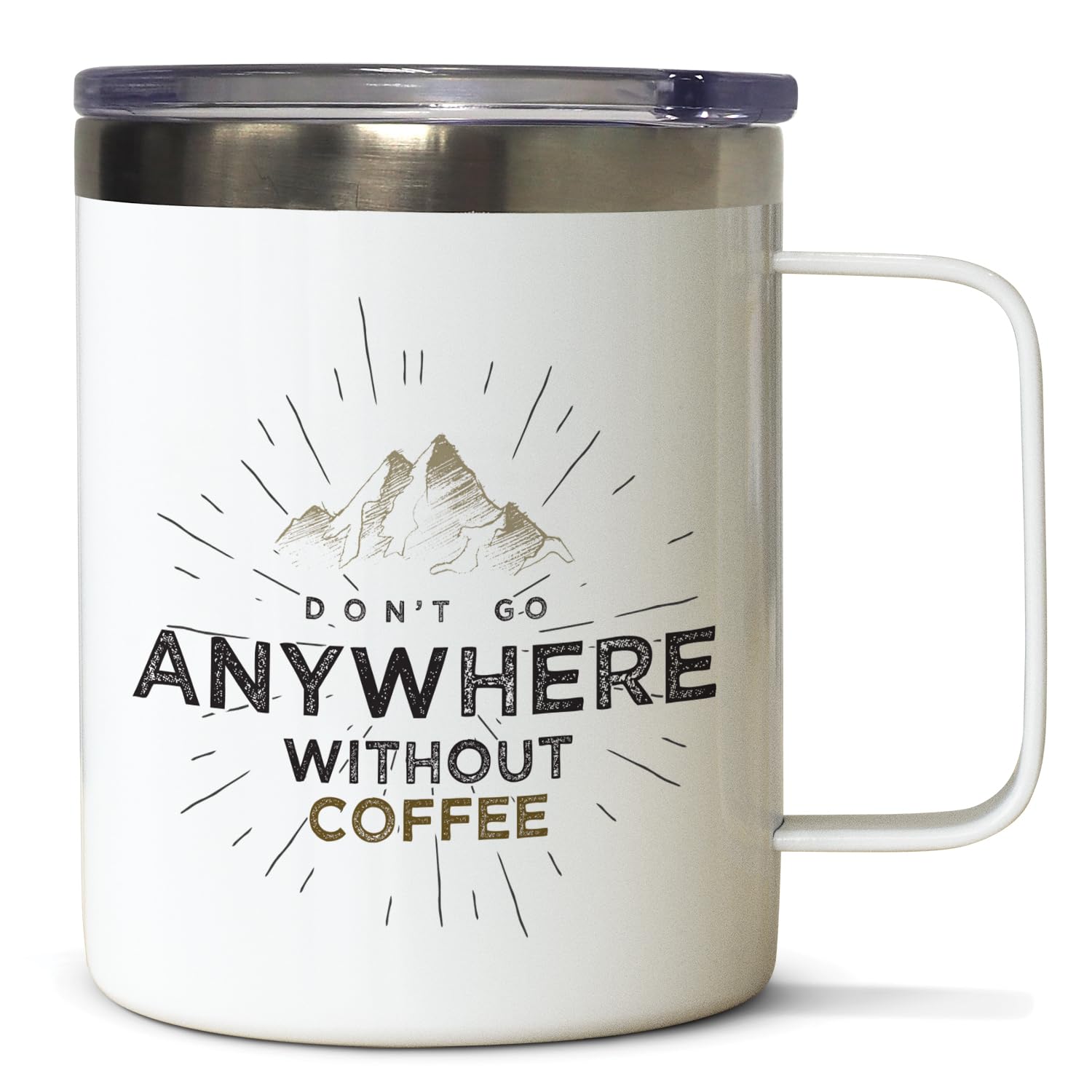 Don't Go Anywhere Decorative Stainless Steel Insulated Travel Mug with Lid 12 oz. Manufactured in the USA