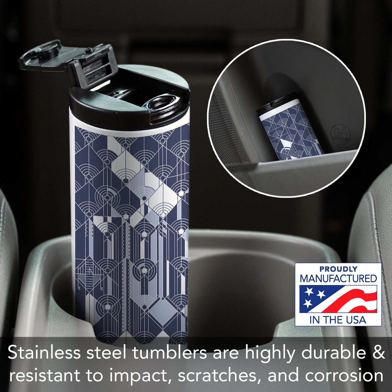 LID INCLUDED- Hinged snap close lid included to prevent spills and leakage. Stainless Steel Tumblers are popular among coffee lovers and those looking for stylish, functional drinkware.