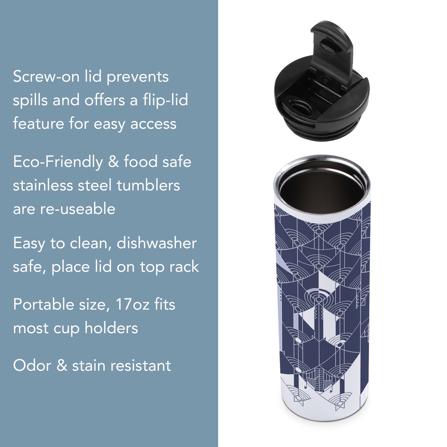Frank Lloyd Wright's April Showers Design on 17 Ounce Insulated Stainless Steel Tumbler Manufactured in the USA