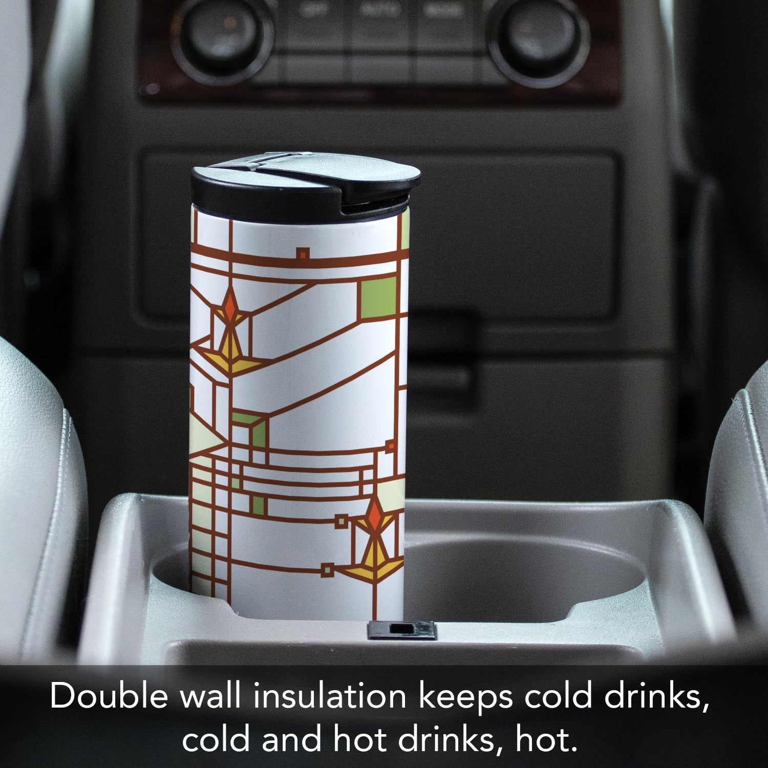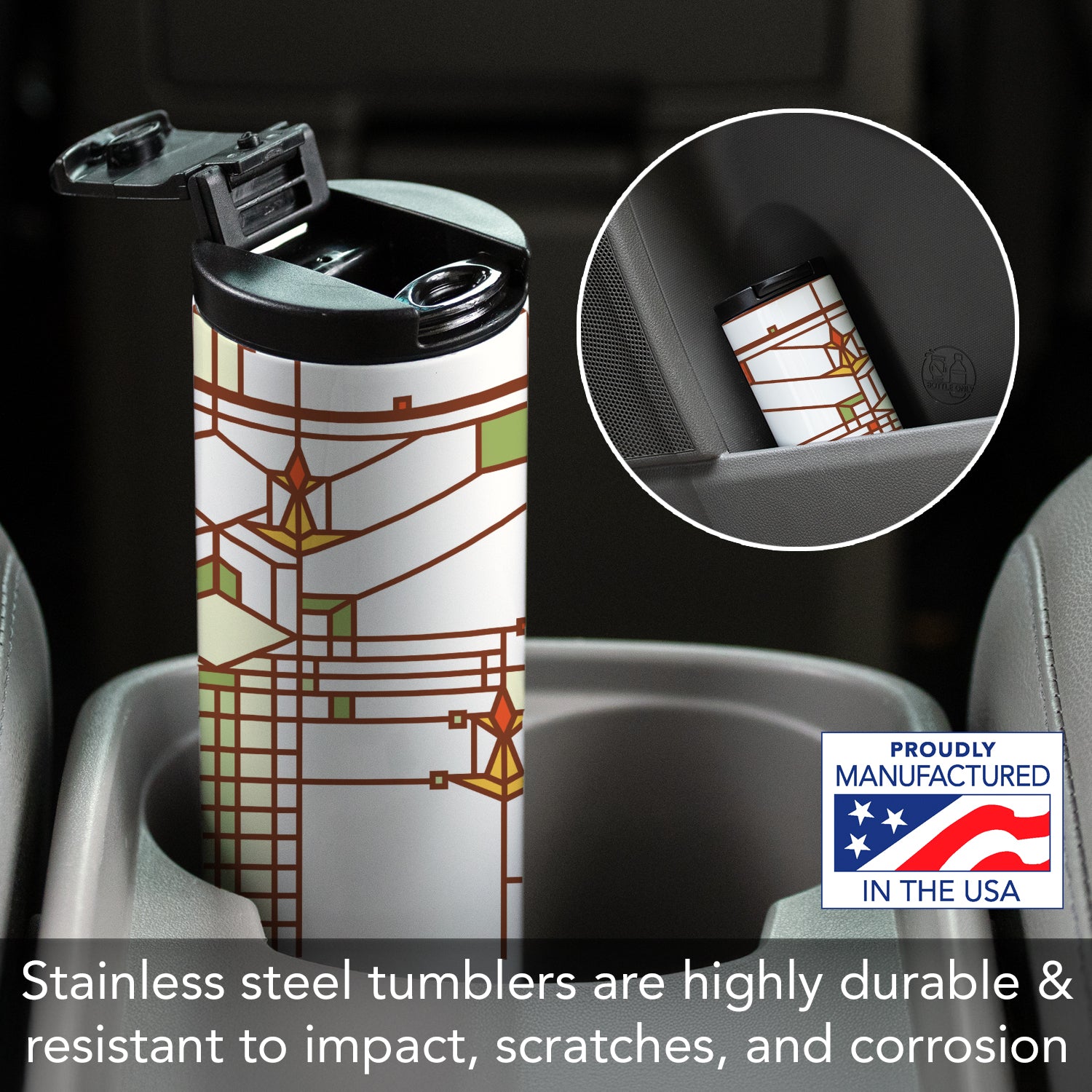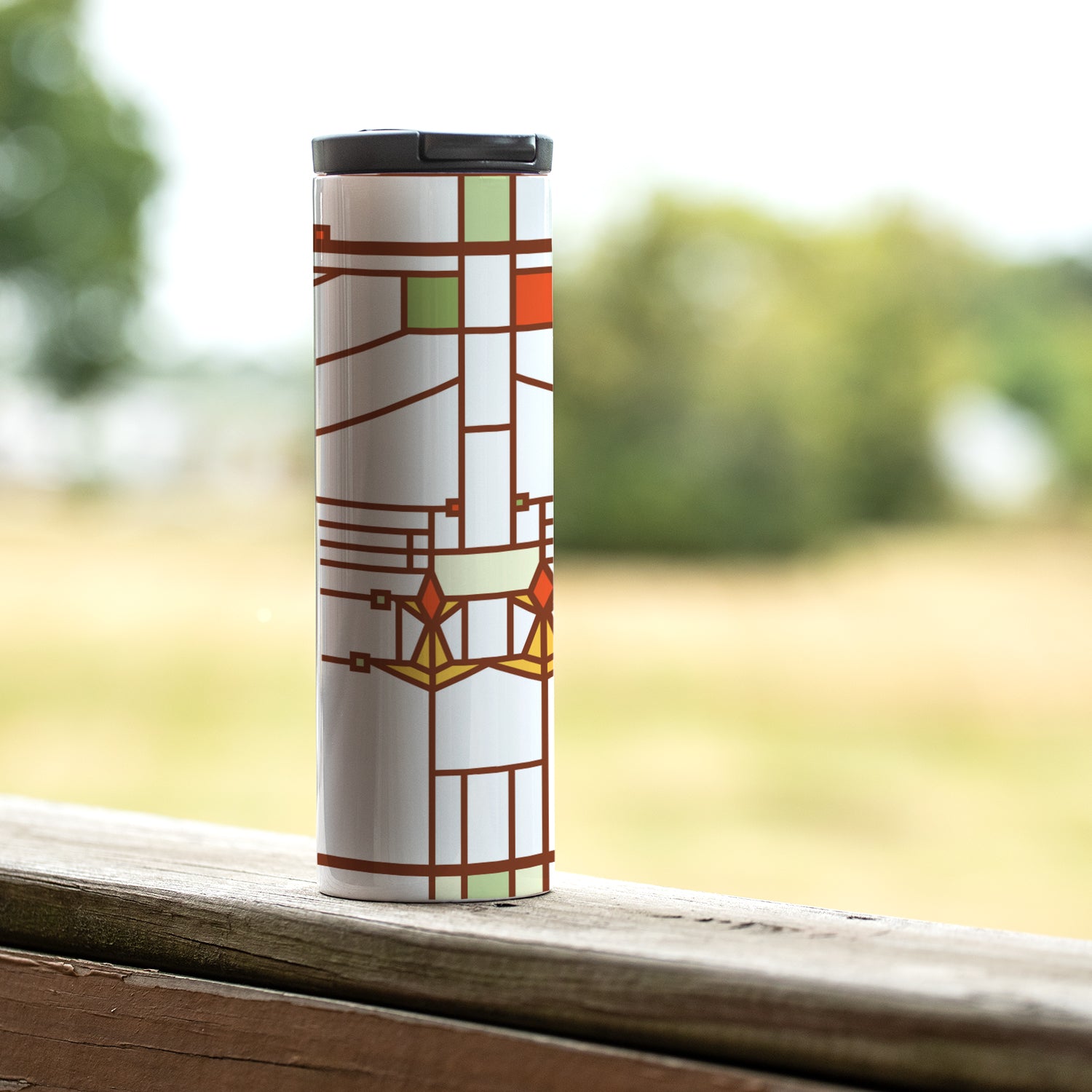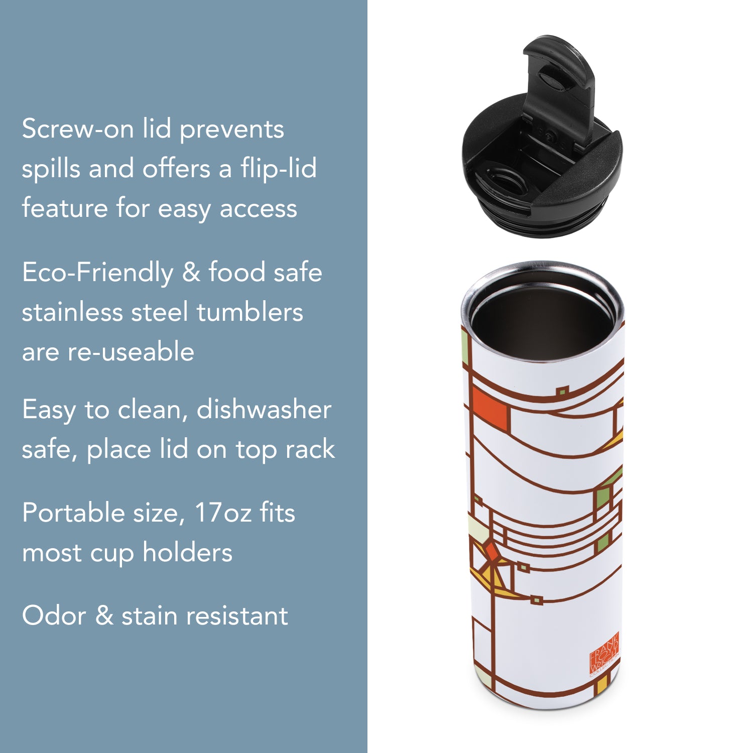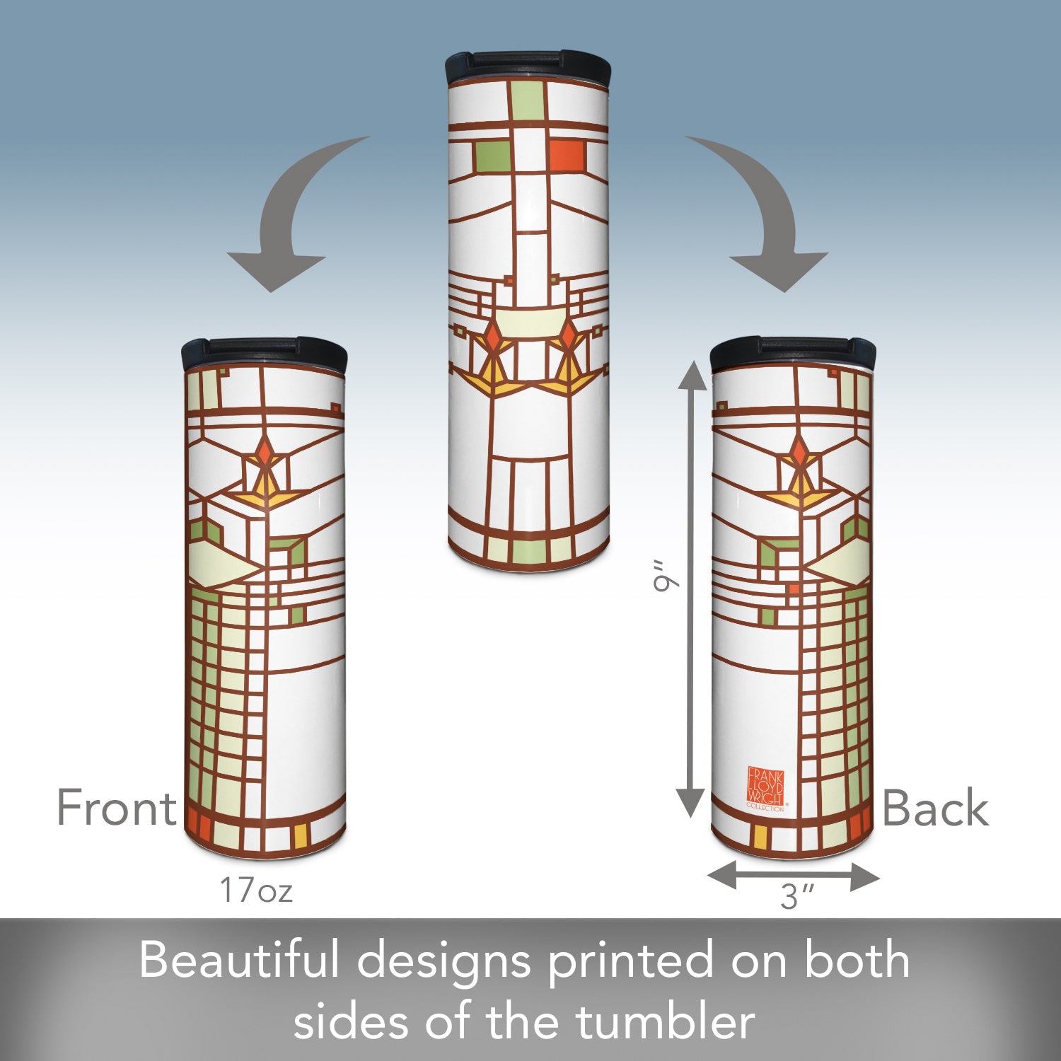 Frank Lloyd Wright's B. Harley Bradley House Design on 17 Ounce Insulated Stainless Steel Tumbler Manufactured in the USA
