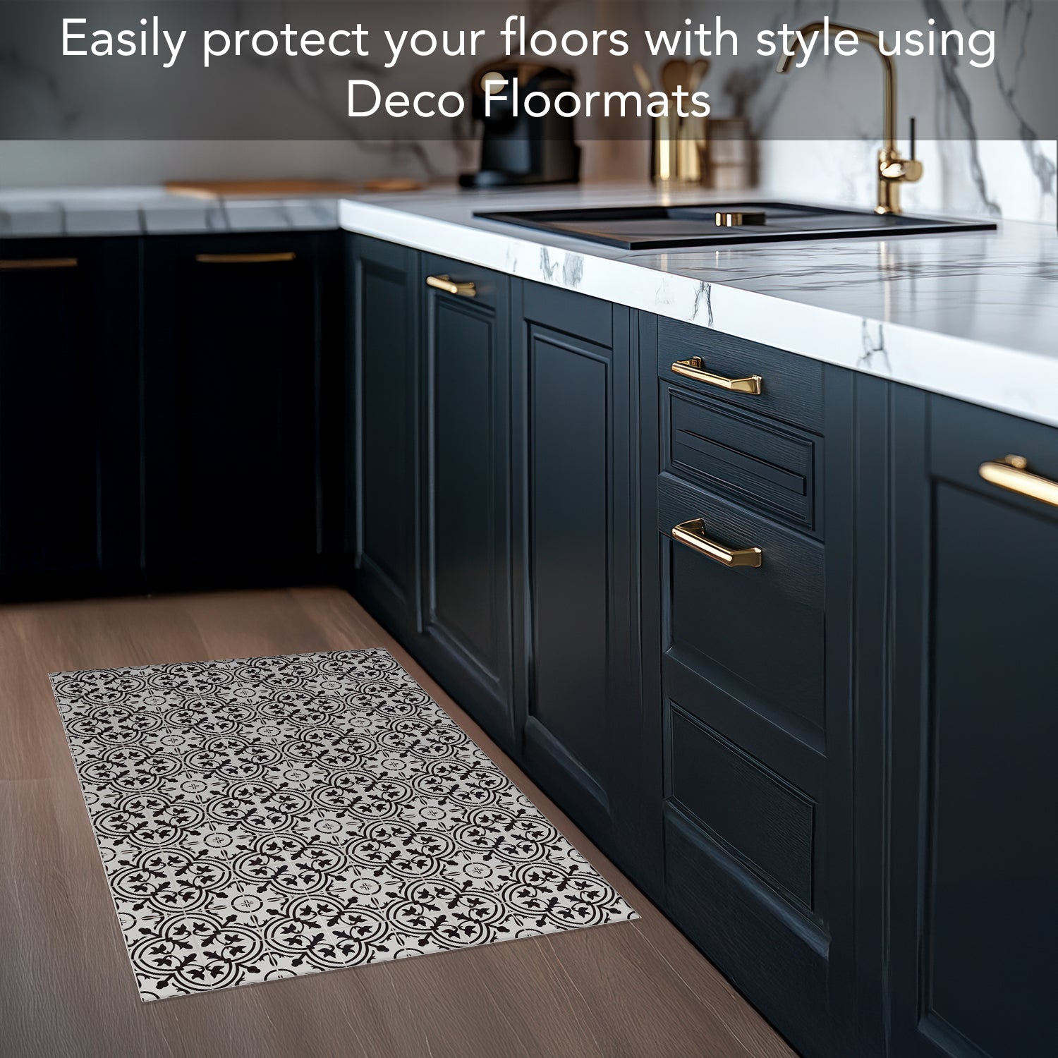 DECORATIVE FLOORMAT-Durable and waterproof flexible plastic material, which will protect your floors from stains, spills and scuffs. Resistant to wear and tear, making them long-lasting. Slip-resistant on most surfaces.