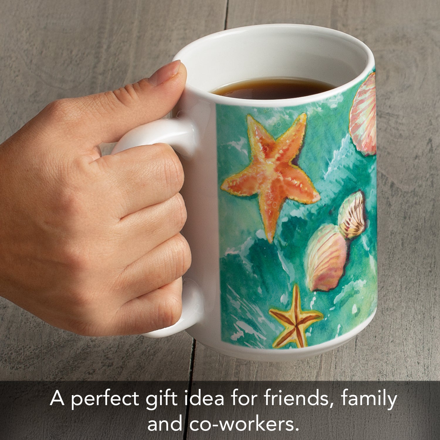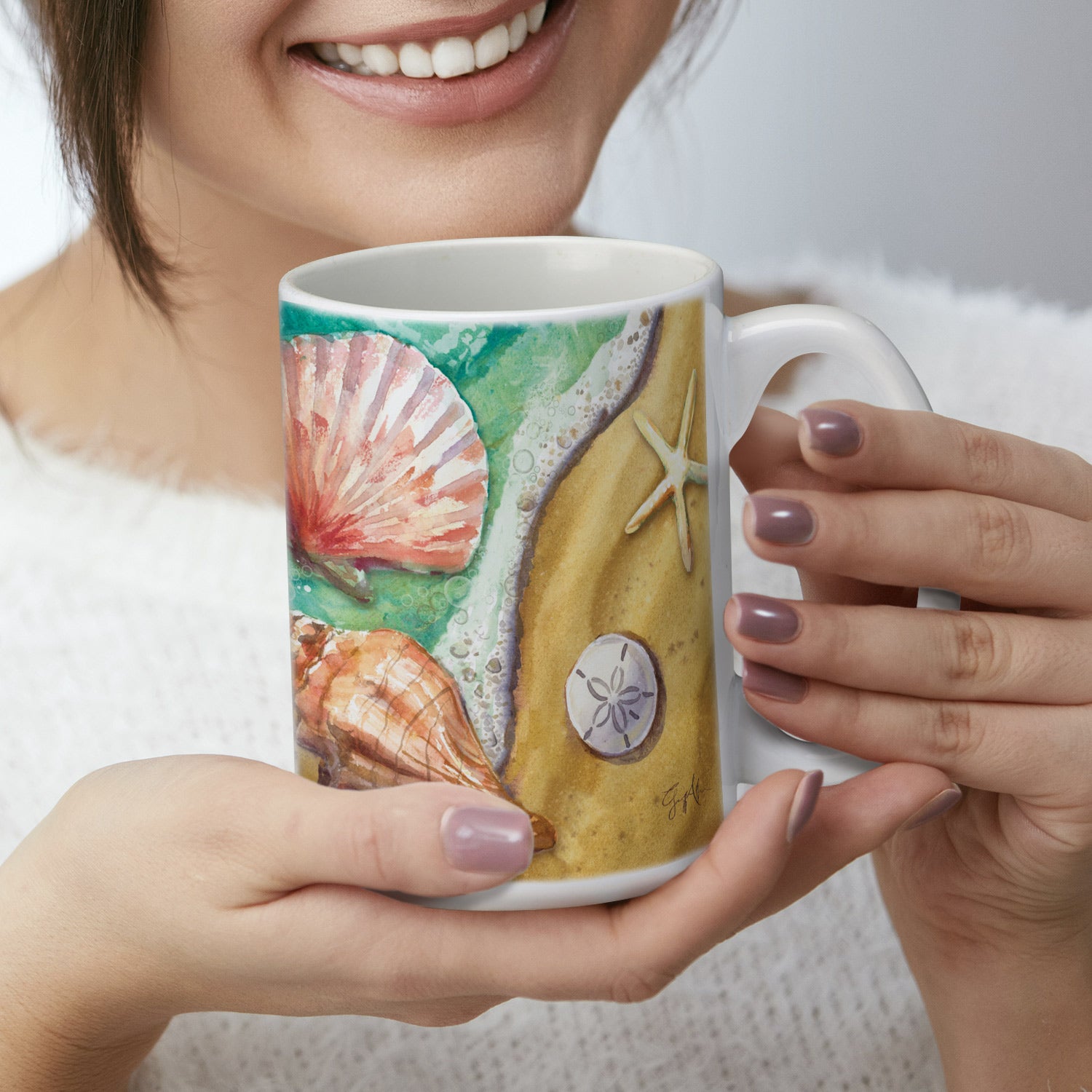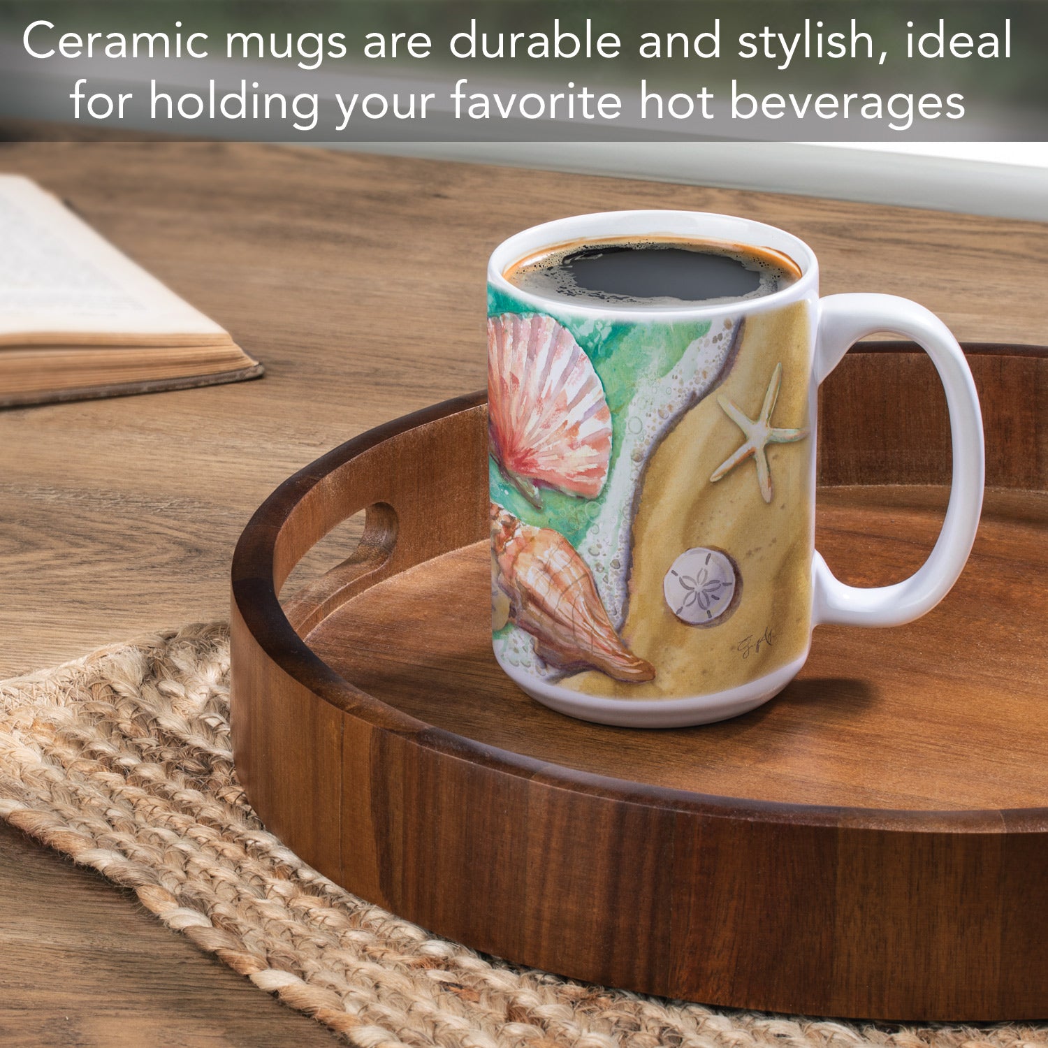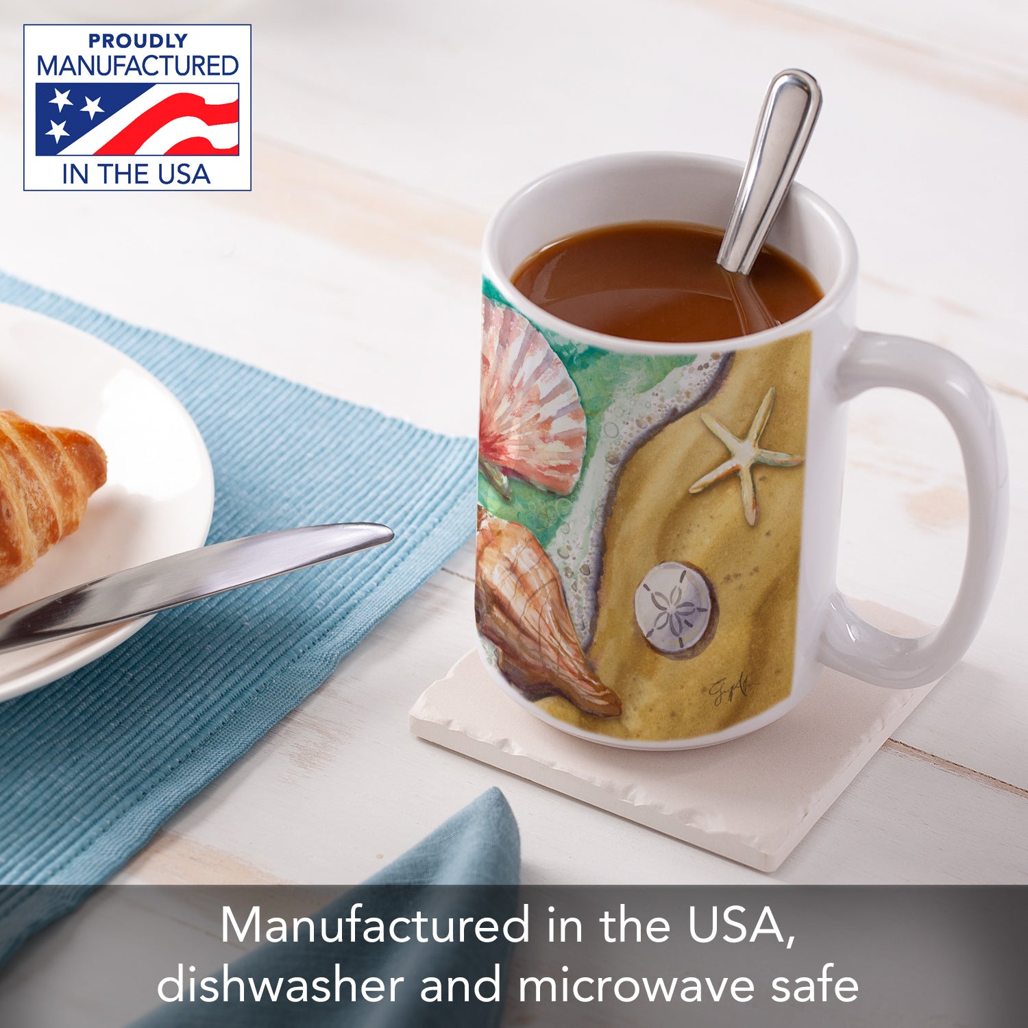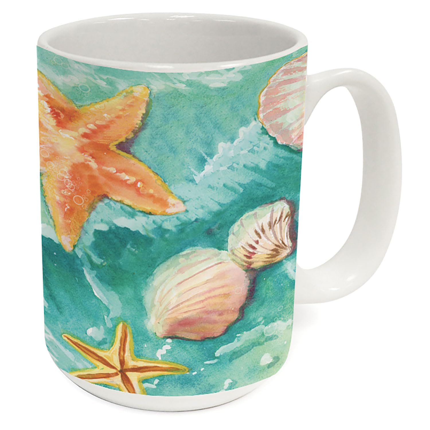 Highland Home Beach Shells Large Decorative Ceramic Mug 15 oz. Manufactured in the USA