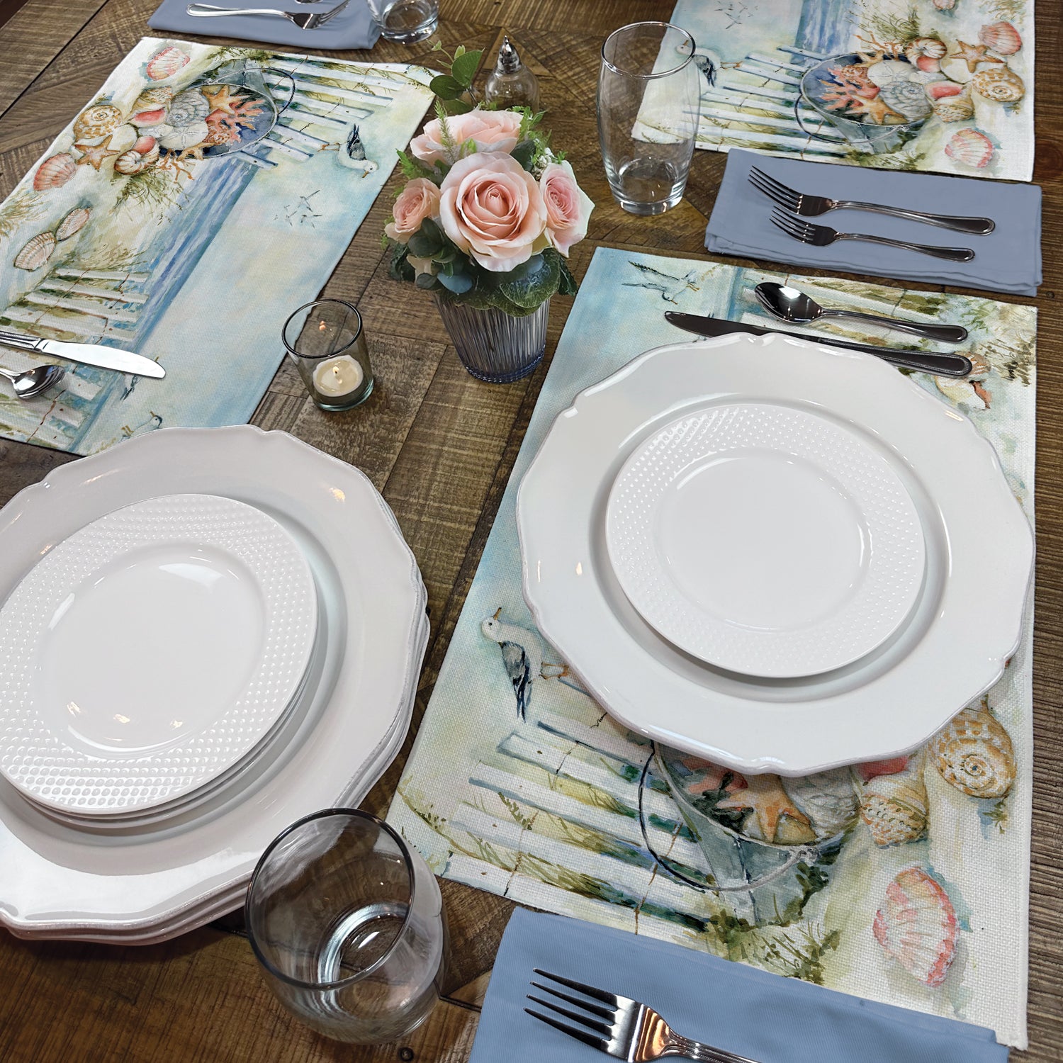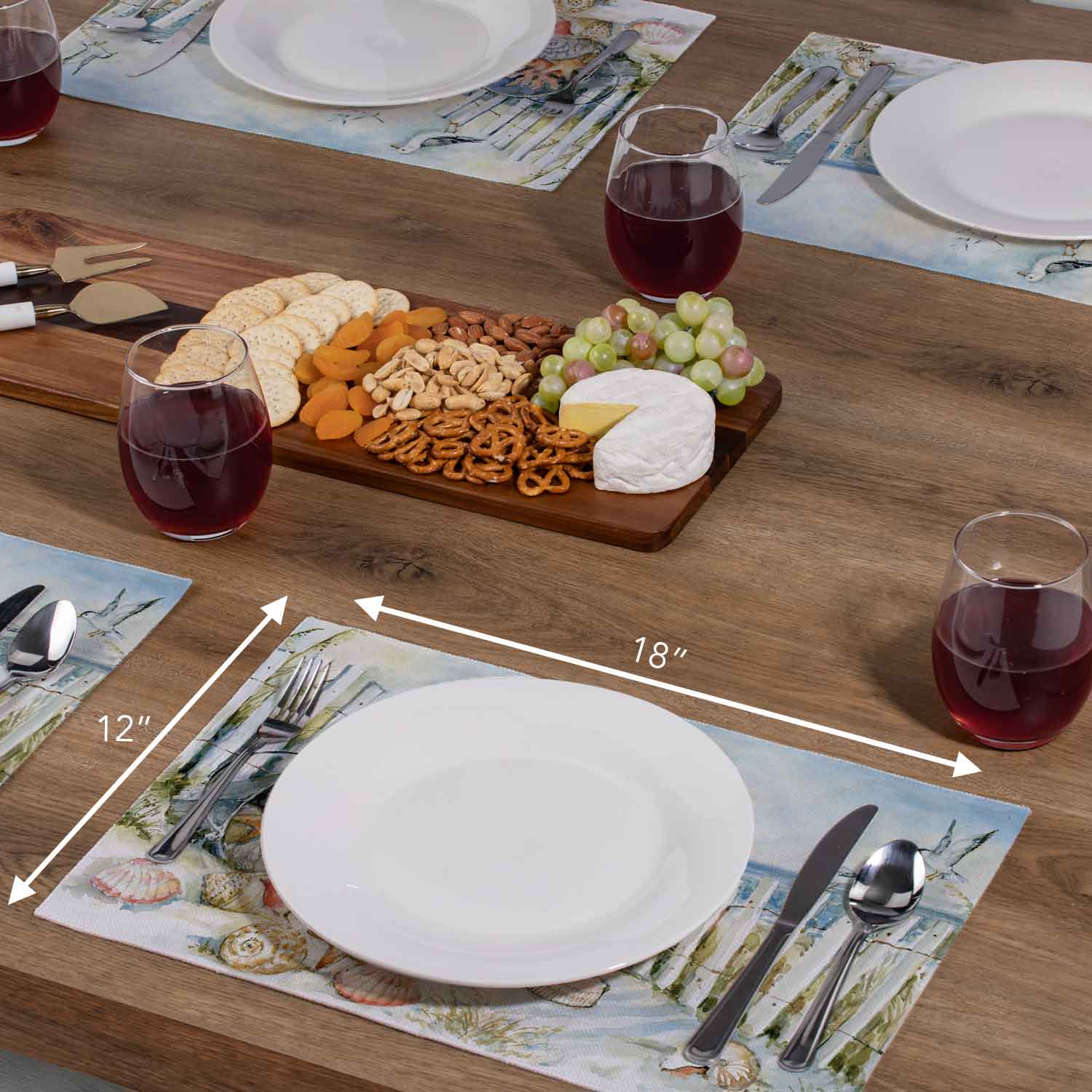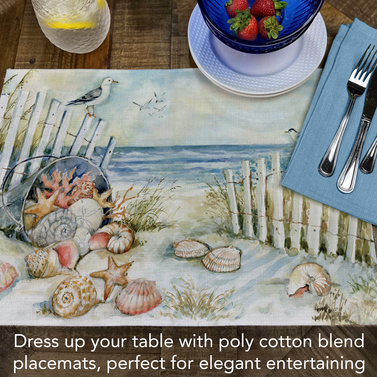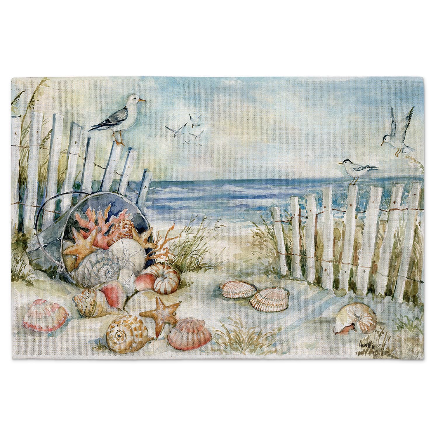 Highland Home Coastal Sanctuary 4 Pack Poly-Cotton Blend Fabric Placemats 18" x 12" Manufactured in The USA