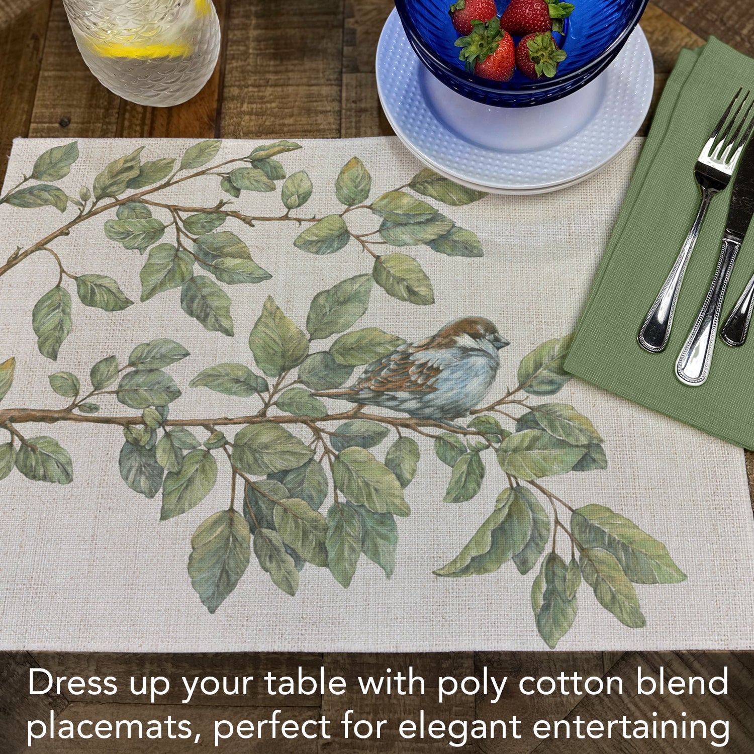 Highland Home Bird On A Branch 4 Pack Poly-Cotton Blend Fabric Placemats 18" x 12" Manufactured in The USA