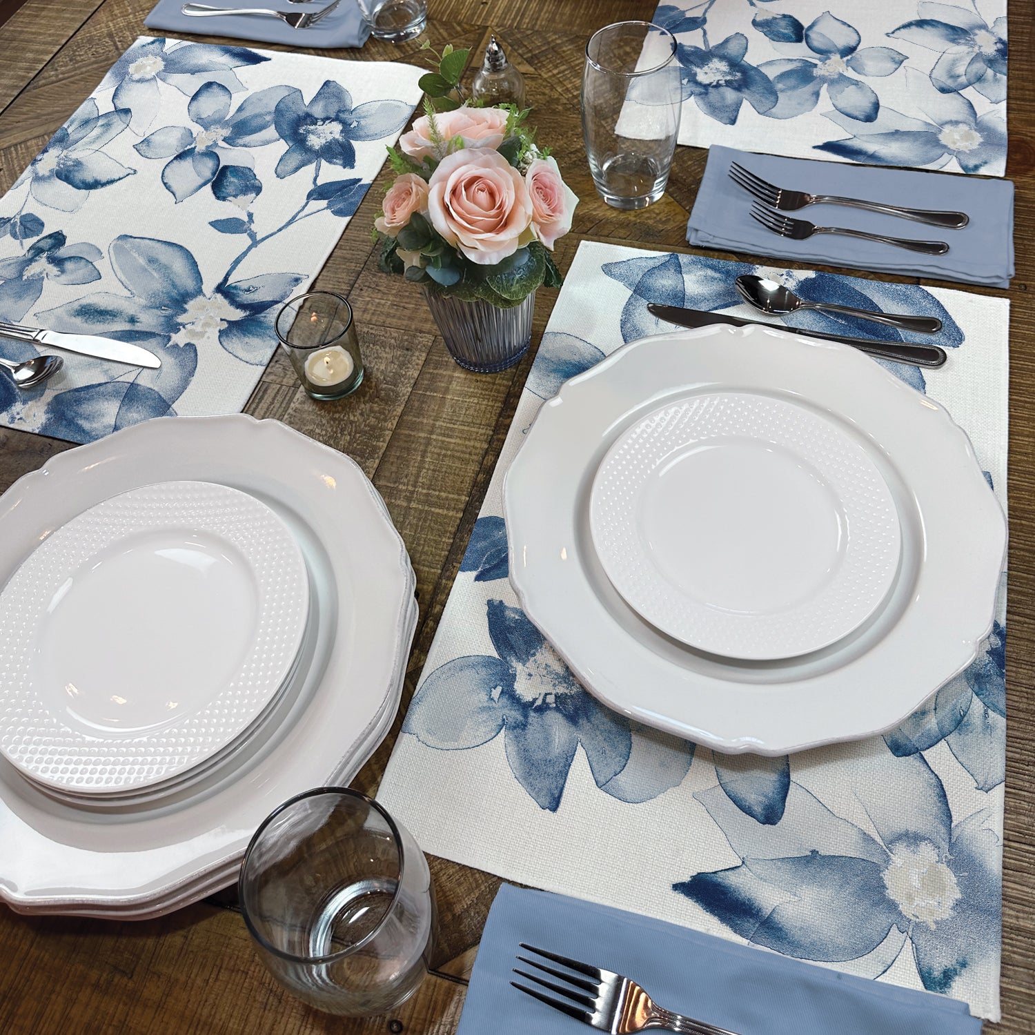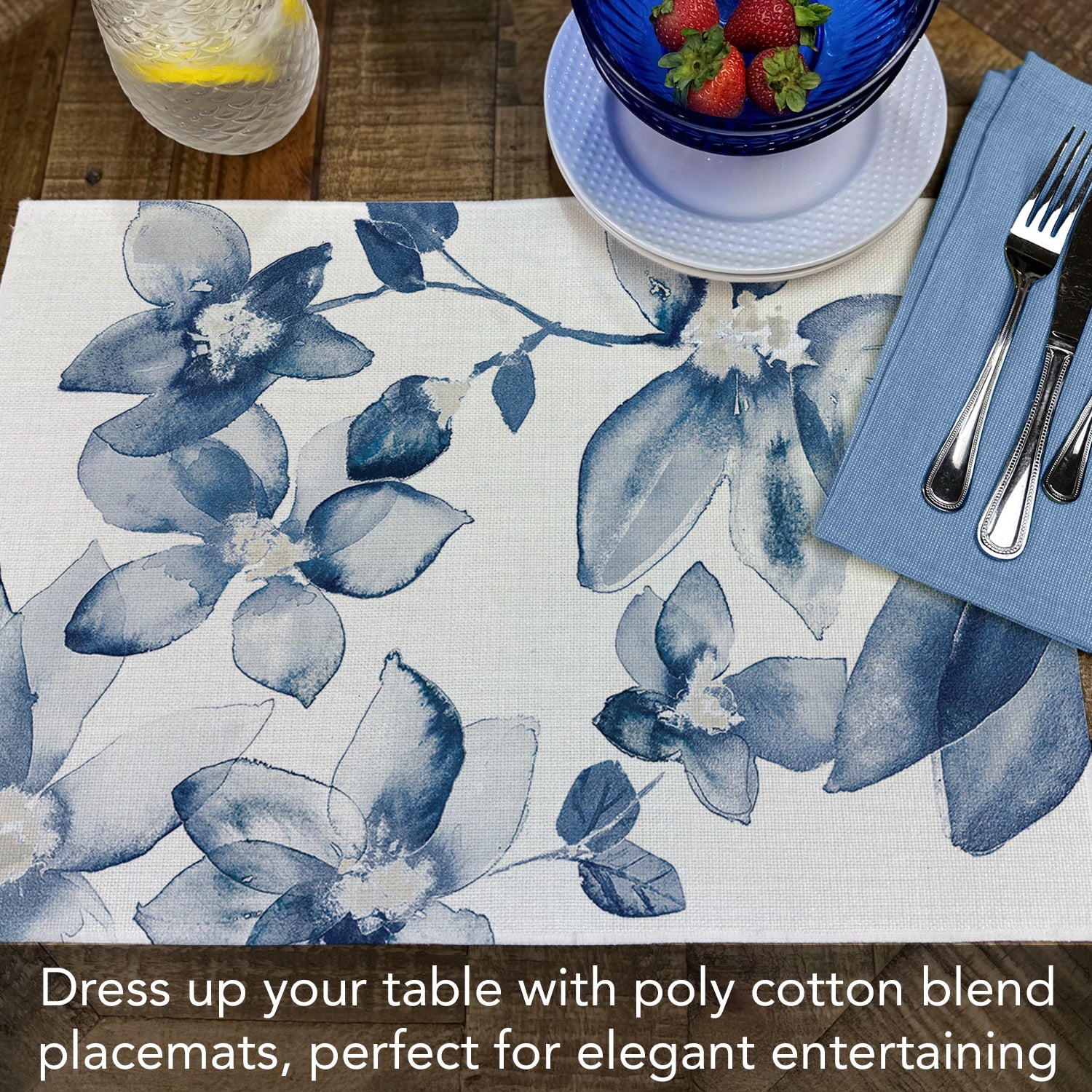 Highland Home Blooming Whispers 4 Pack Poly-Cotton Blend Fabric Placemats 18" x 12" Manufactured in The USA