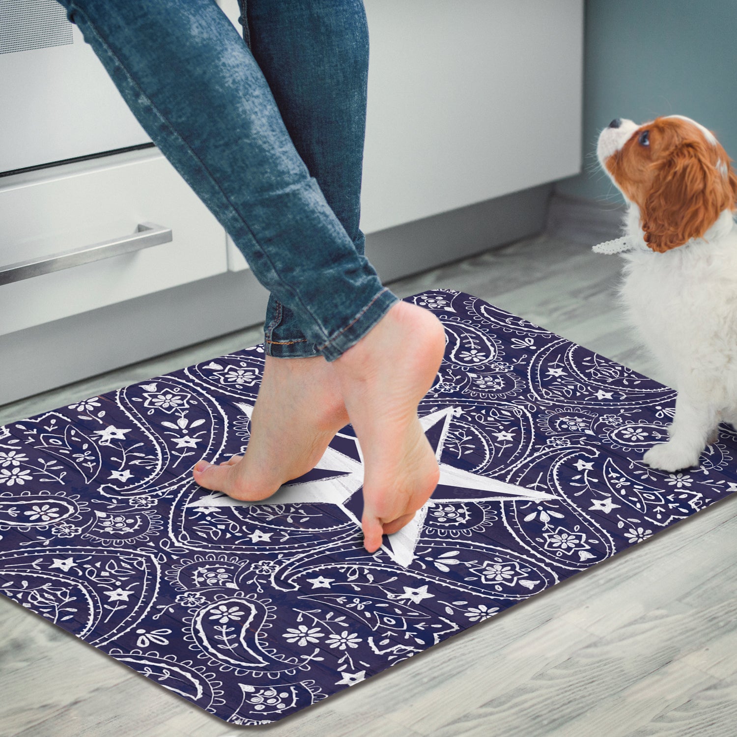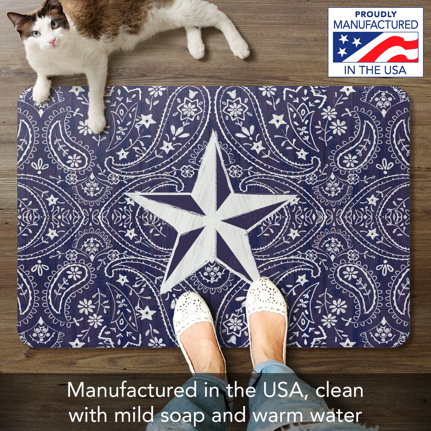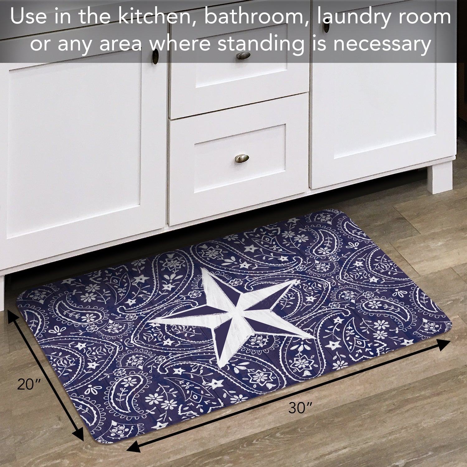 Blue Bandana Star 30” x 20” Decorative Vinyl Comfort Floor Mat Manufactured in the USA
