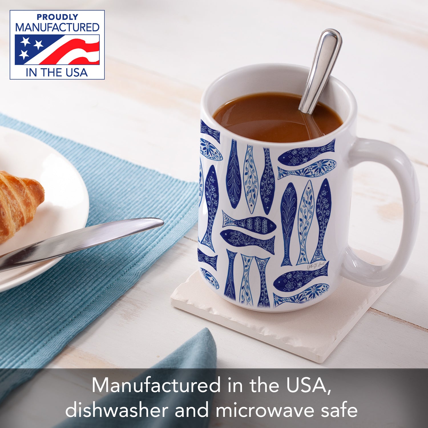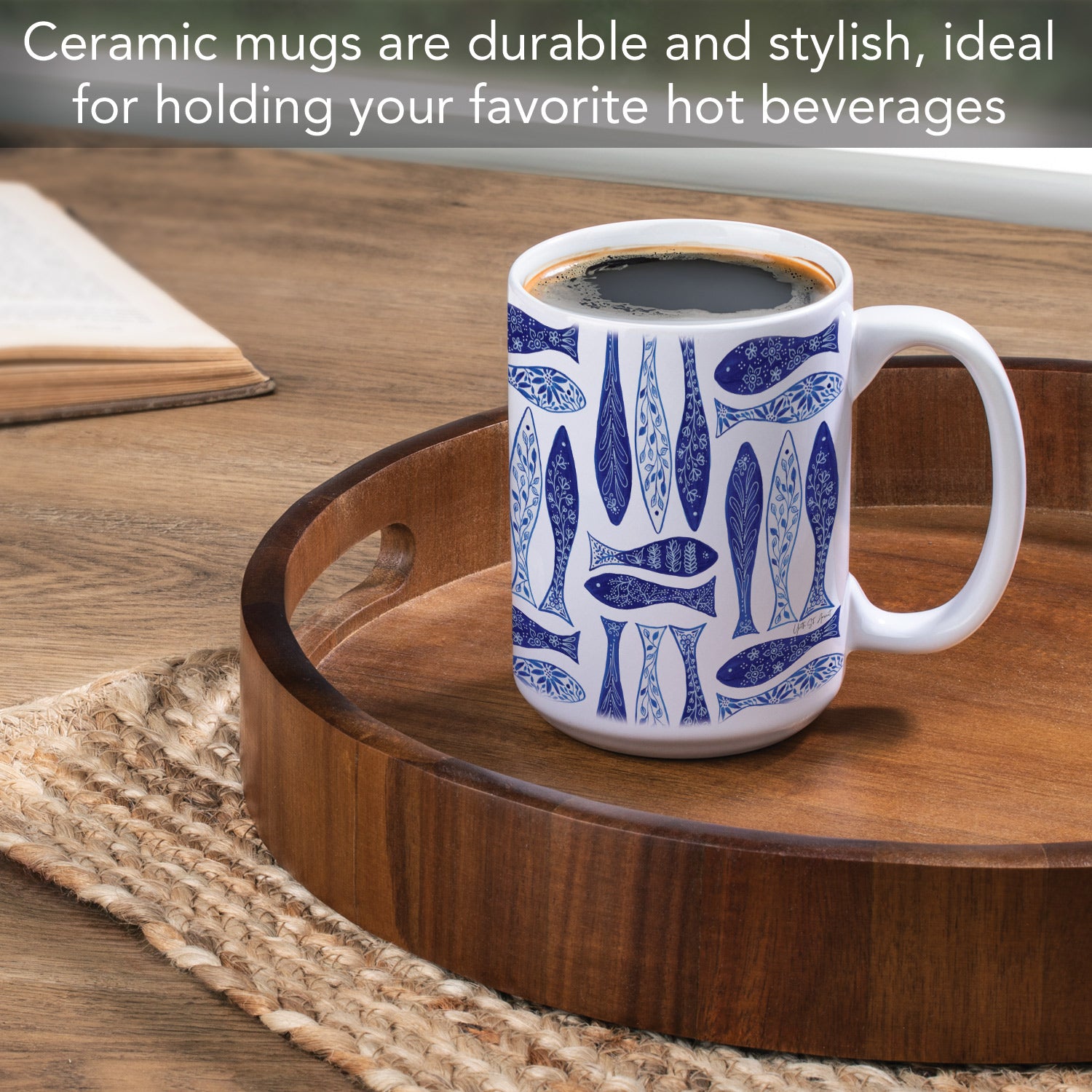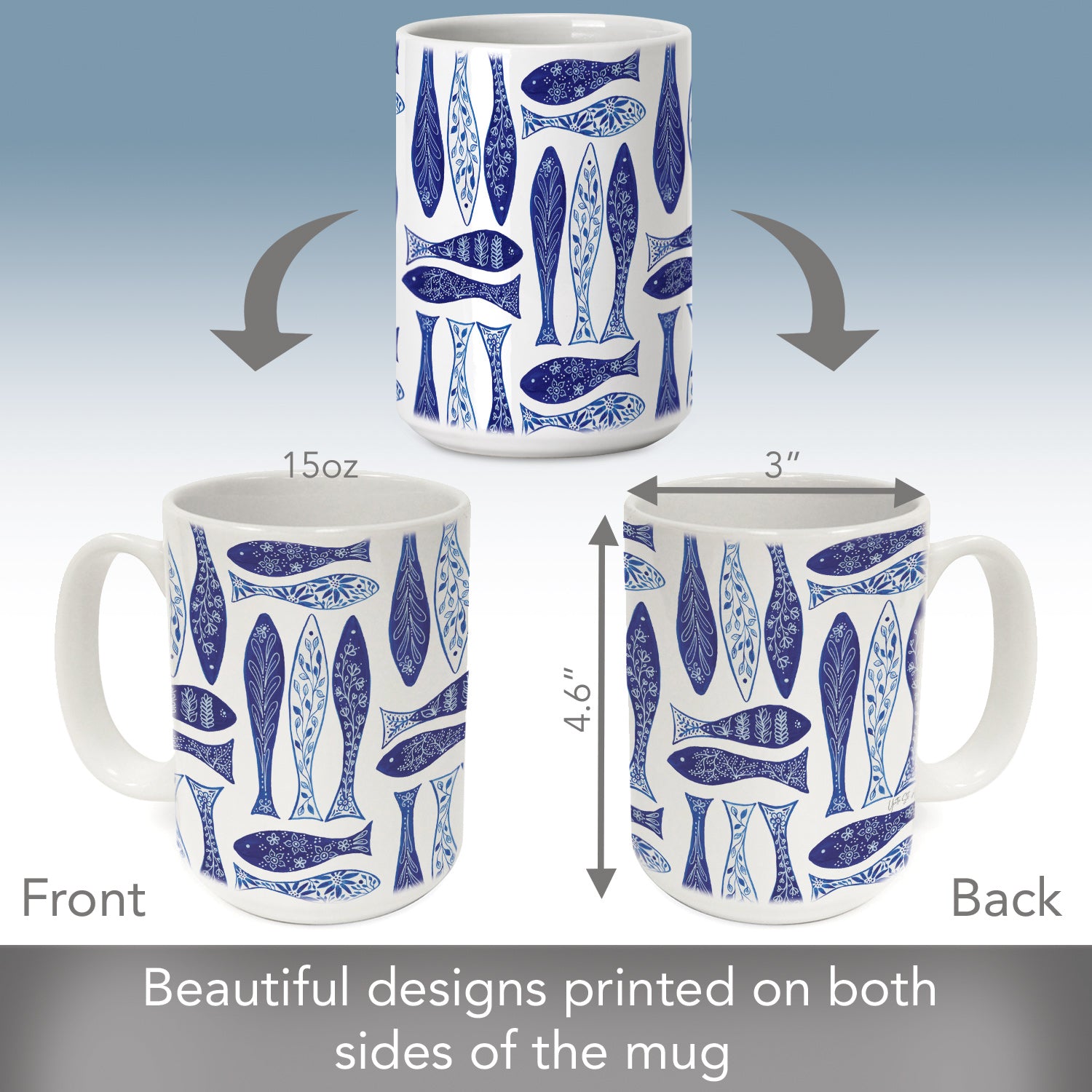 Highland Home Blue Fish 15 oz. Ceramic Mug Manufactured in the USA
