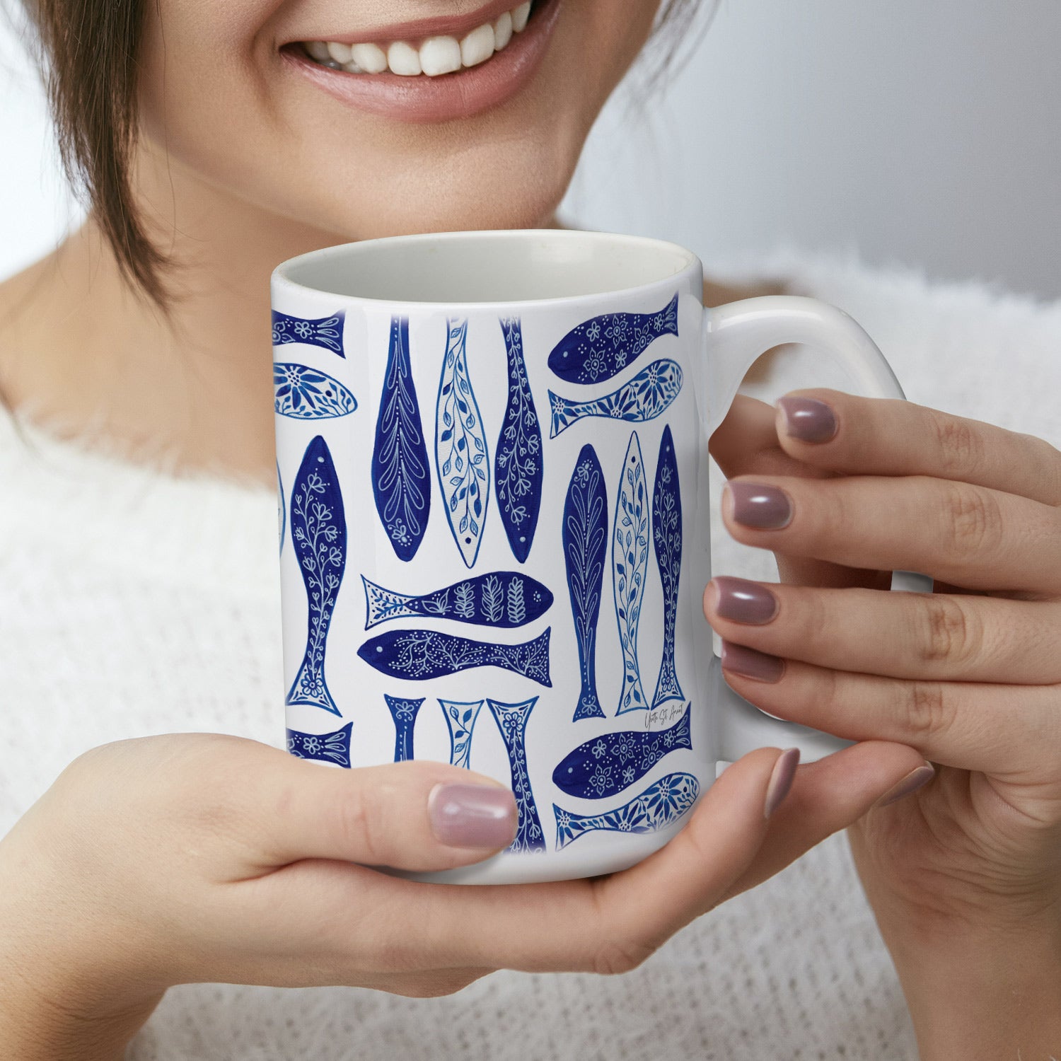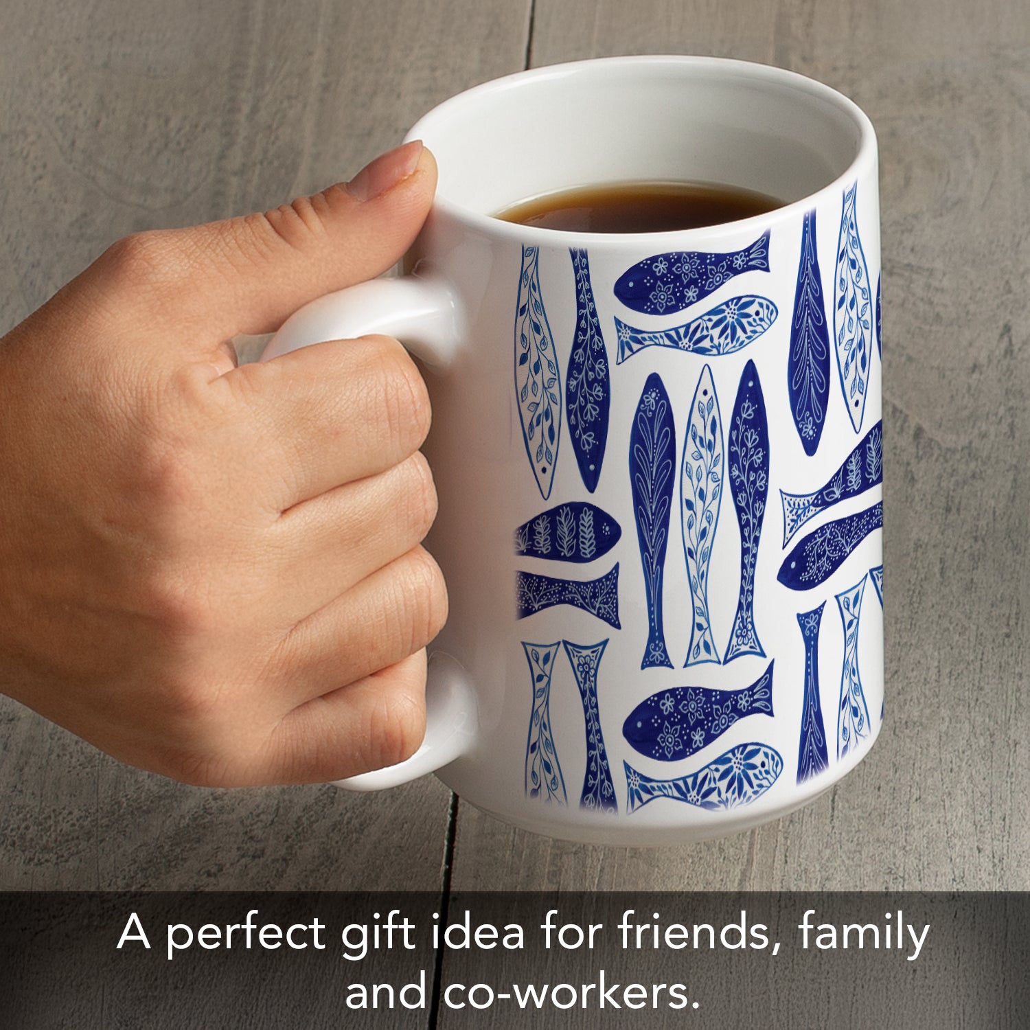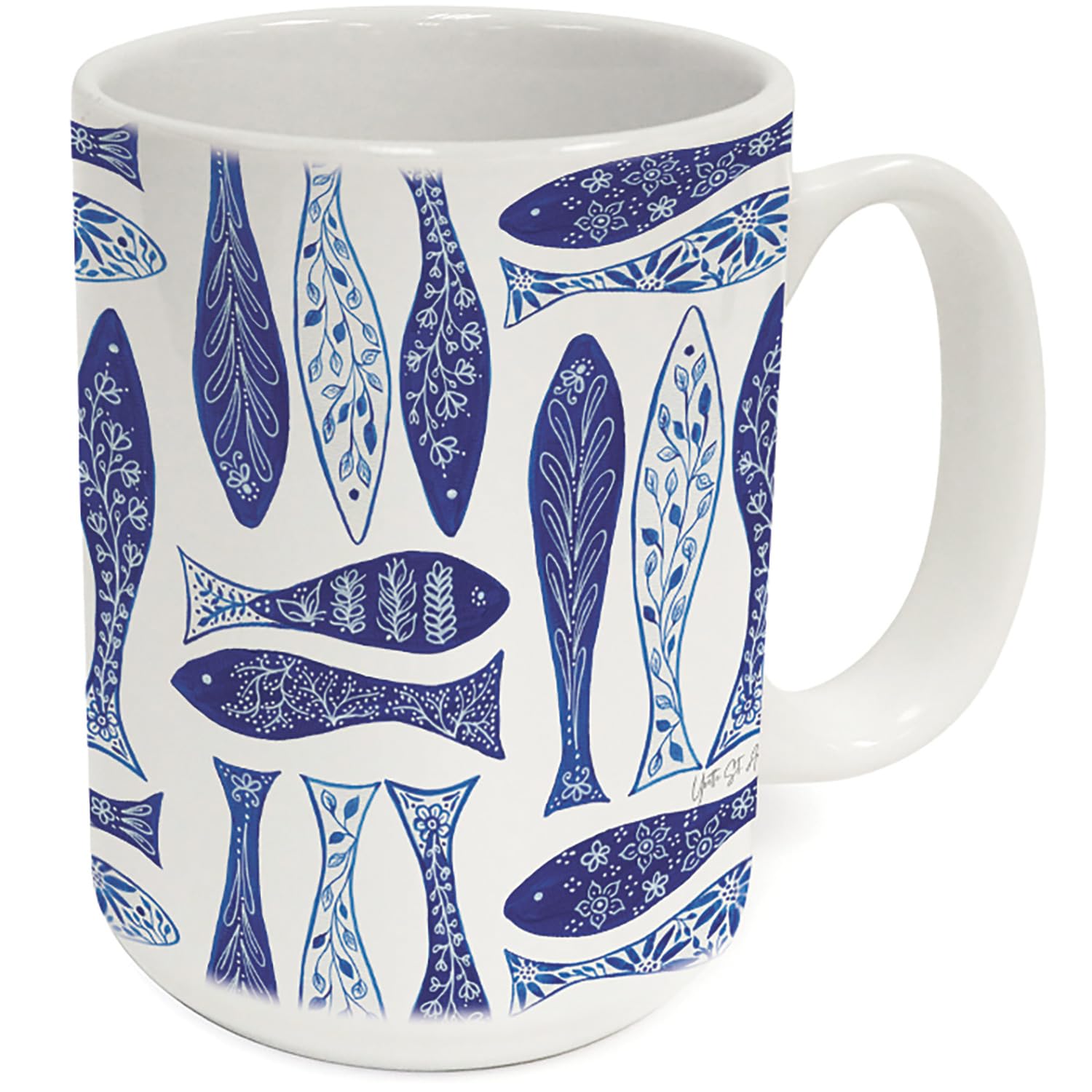 Highland Home Blue Fish 15 oz. Ceramic Mug Manufactured in the USA