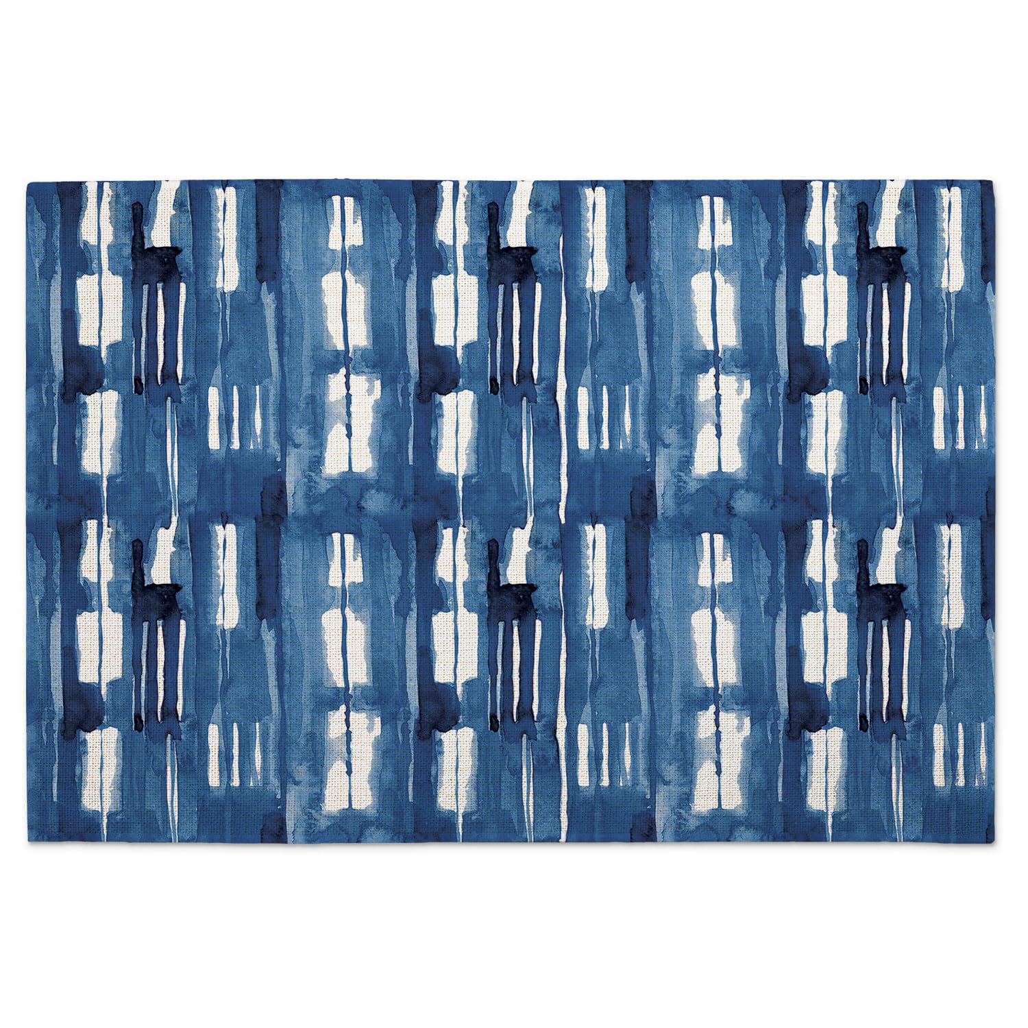 Highland Home Blue & White 4 Pack Poly-Cotton Blend Fabric Placemats 18" x 12" Manufactured in The USA