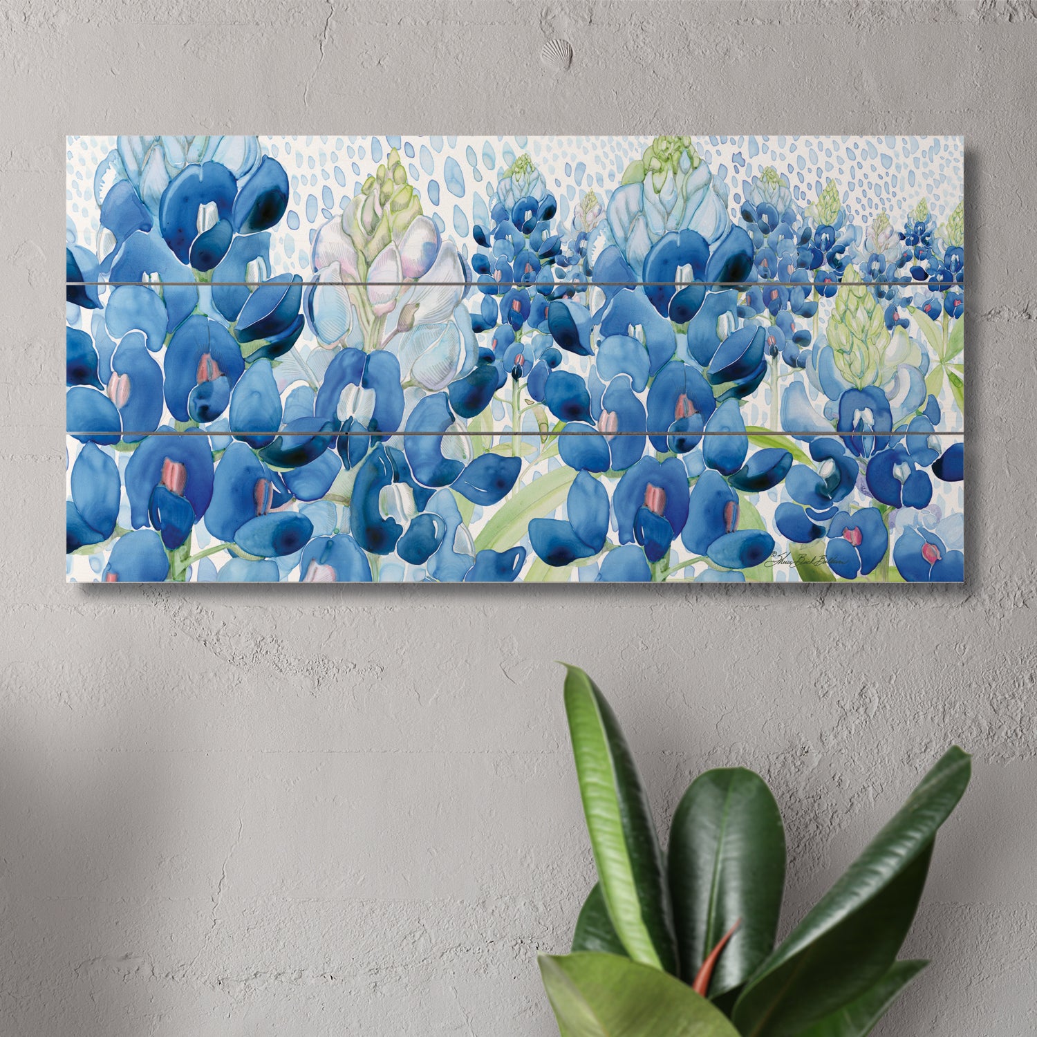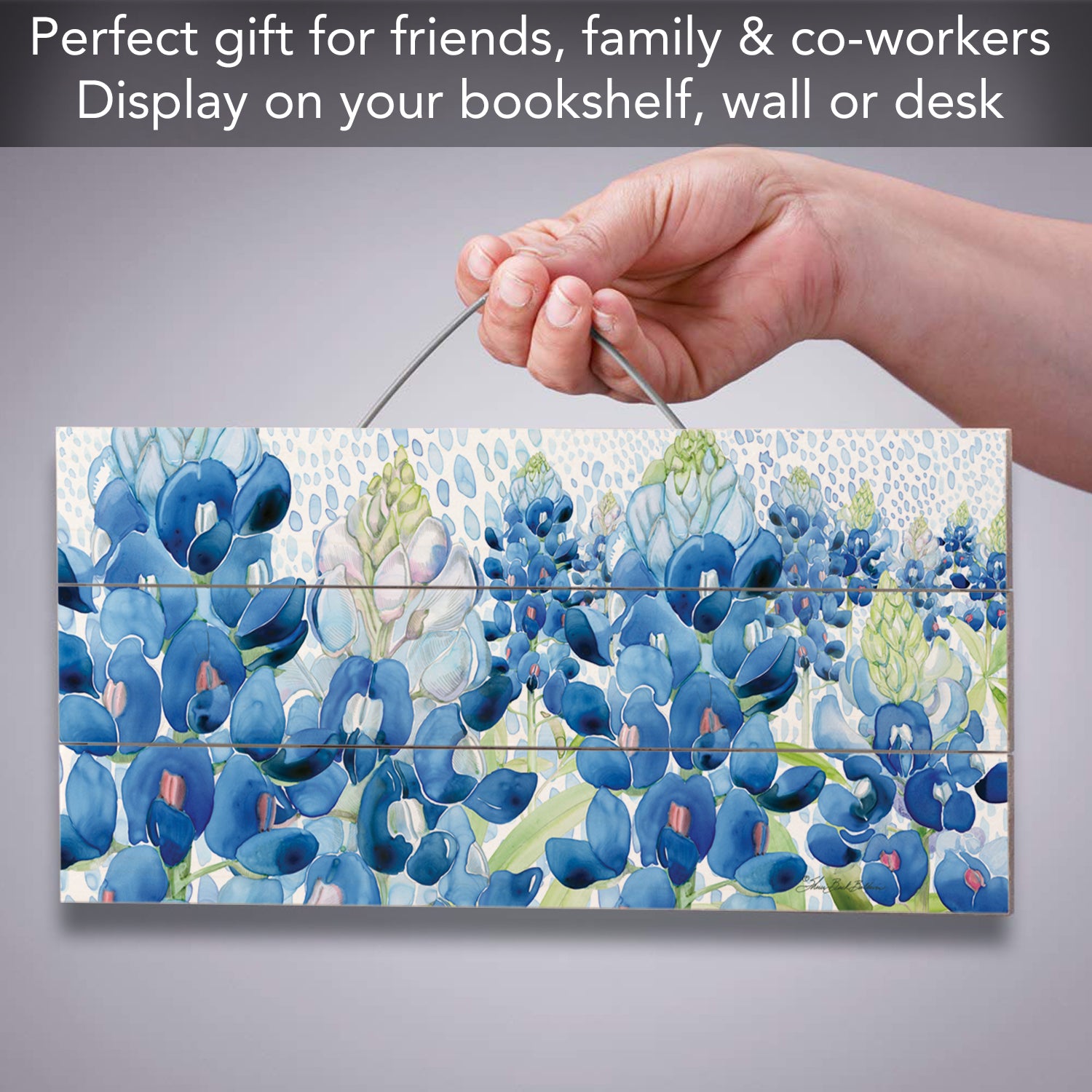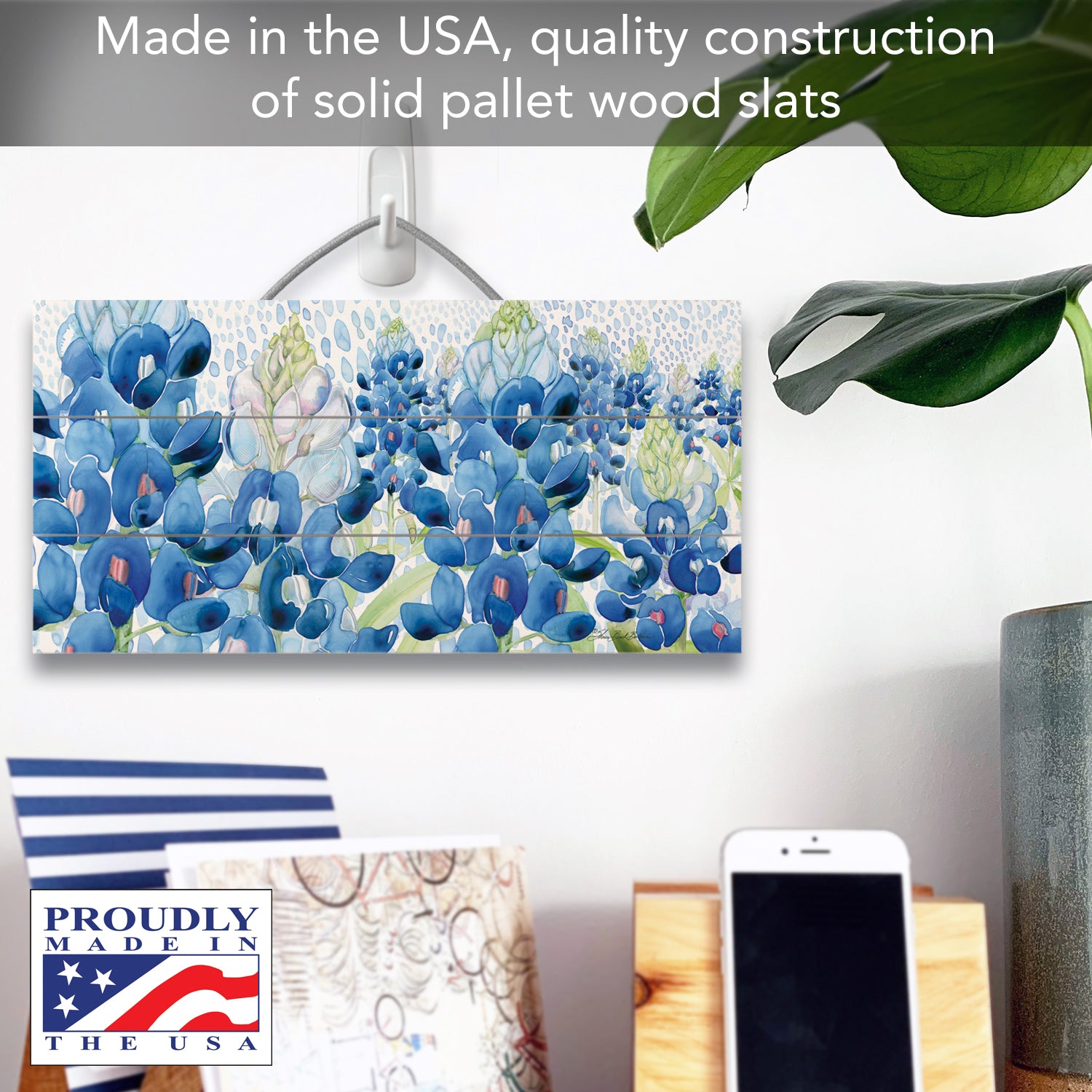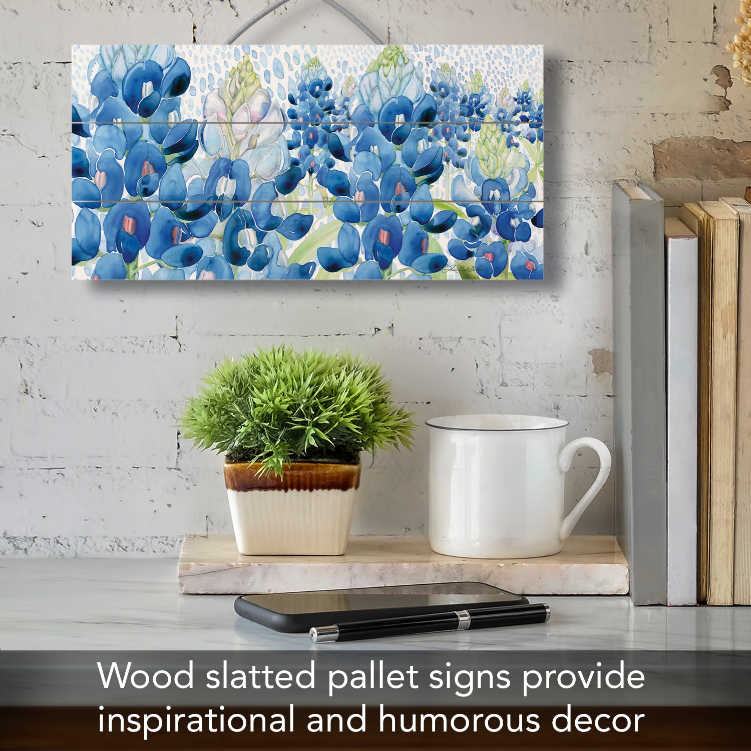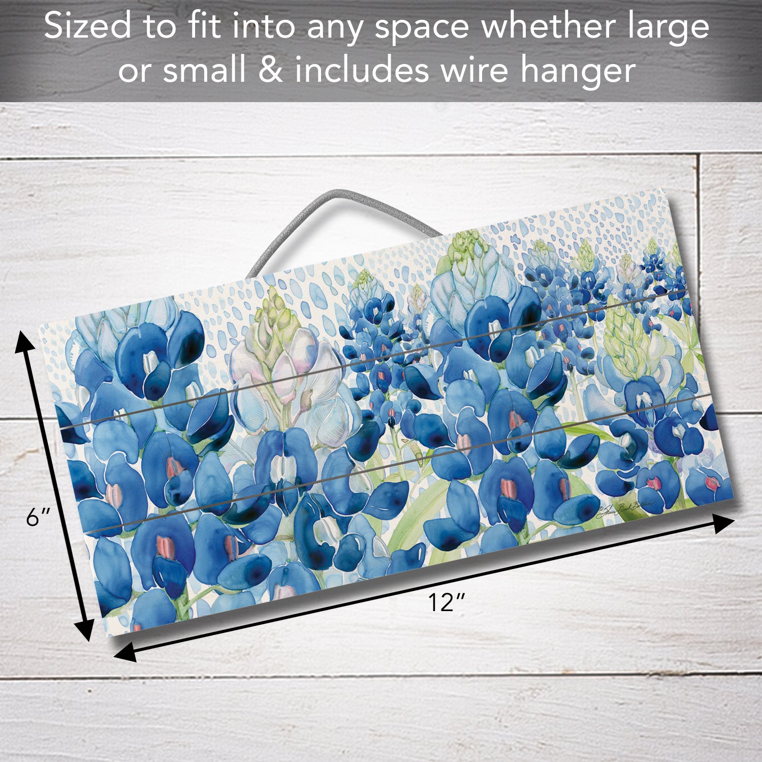 Bluebonnet Field Decorative Slatted Pallet Wood Sign 12" by 6" Wire Hanger Doubles as an Easel