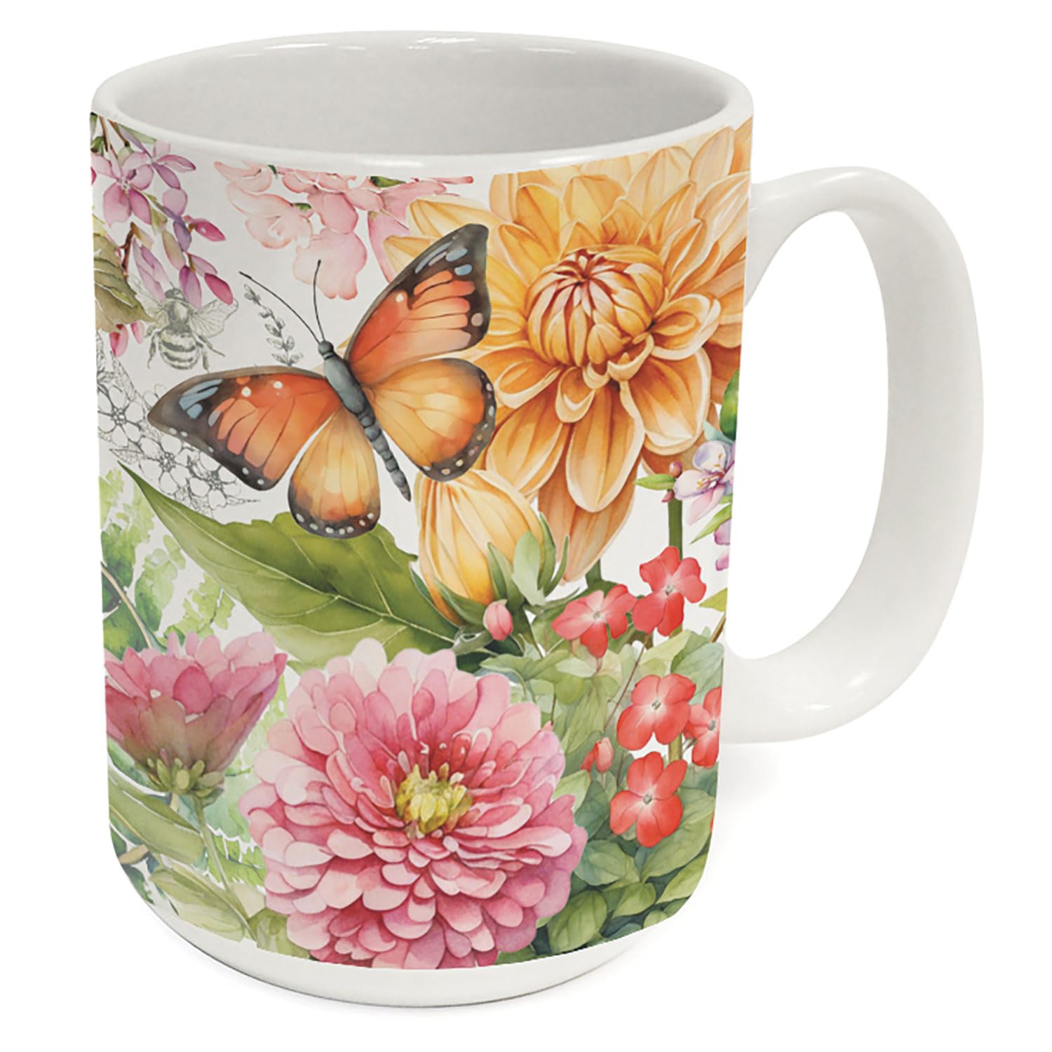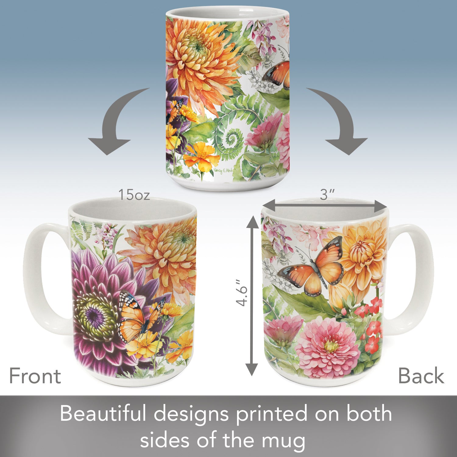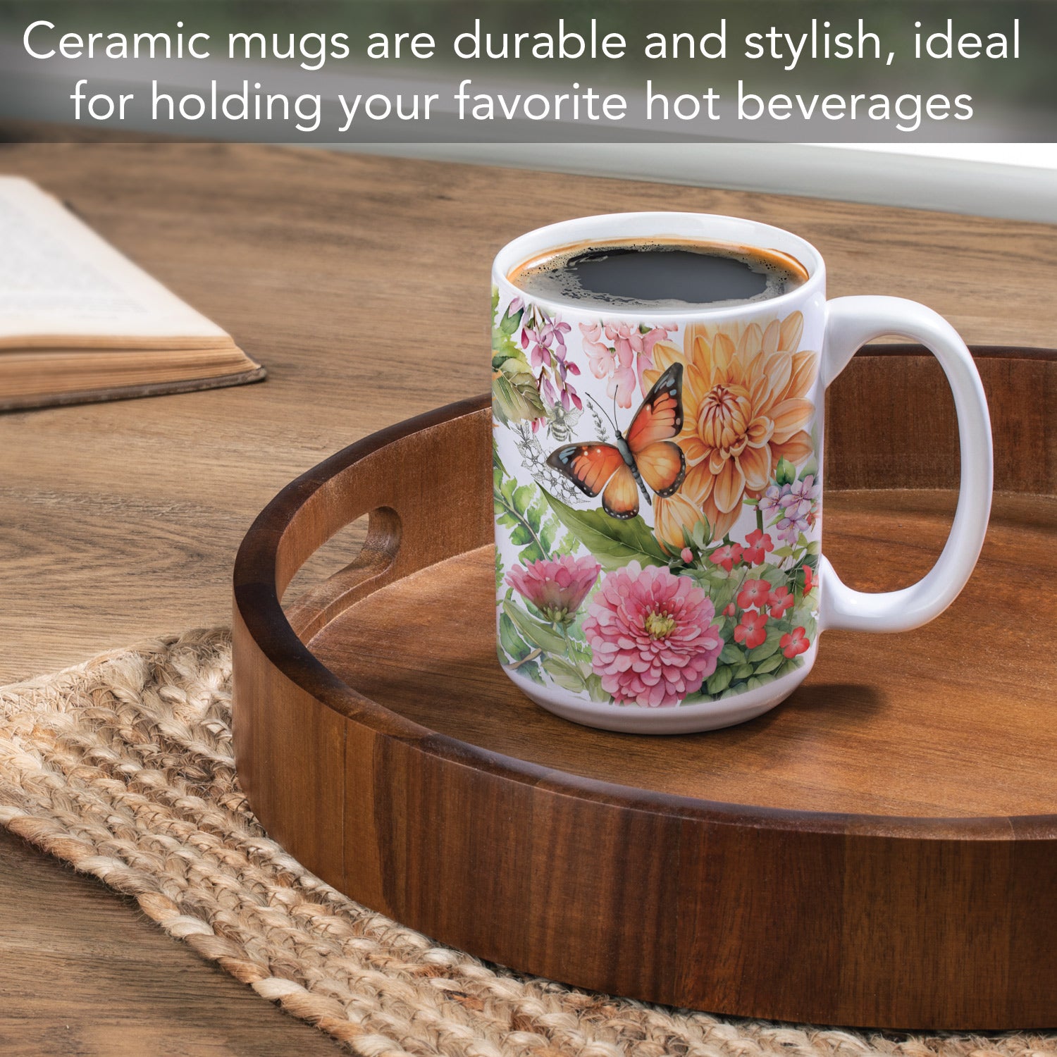 Highland Home Botanica Large Decorative Ceramic Mug 15 oz. Manufactured in the USA