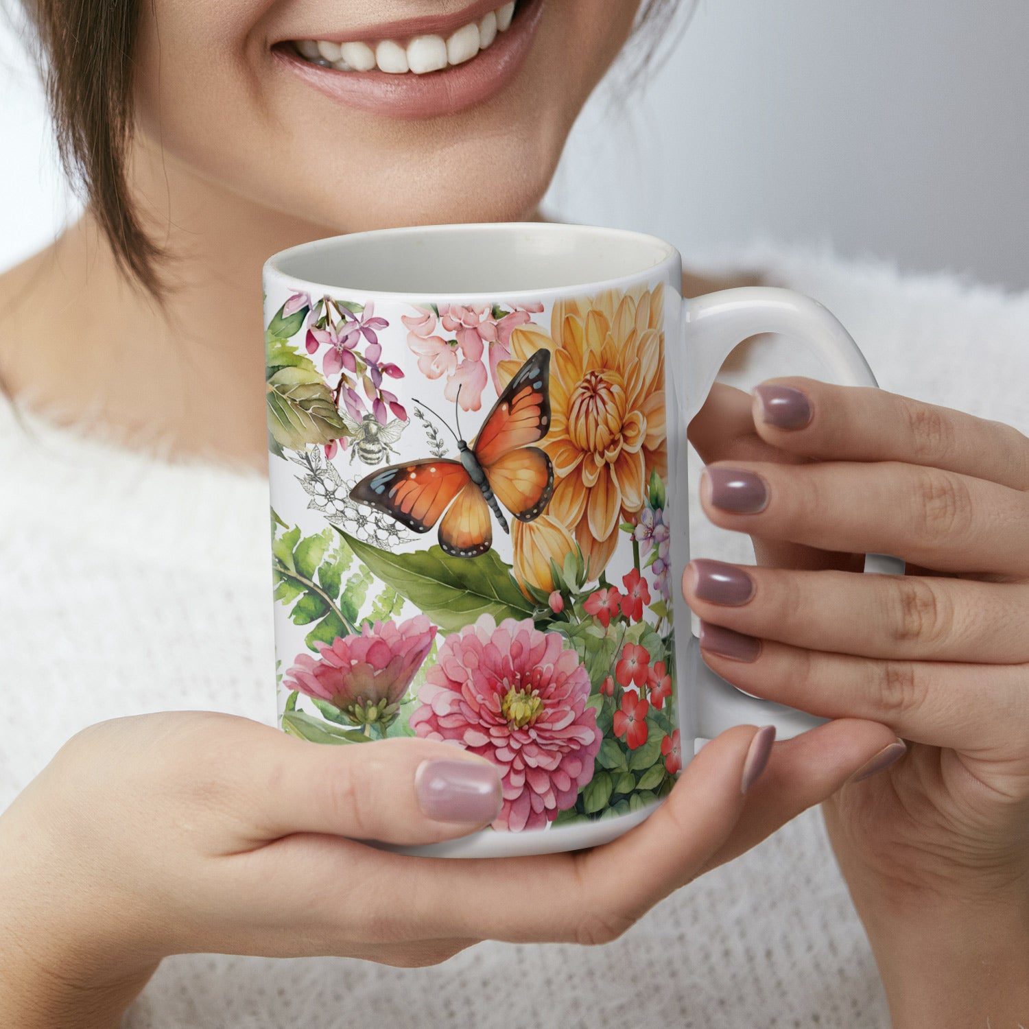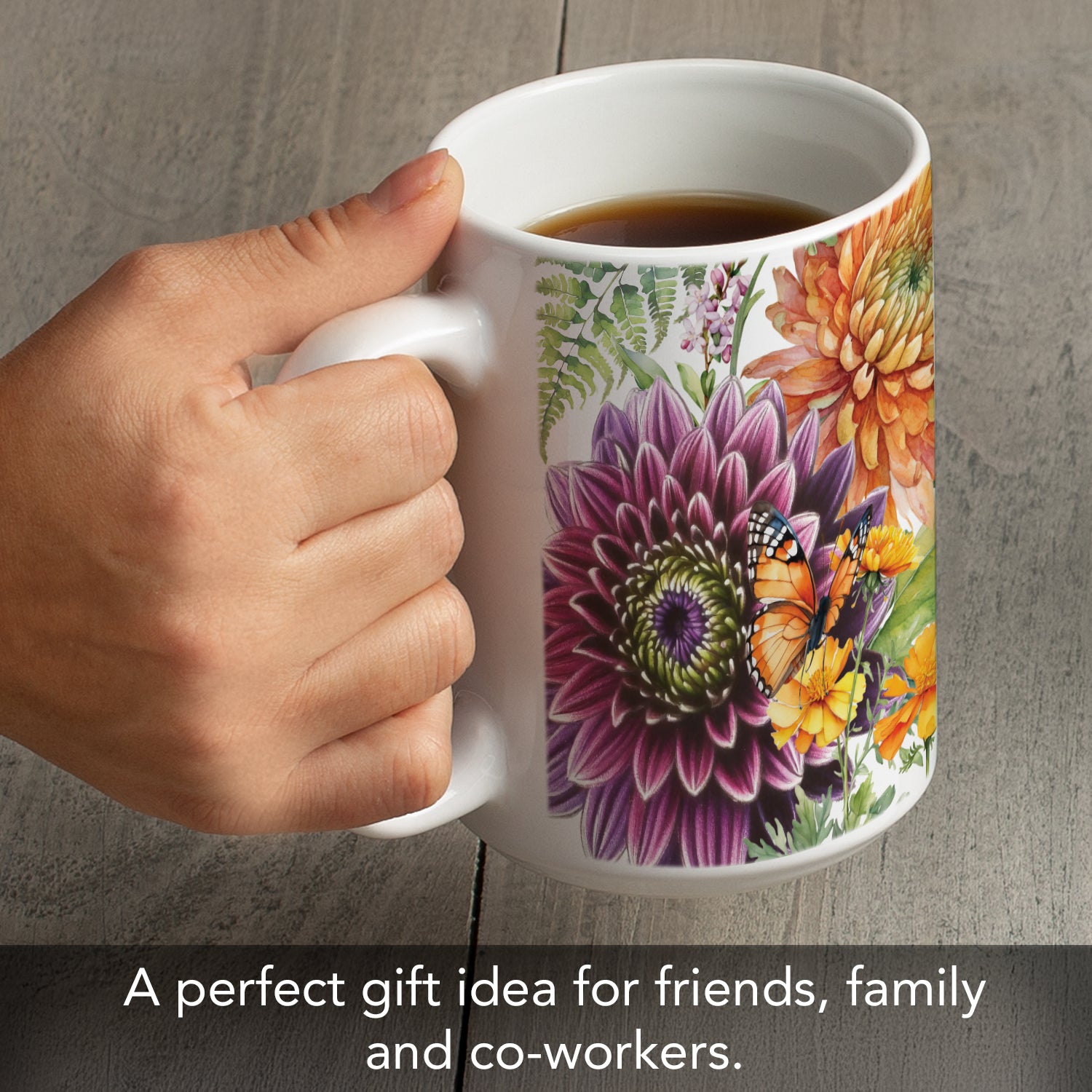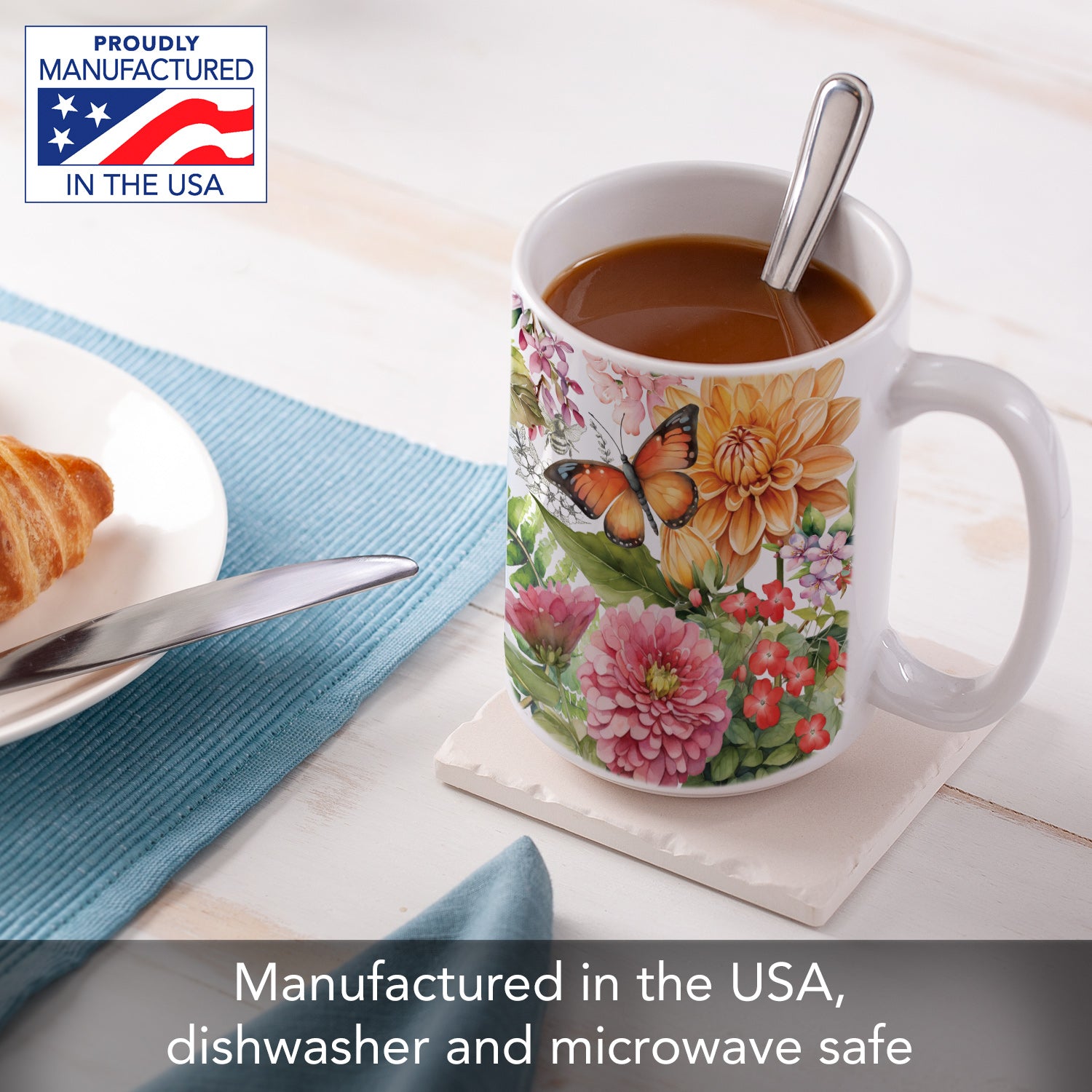 Highland Home Botanica Large Decorative Ceramic Mug 15 oz. Manufactured in the USA