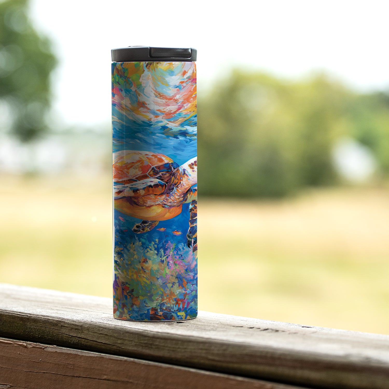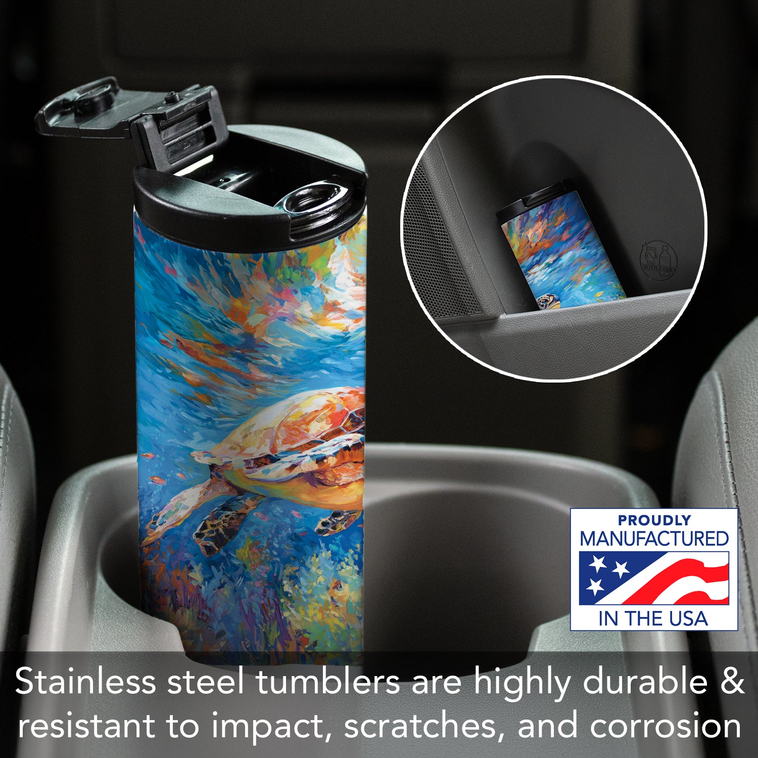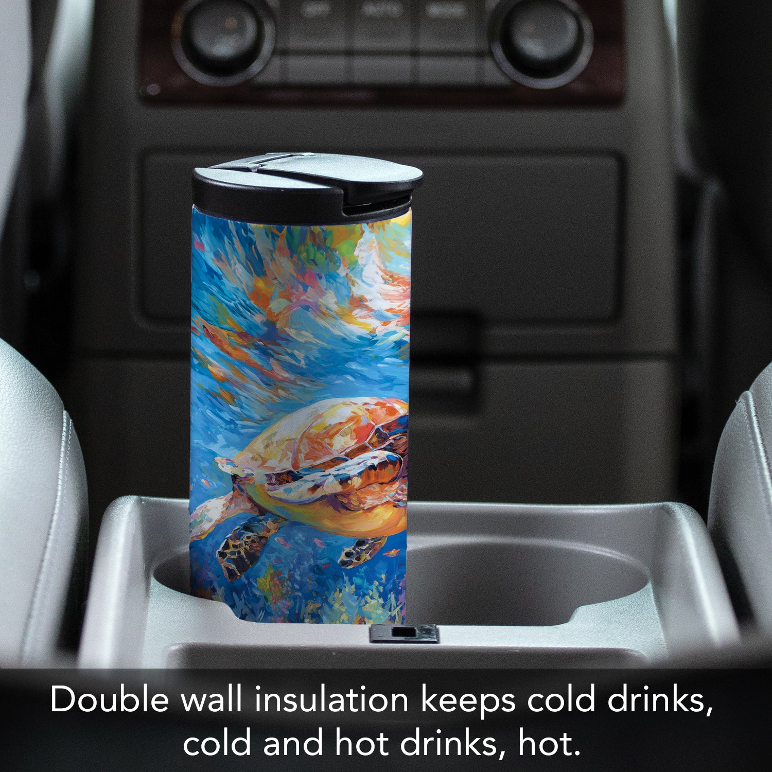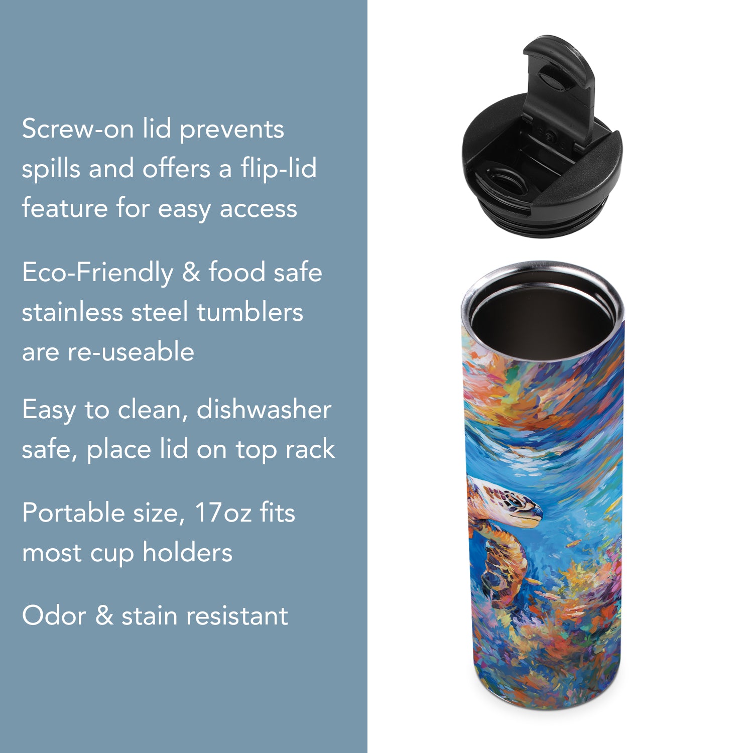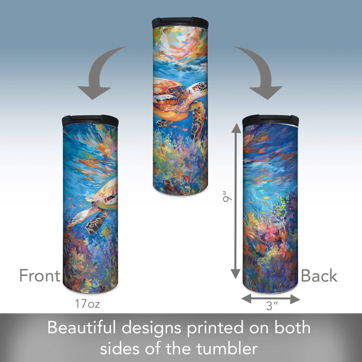 Bright Sea Turtle Decorative Stainless Steel Double Wall Insulated Travel Tumbler with Lid 17 oz.