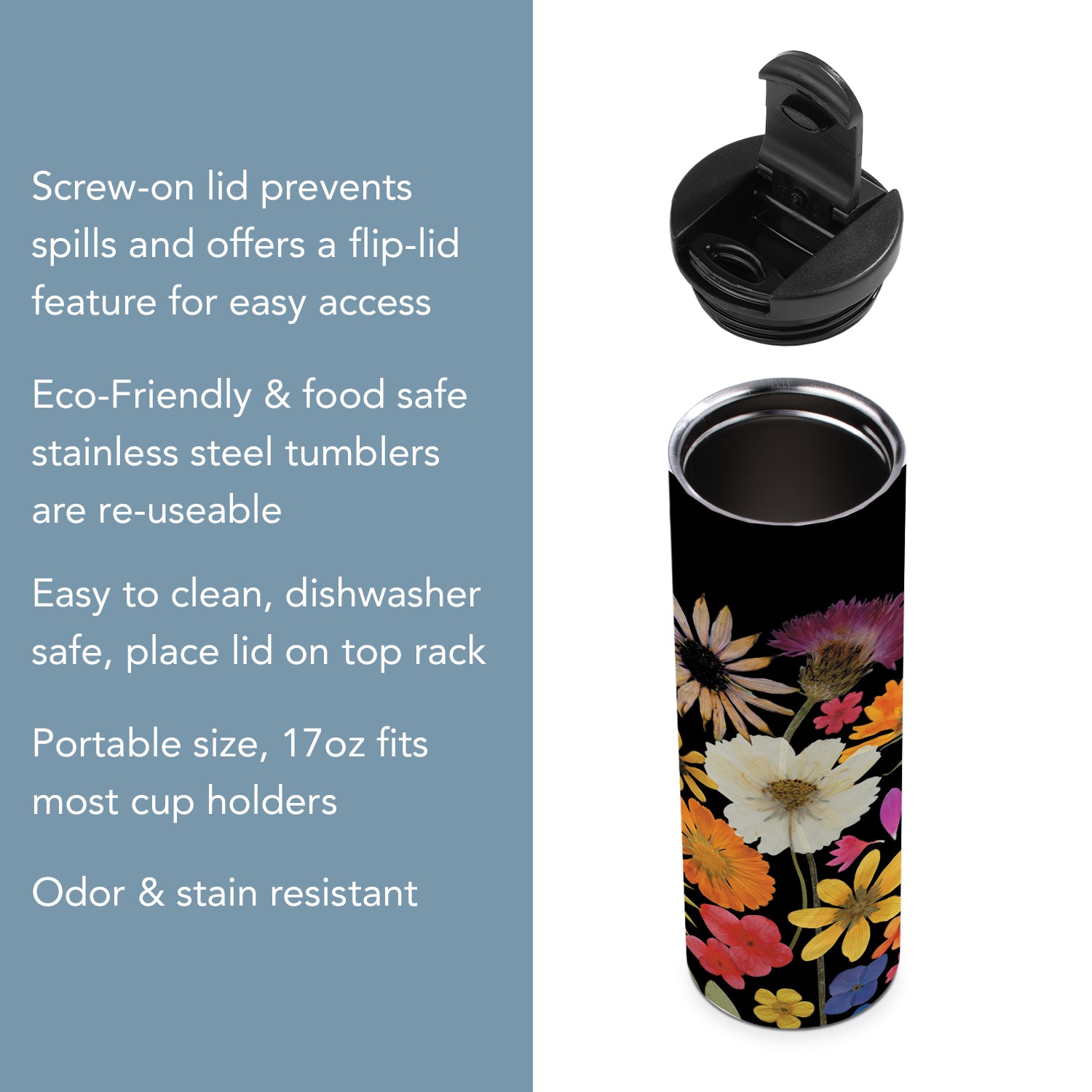 Budding Genius Decorative Stainless Steel Double Wall Insulated Travel Tumbler with Lid 17 oz.