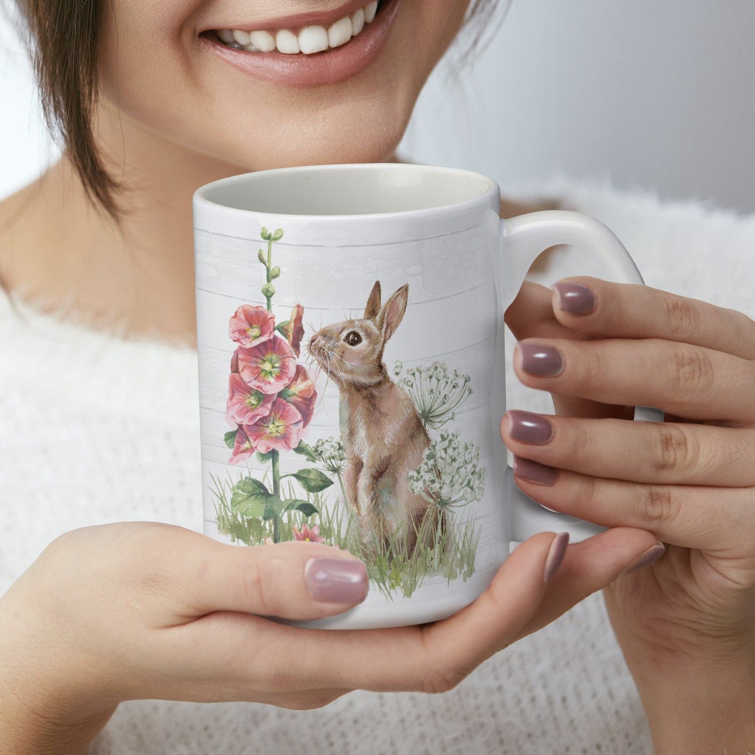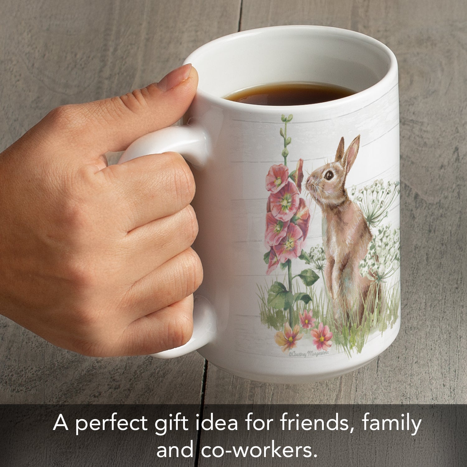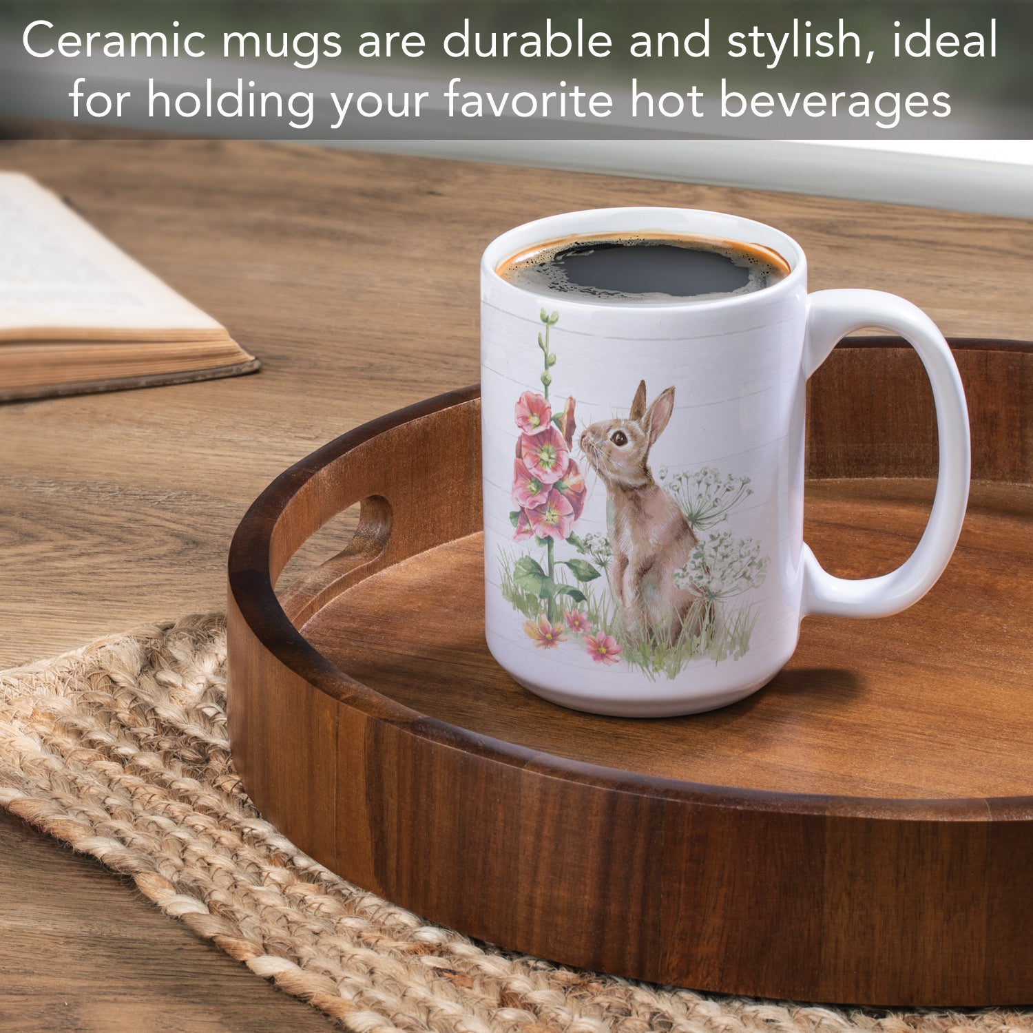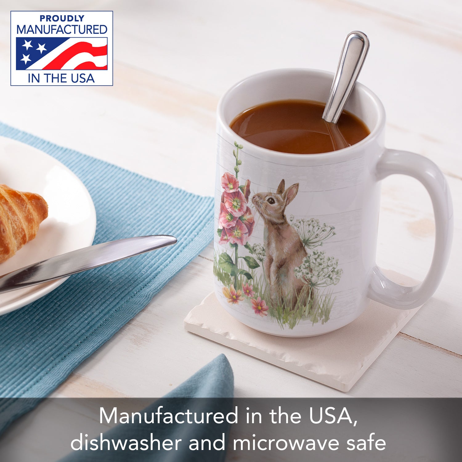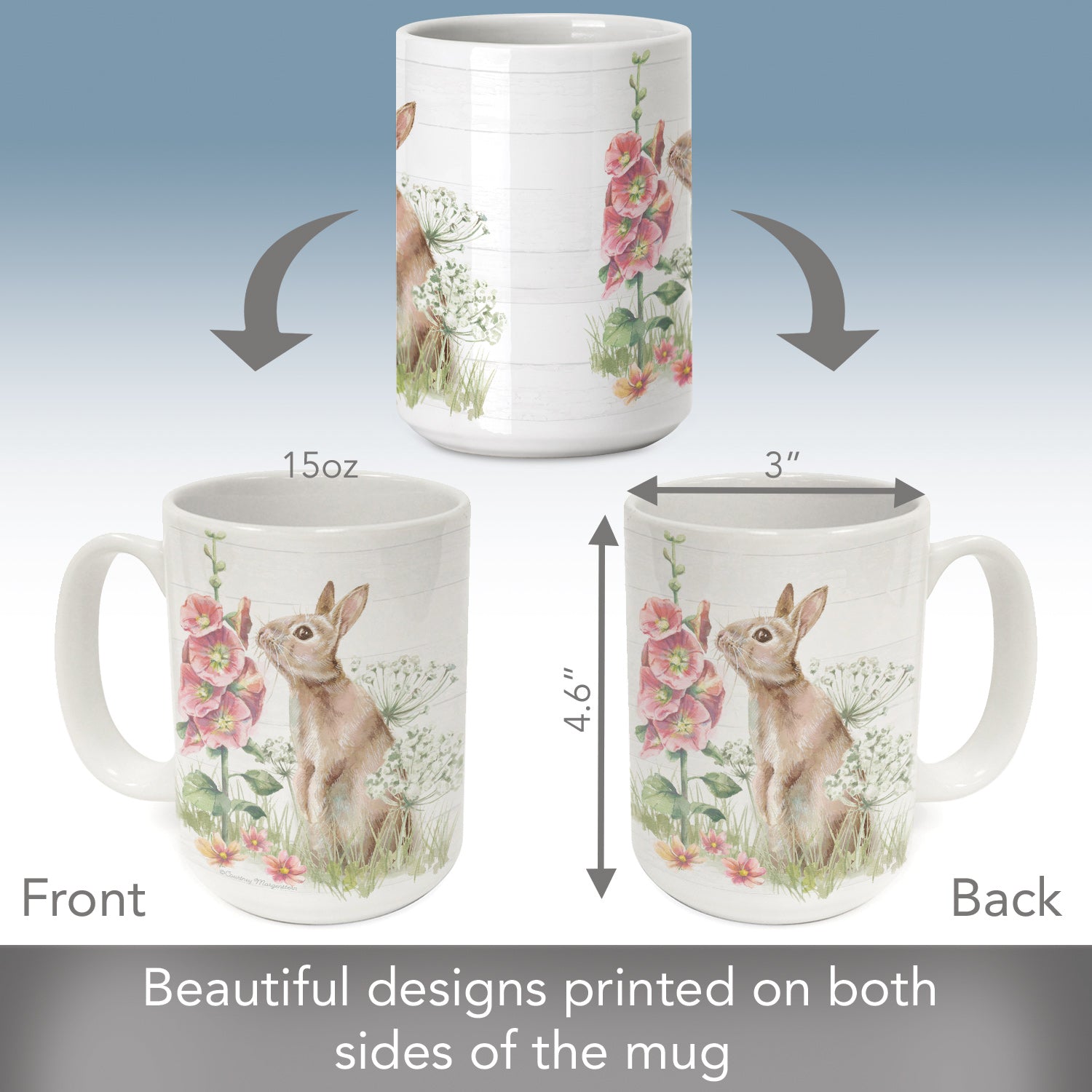 Highland Home Bunny Garden Large Decorative Ceramic Mug 15 oz. Manufactured in the USA