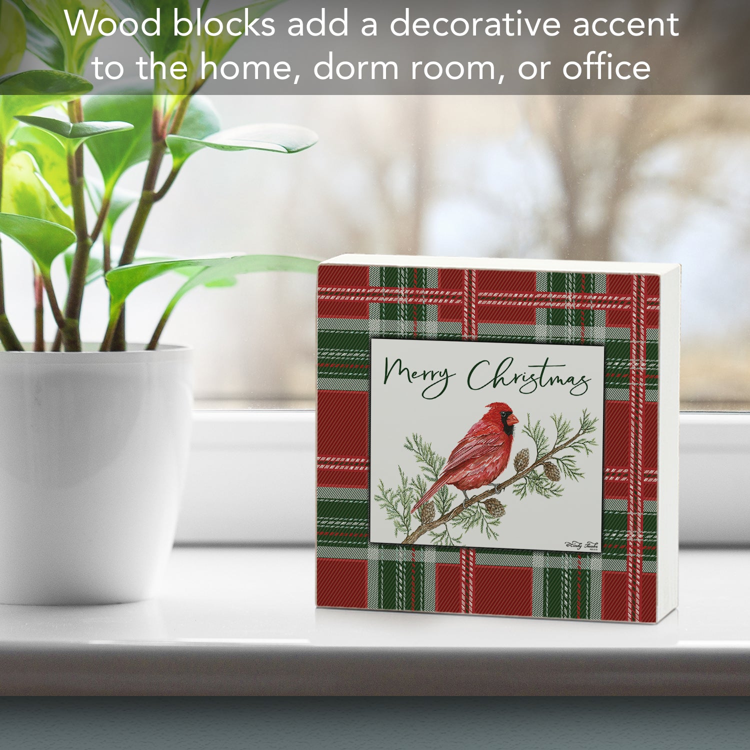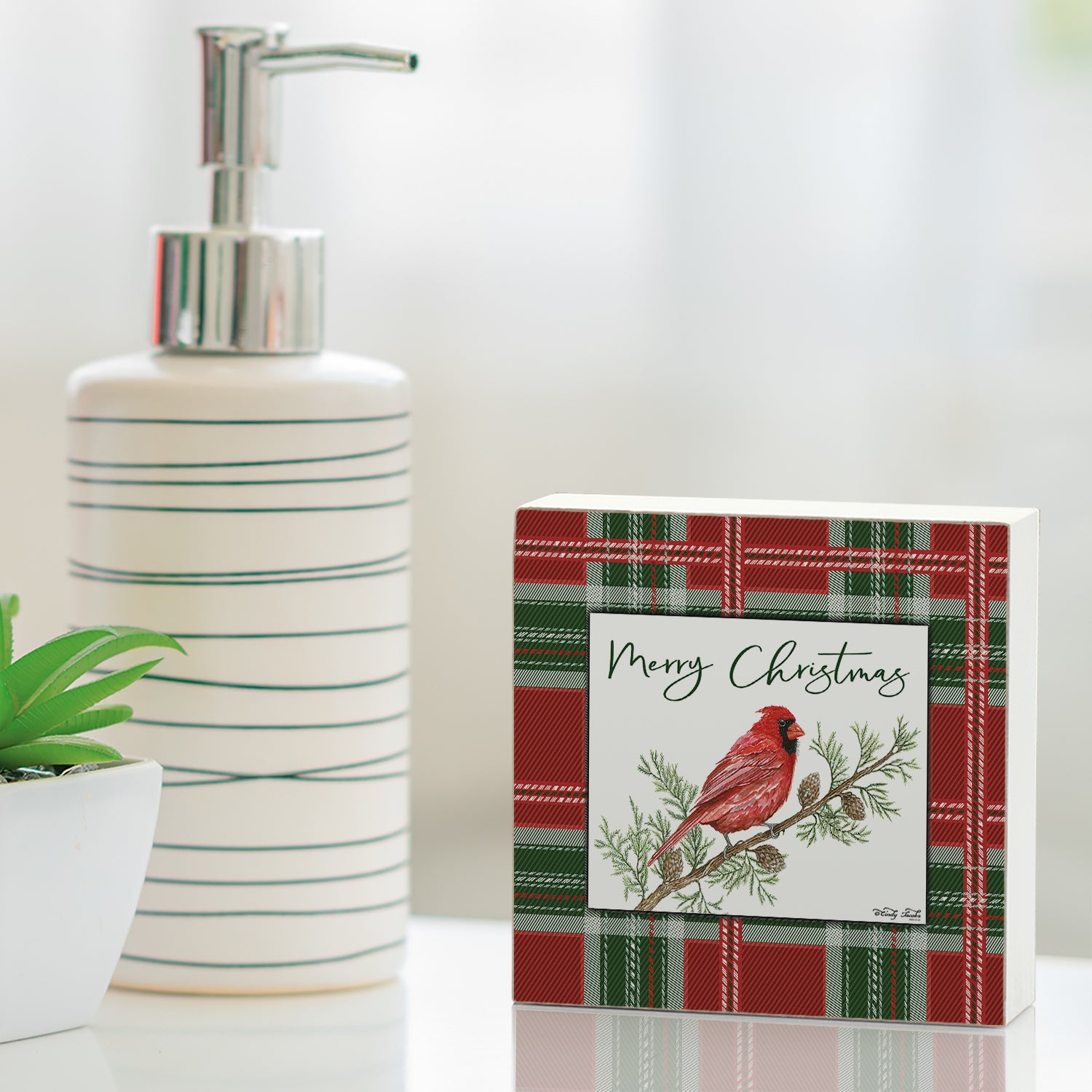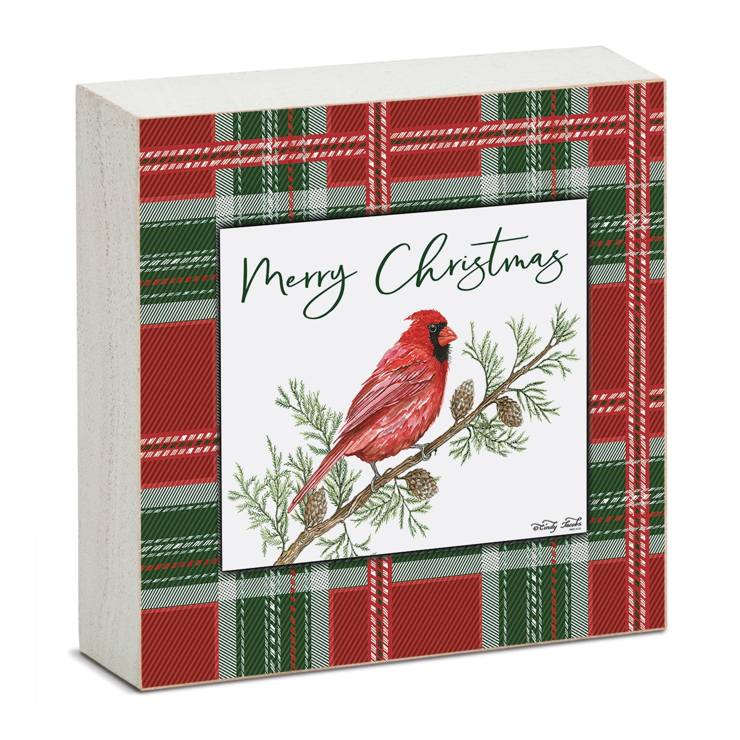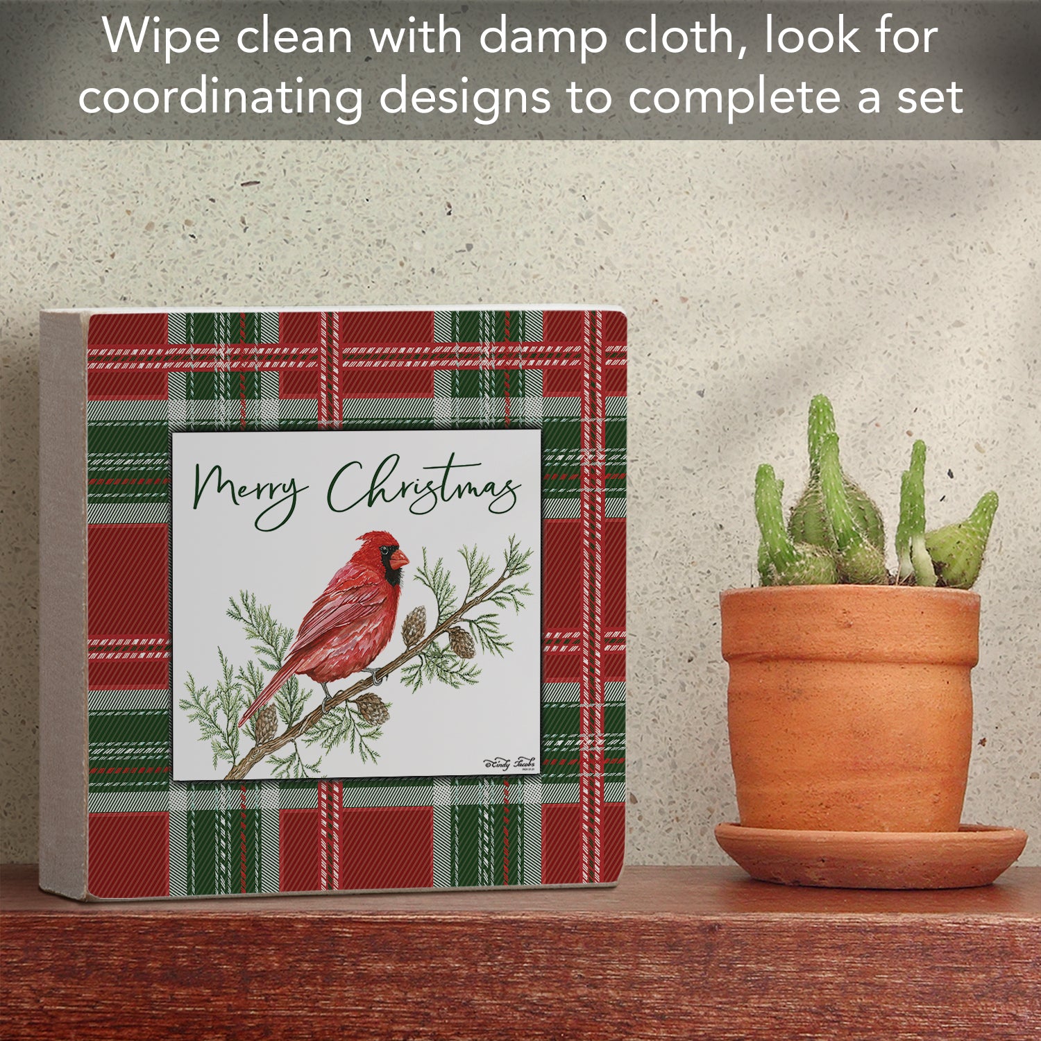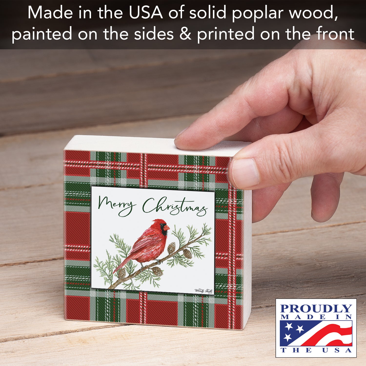 Christmas Cardinal Decorative Wooden Home Accent Sign 3.75" Square Made in the USA