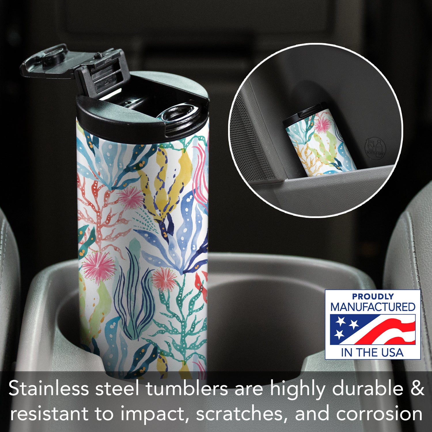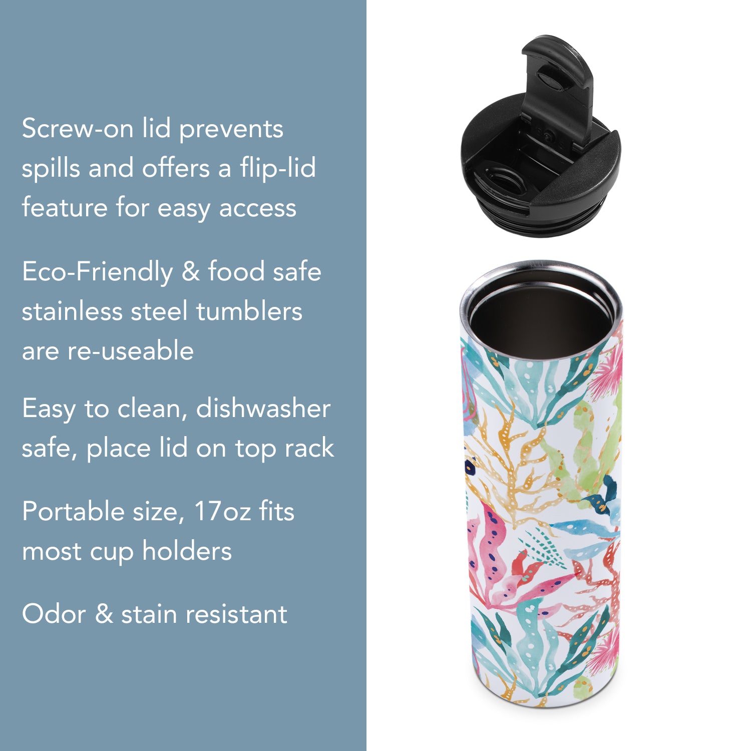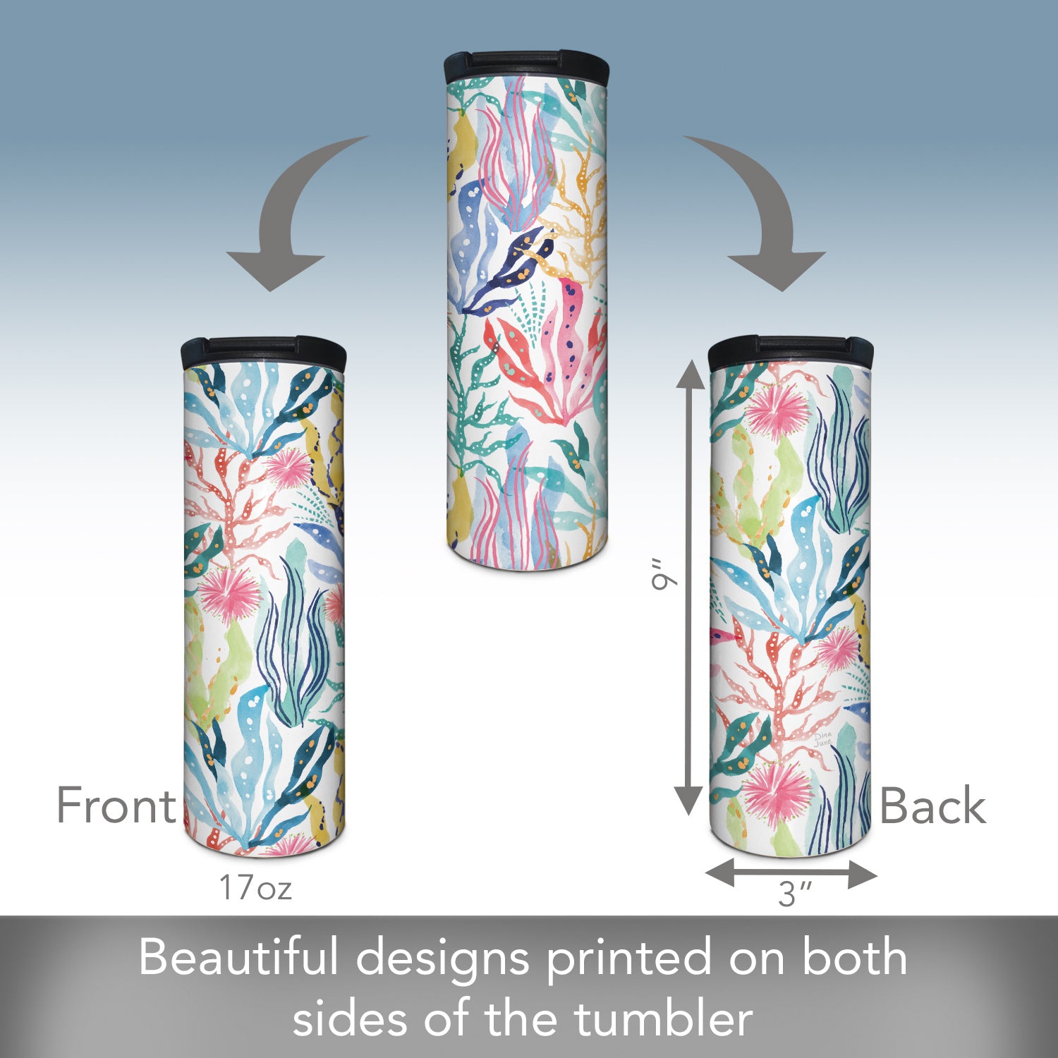 Coastal Coral Decorative Stainless Steel Double Wall Insulated Travel Tumbler with Lid 17 oz.