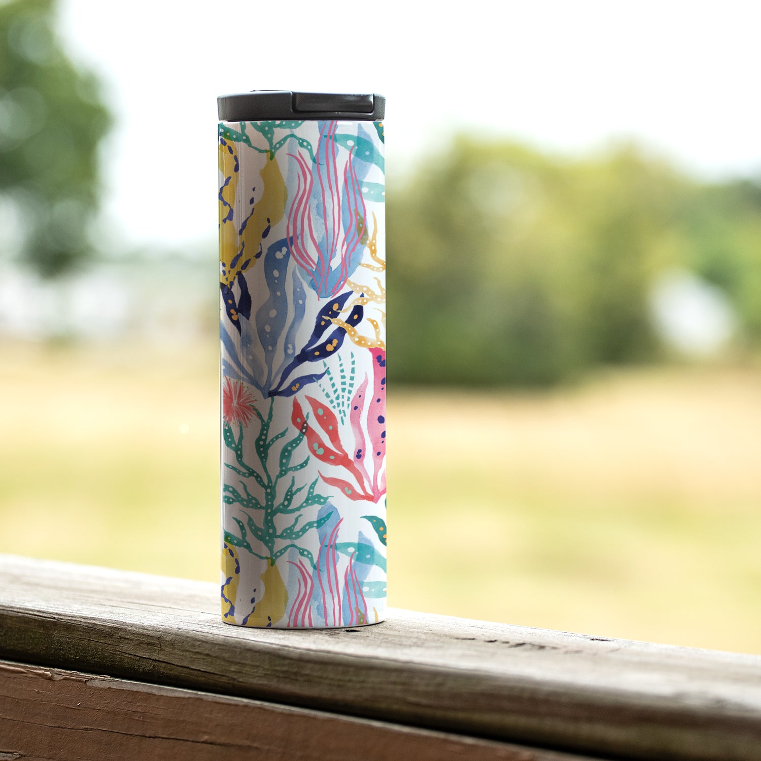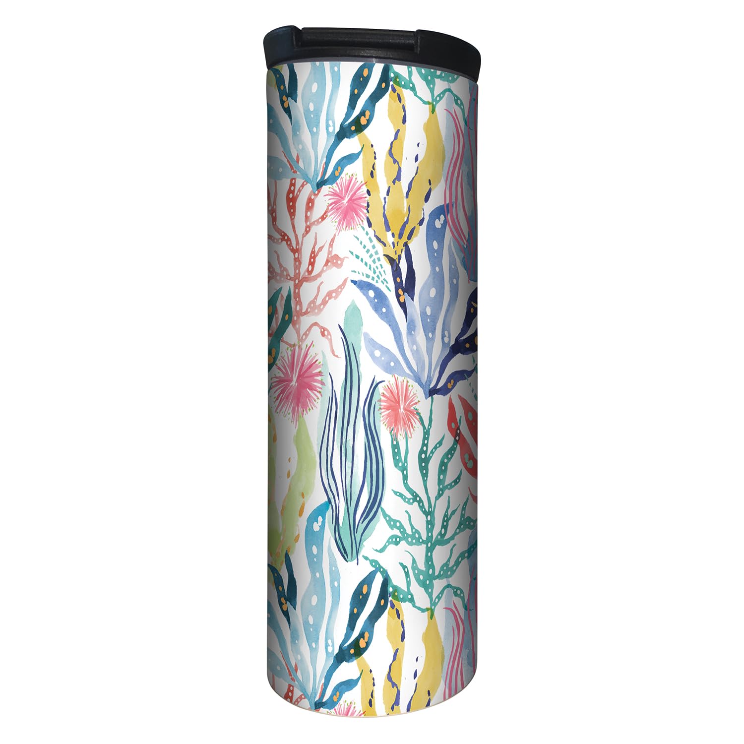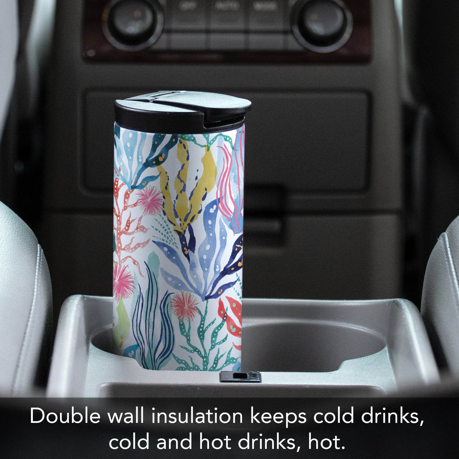 Coastal Coral Decorative Stainless Steel Double Wall Insulated Travel Tumbler with Lid 17 oz.