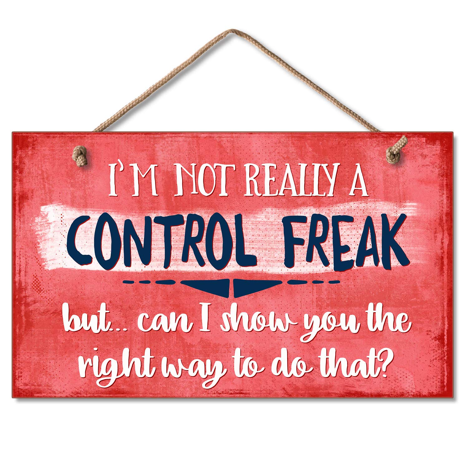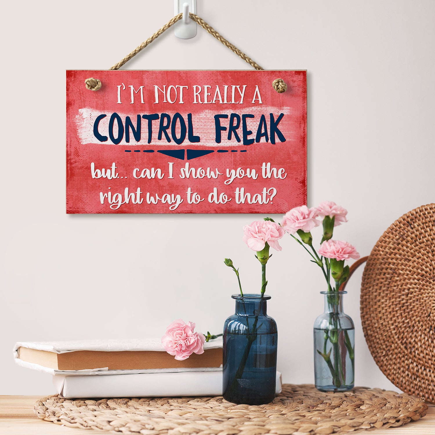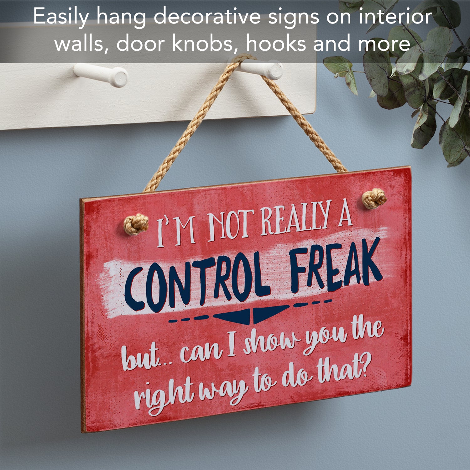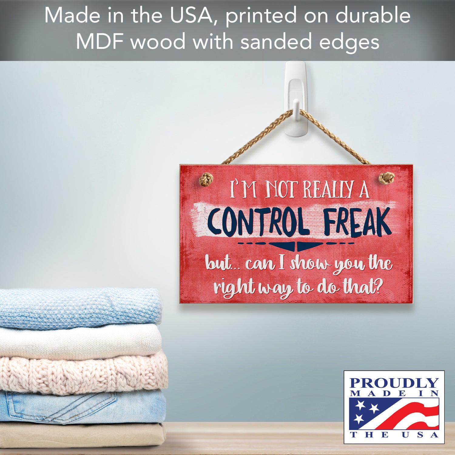 Control Freak Humorous Hanging Wood Wall Sign 9.5” x 5.75” Made in the USA
