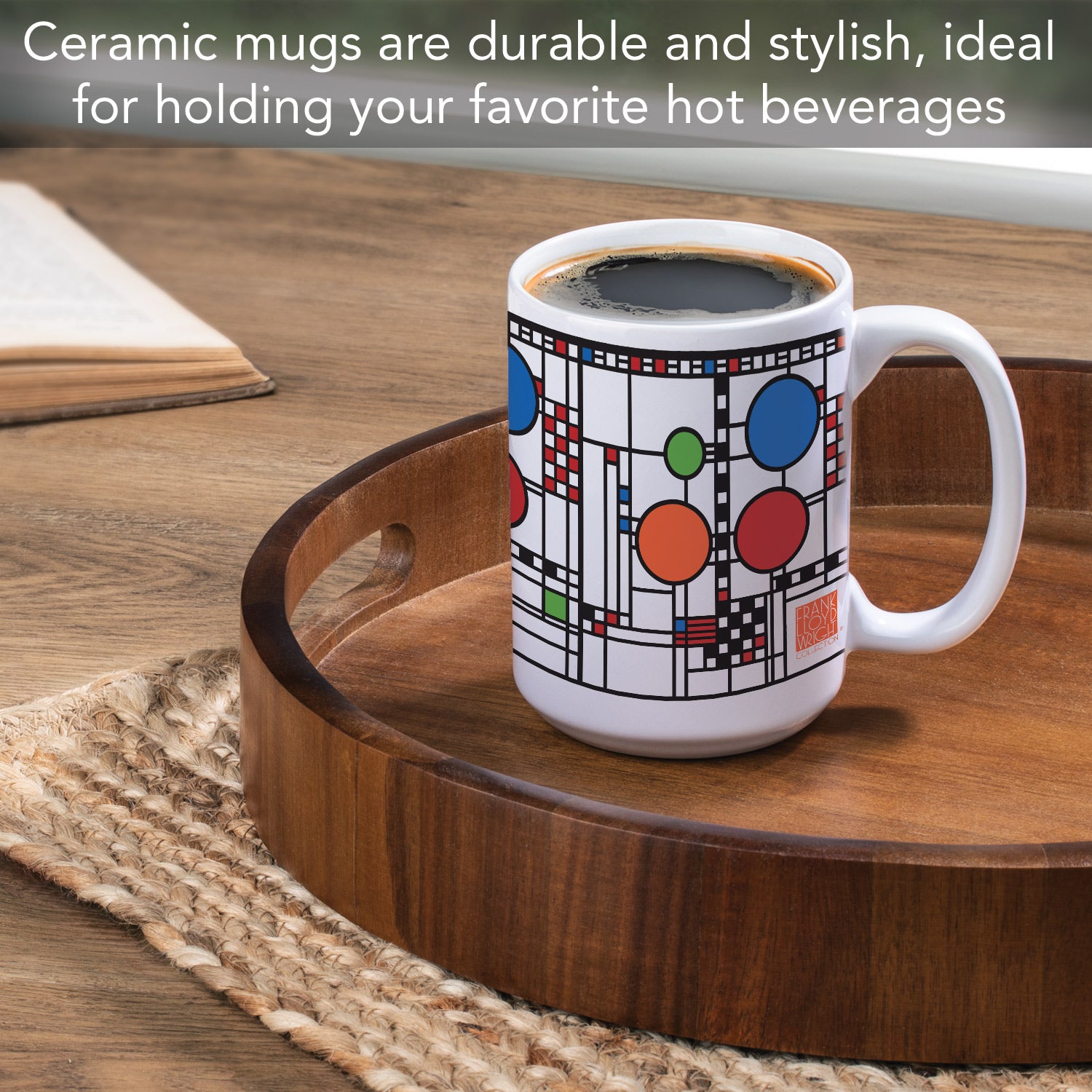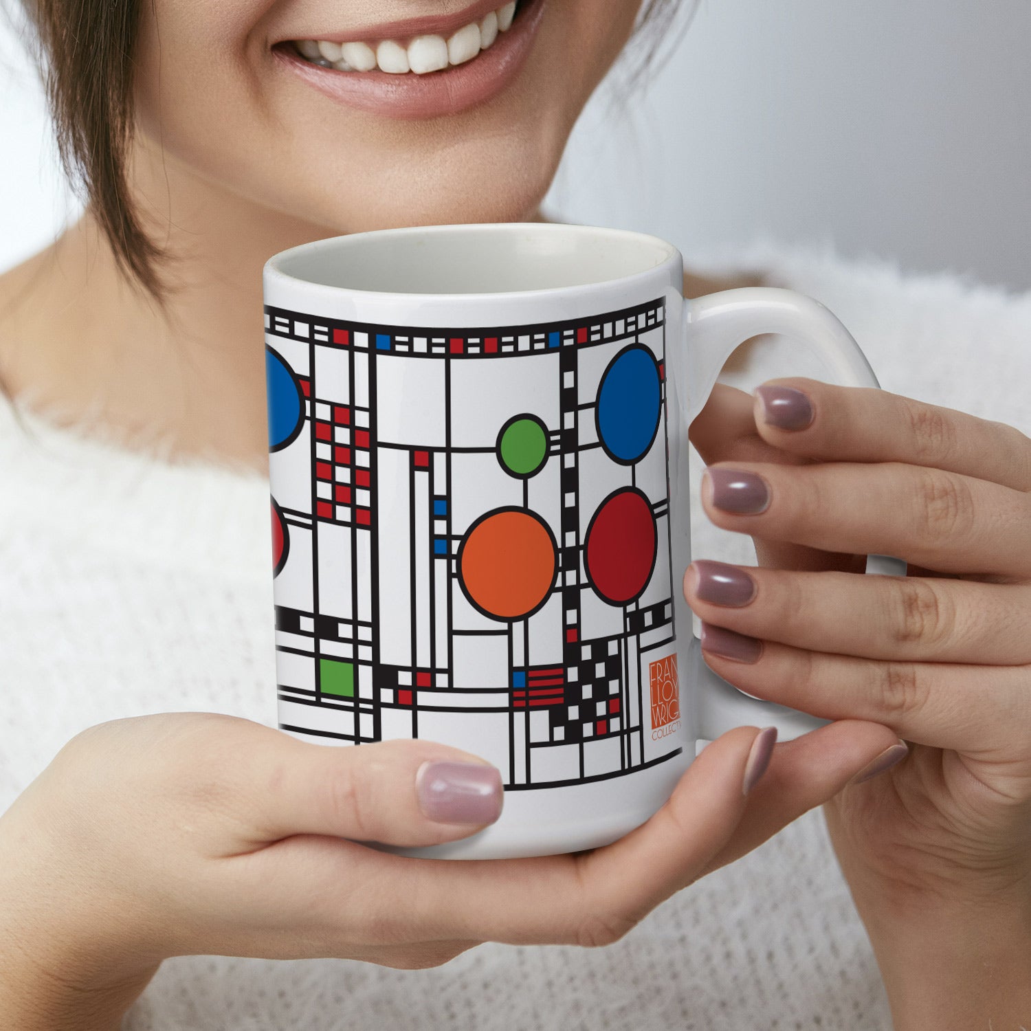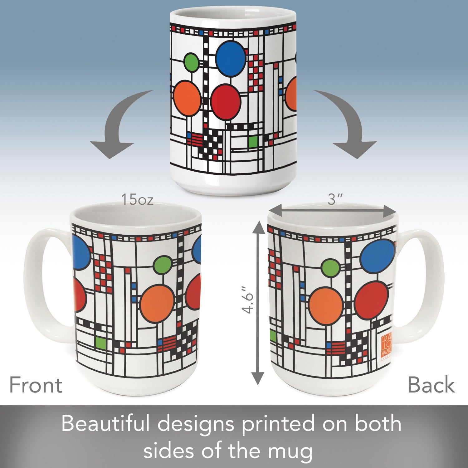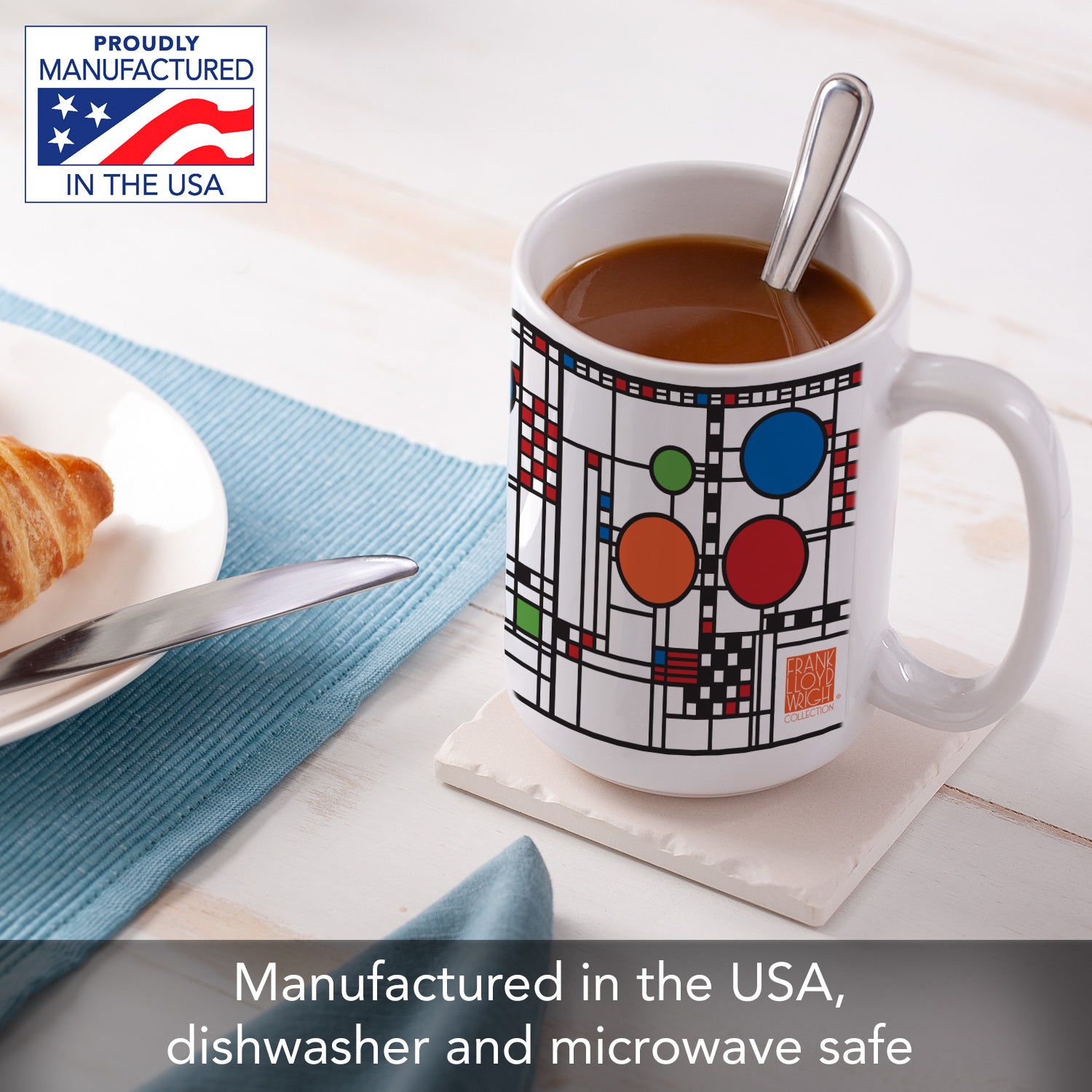 Frank Lloyd Wright's Coonley Playhouse Window Design on 15 oz. Ceramic Mug Manufactured in the USA