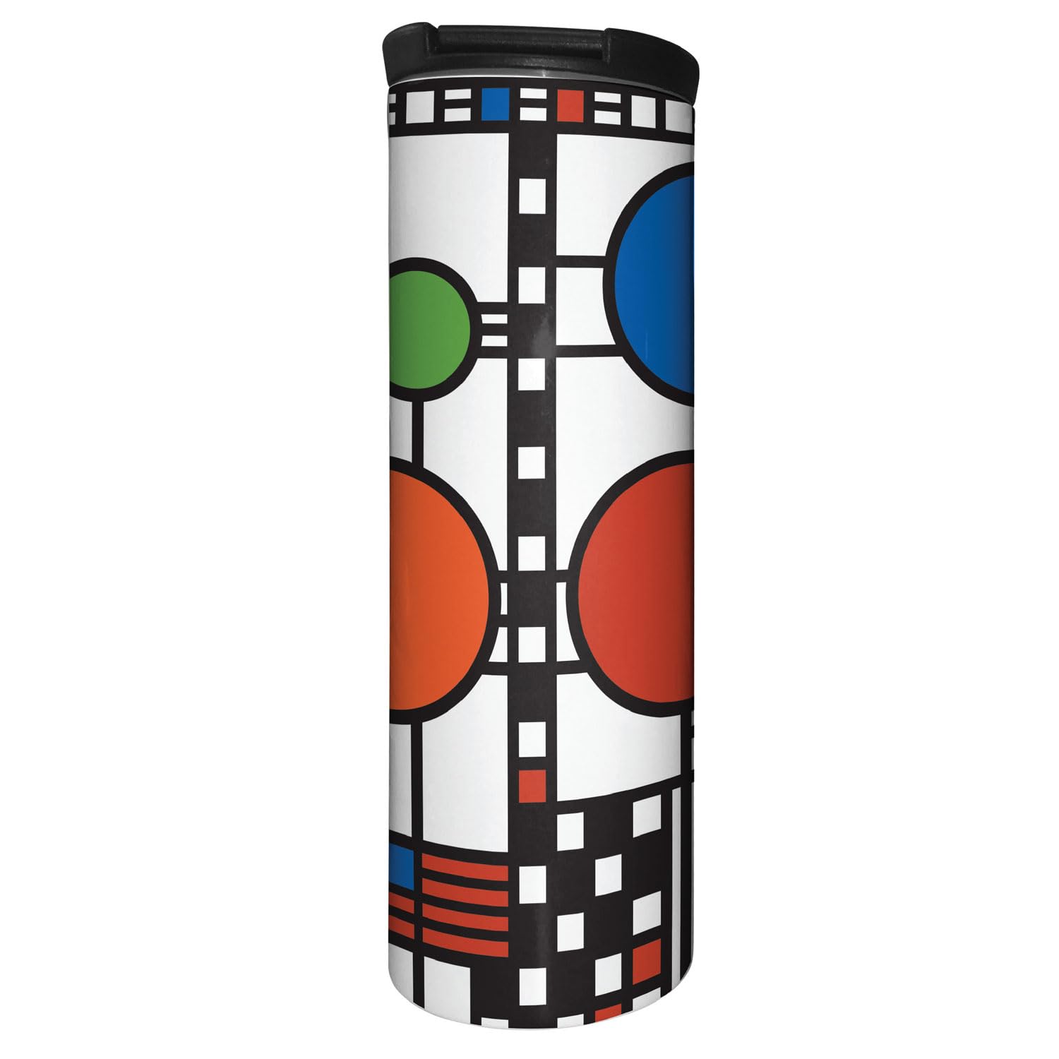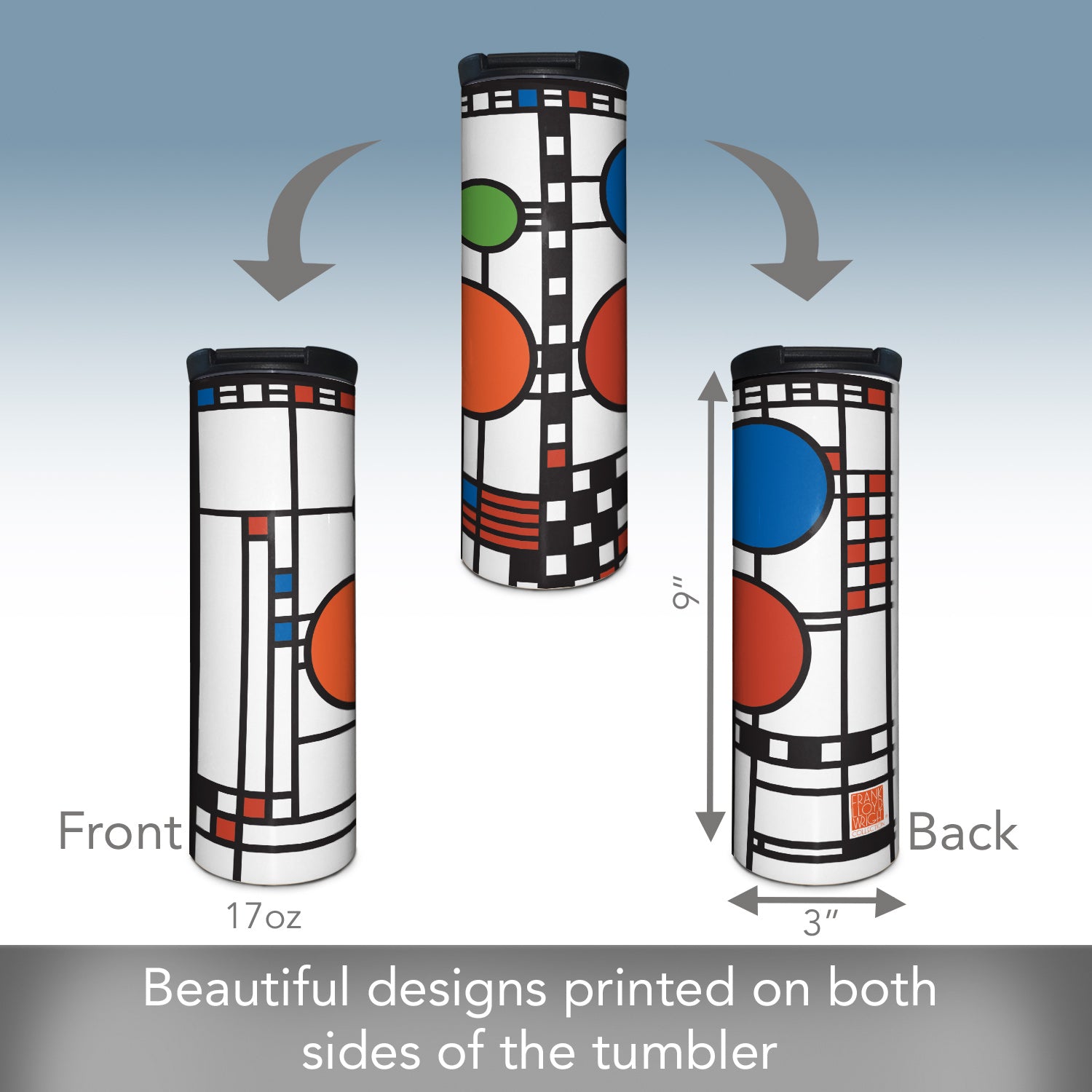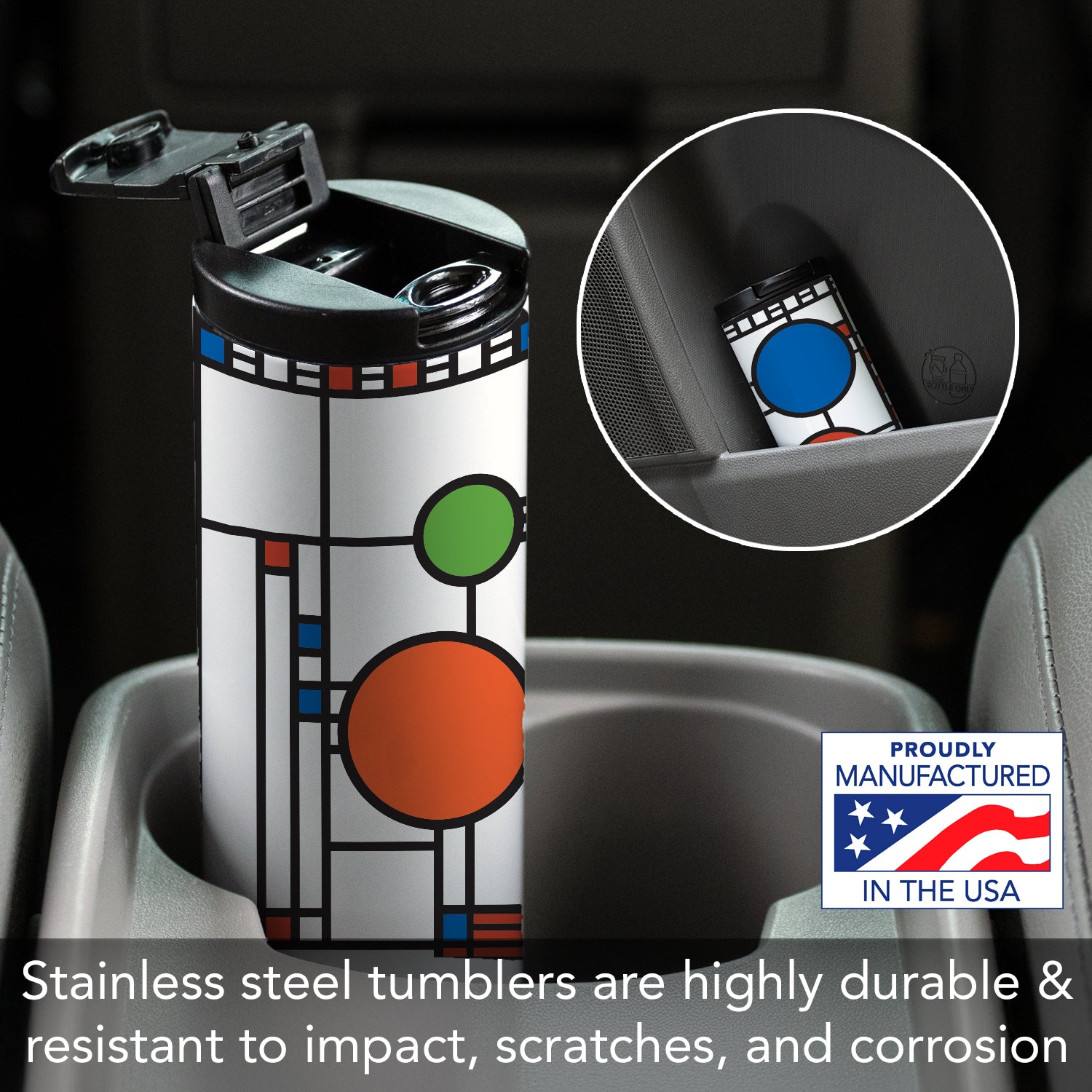 Frank Lloyd Wright's Coonley Playhouse Window Design on 17 Ounce Insulated Stainless Steel Tumbler Manufactured in the USA