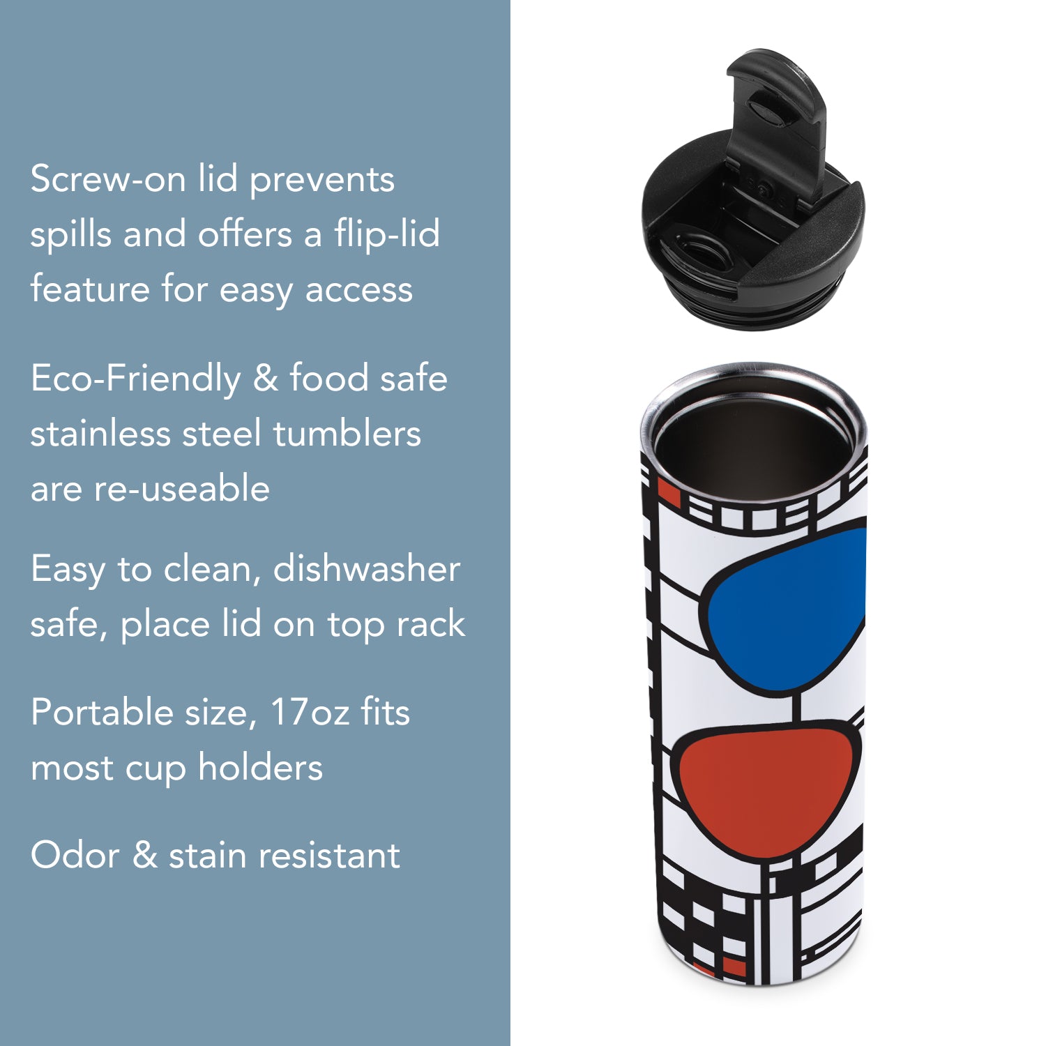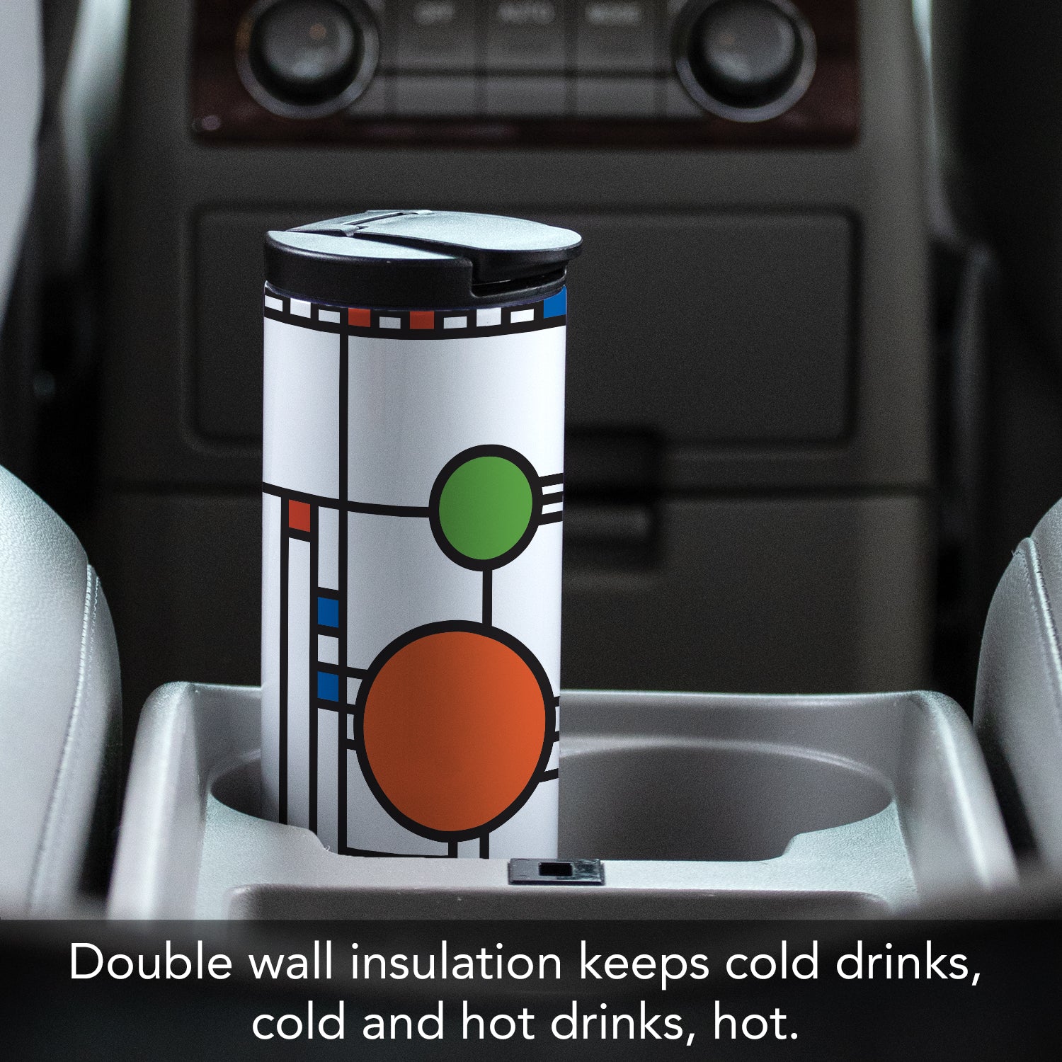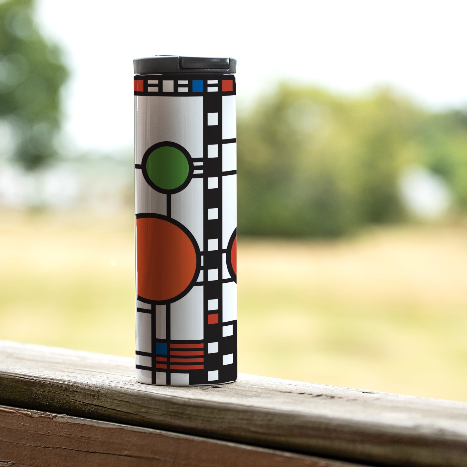 Frank Lloyd Wright's Coonley Playhouse Window Design on 17 Ounce Insulated Stainless Steel Tumbler Manufactured in the USA