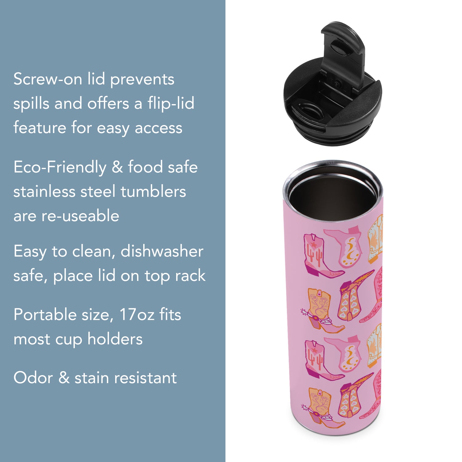 Cowgirl Boots Decorative Stainless Steel Double Wall Insulated Travel Tumbler with Lid 17 oz.