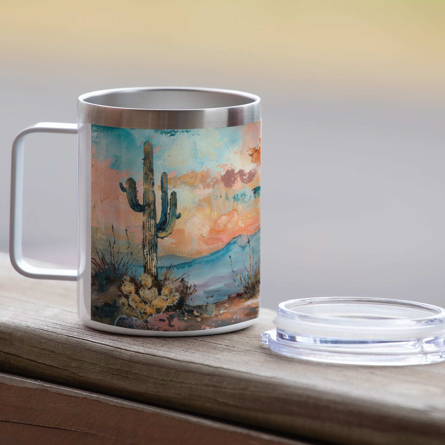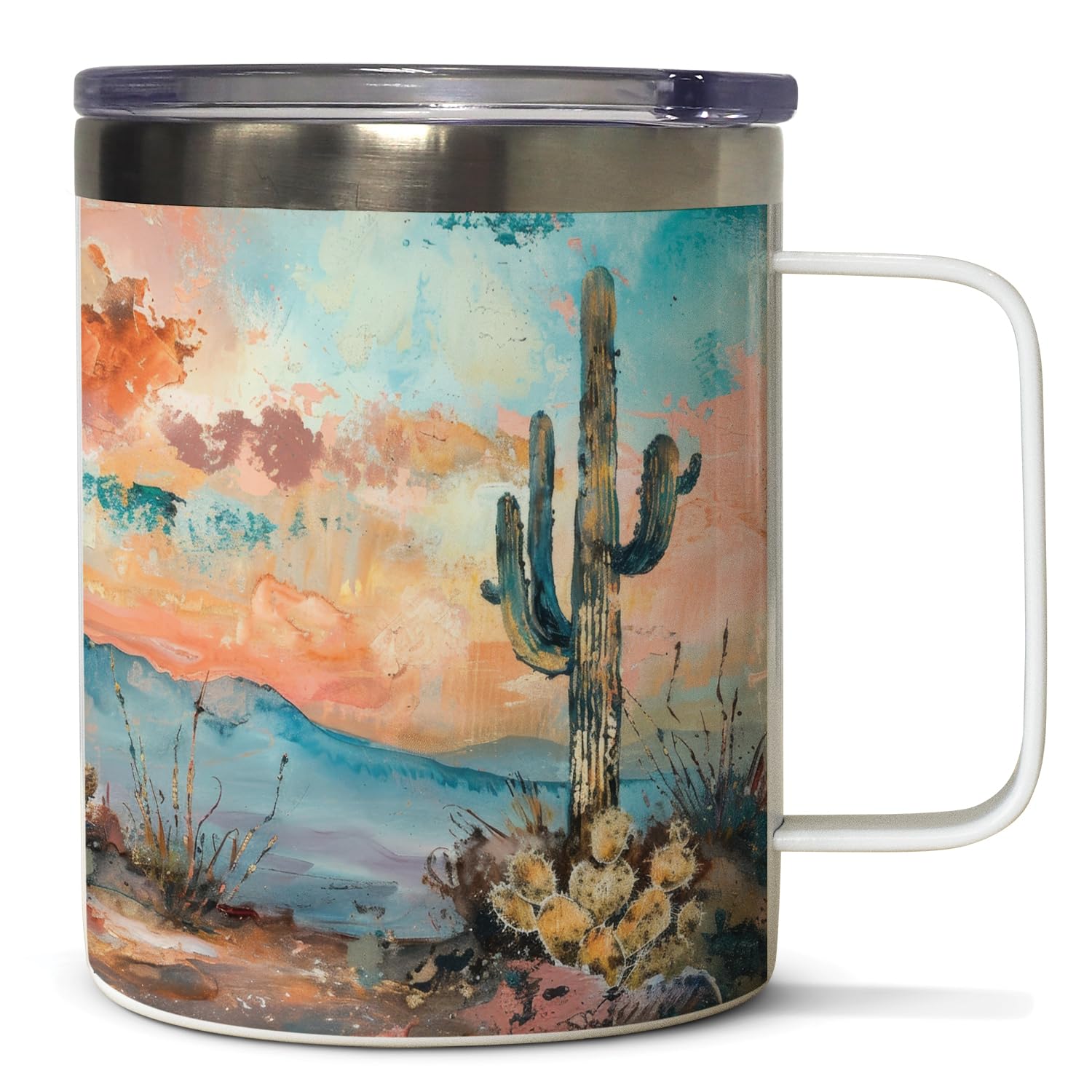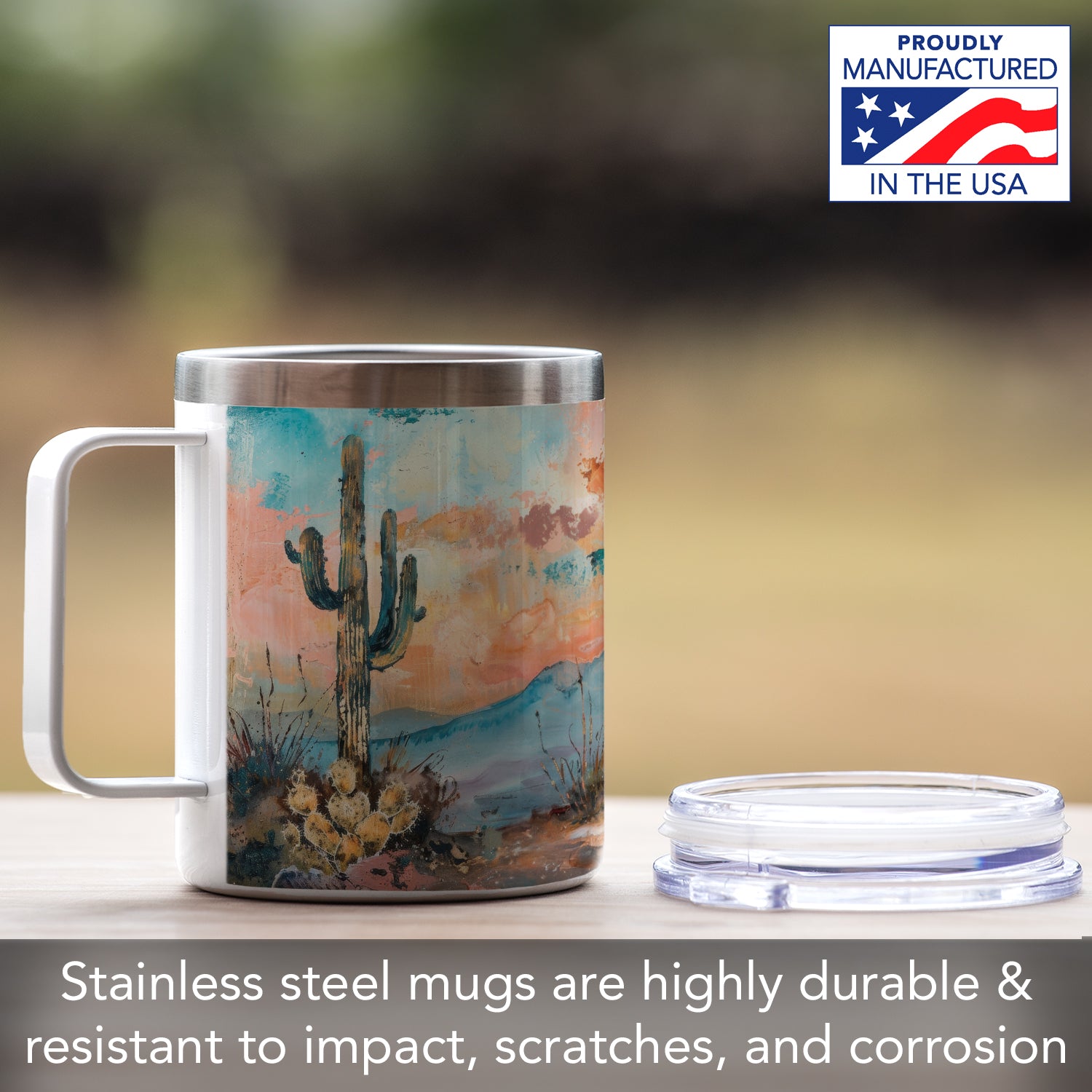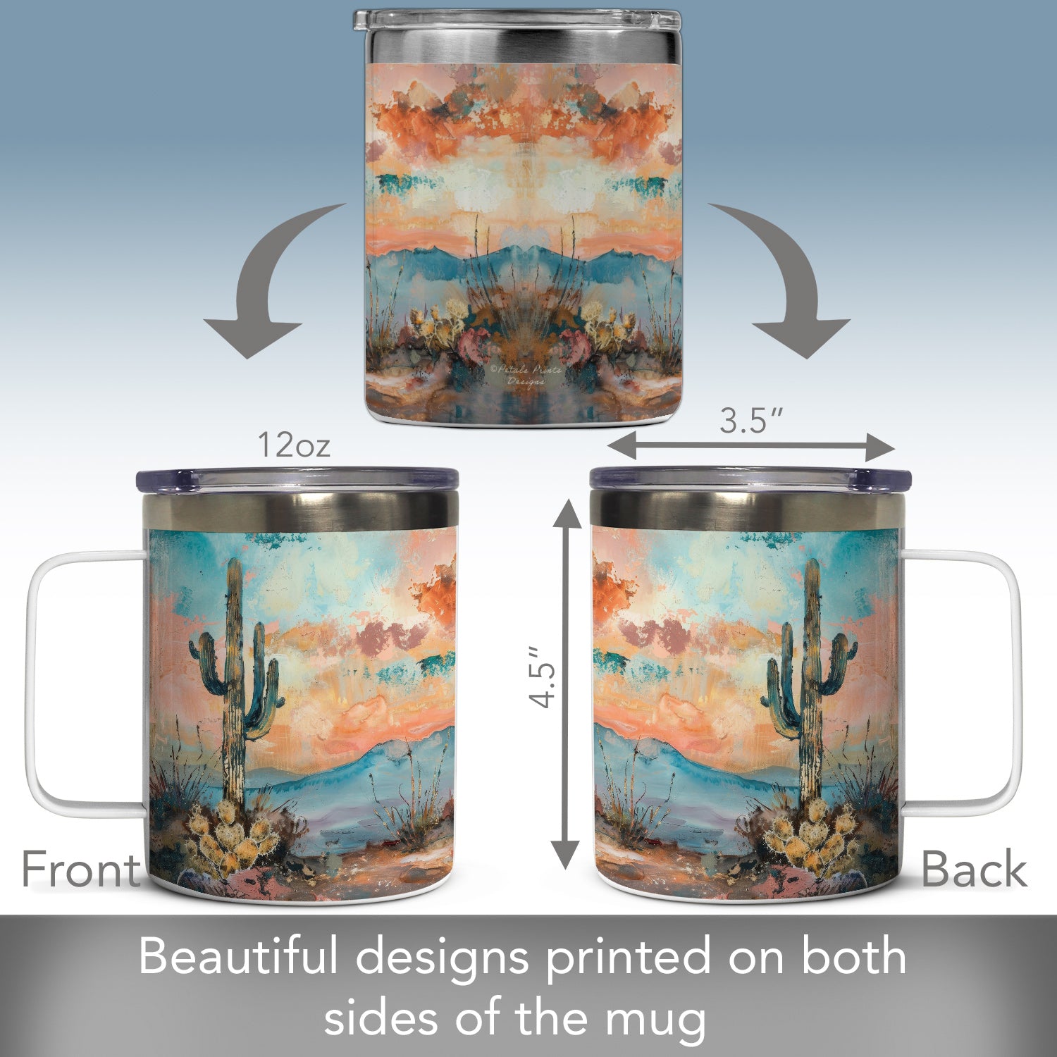 Desert Dream Decorative Stainless Steel Insulated Travel Mug with Lid 12 oz. Manufactured in the USA