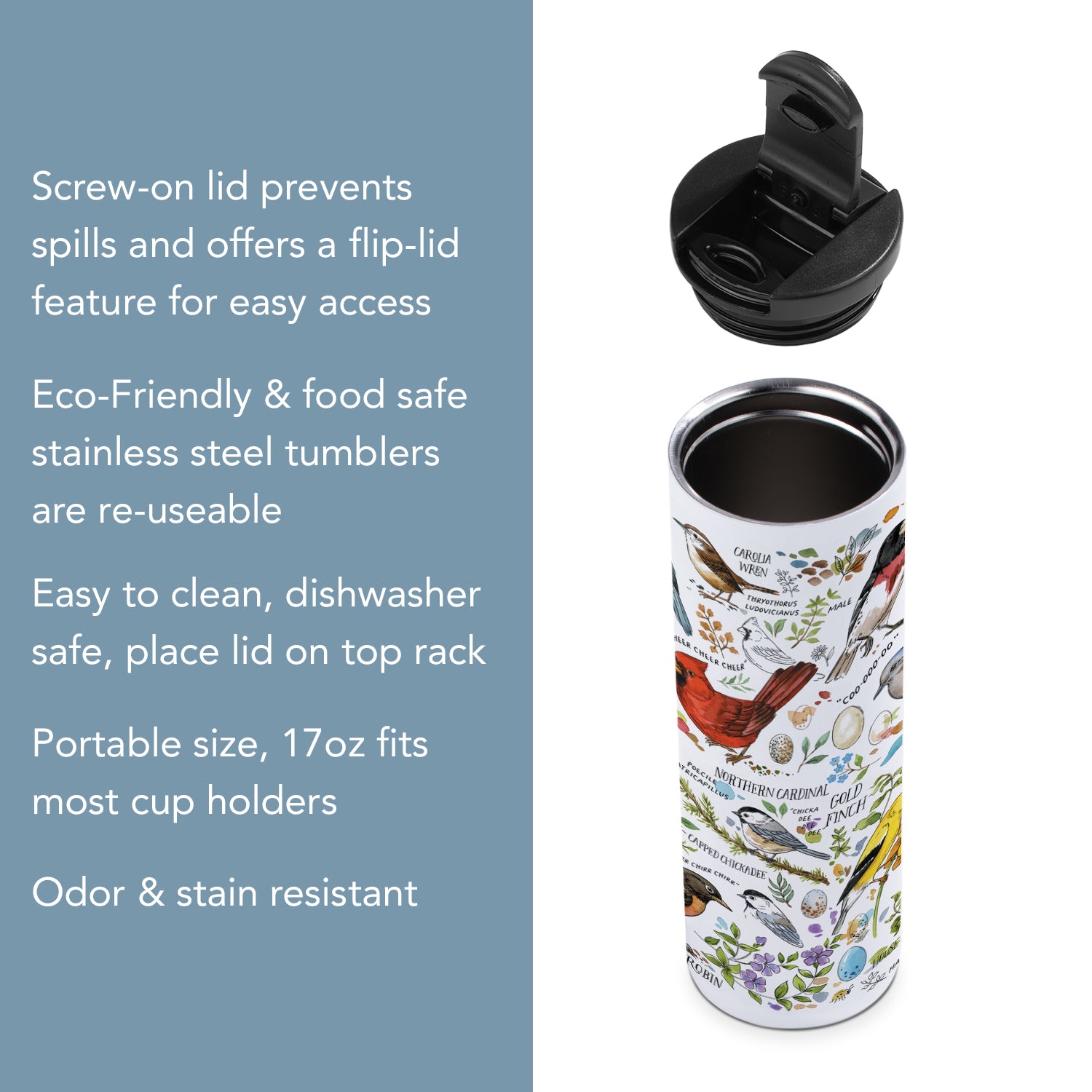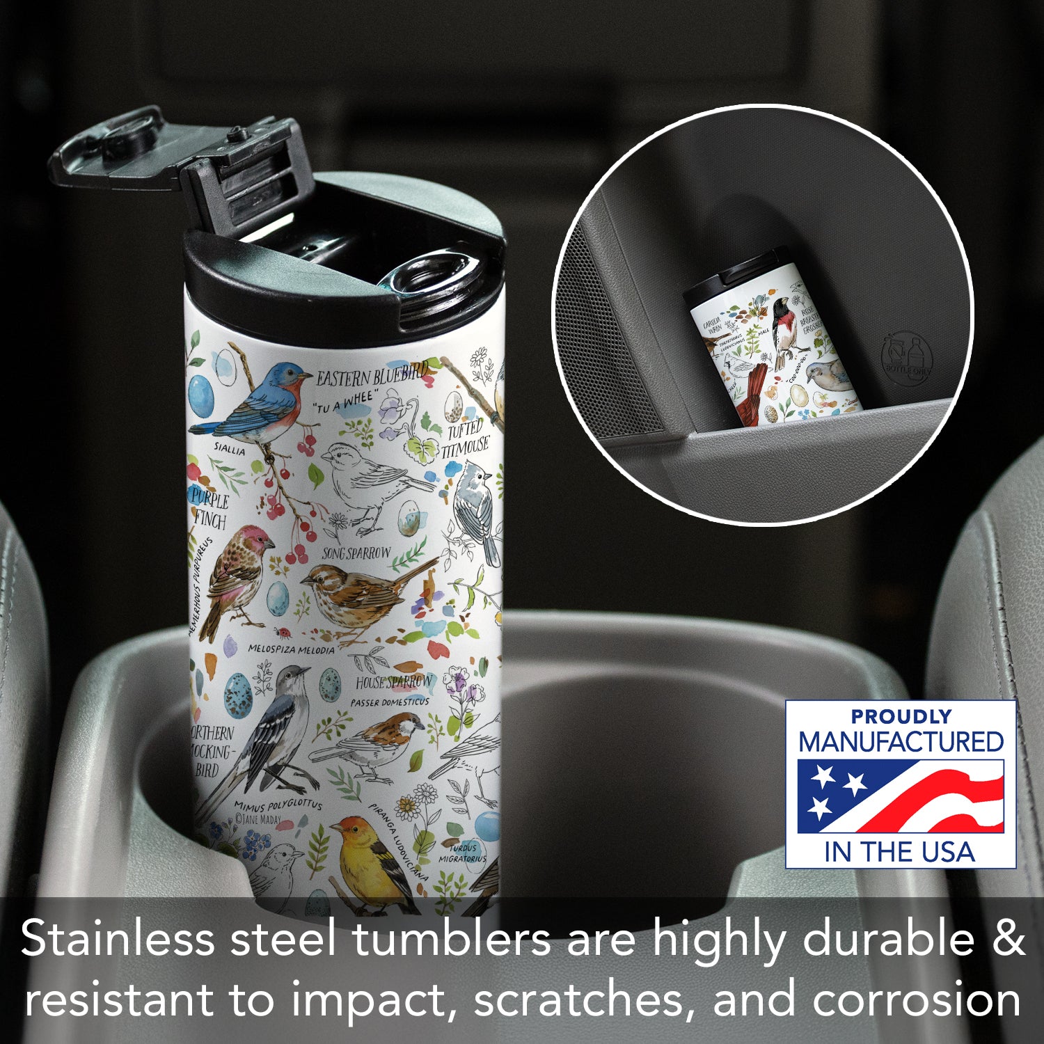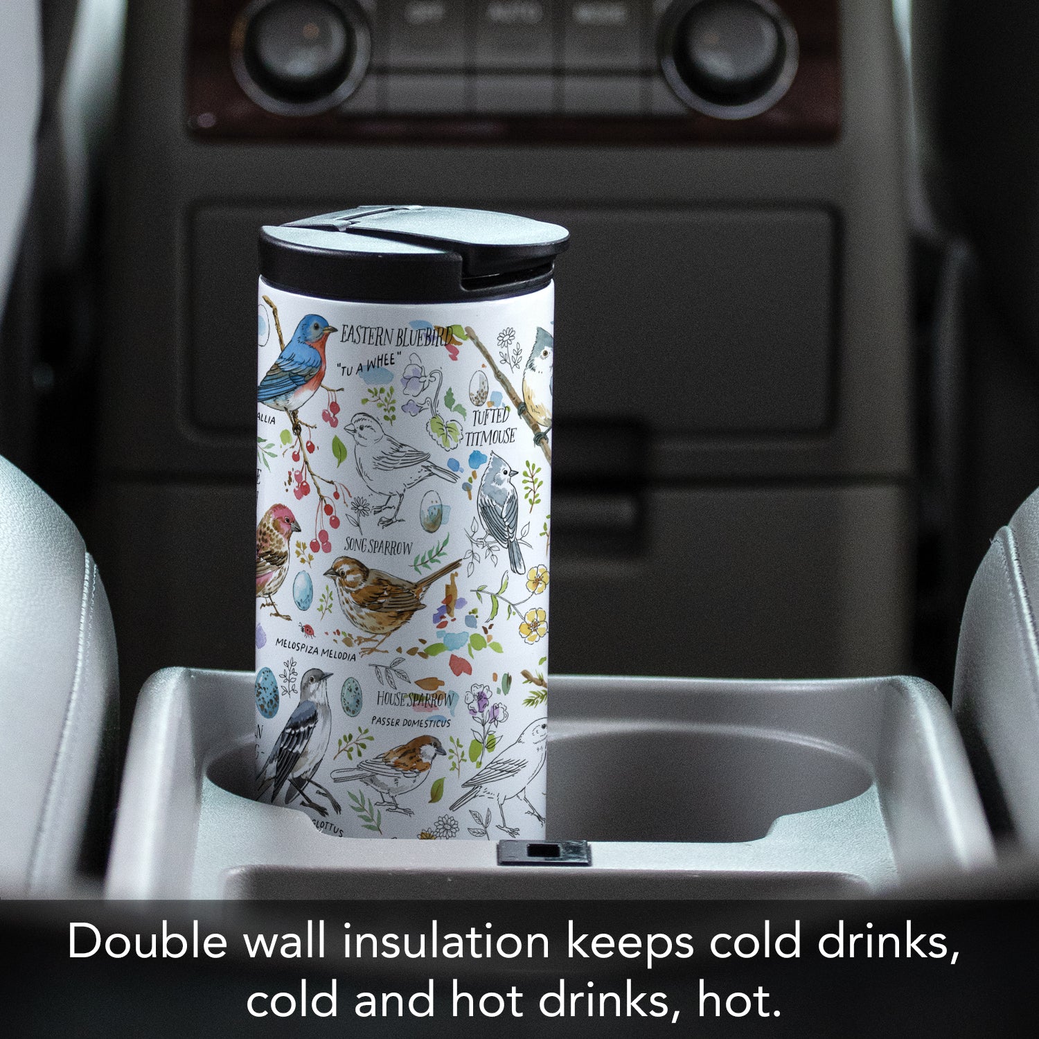 Drawn to Birds Decorative Stainless Steel Double Wall Insulated Travel Tumbler with Lid 17 oz.