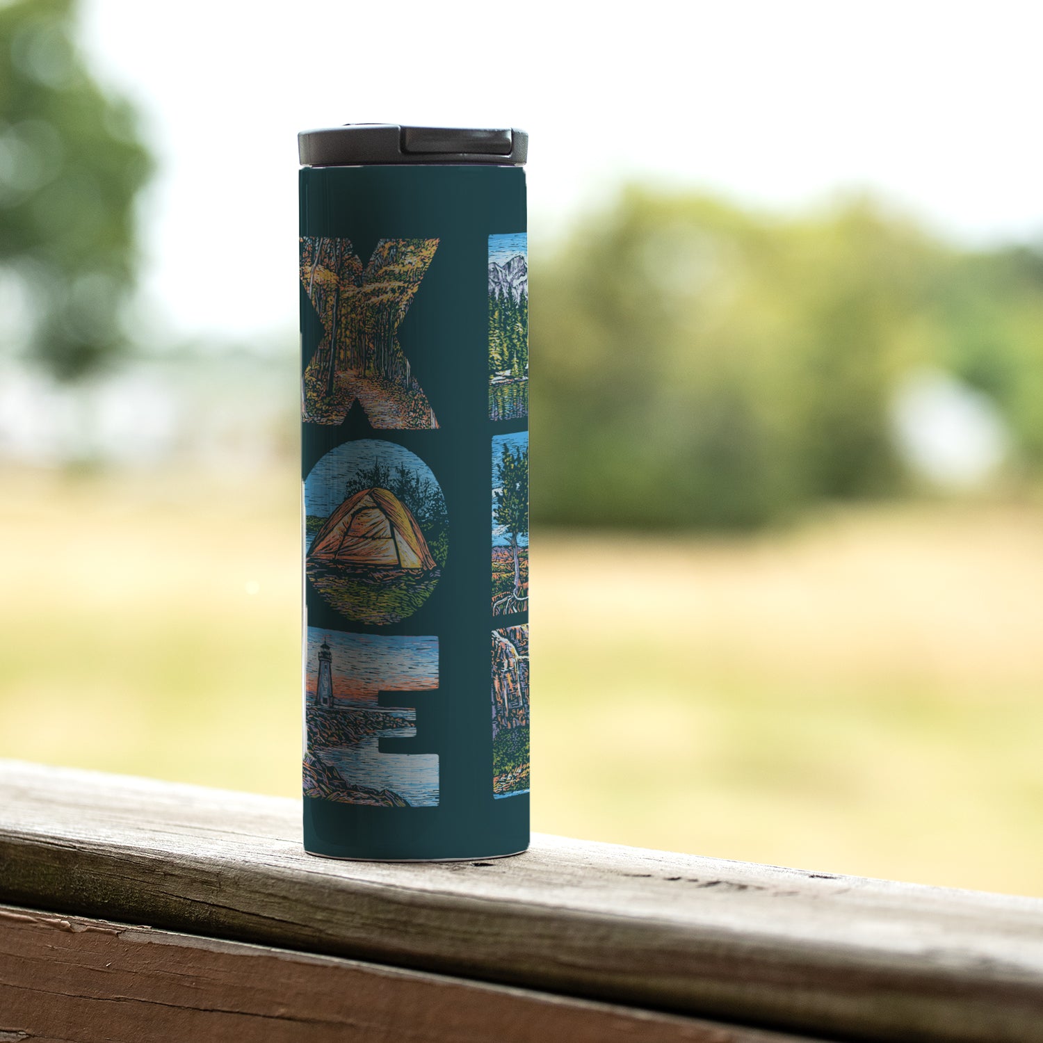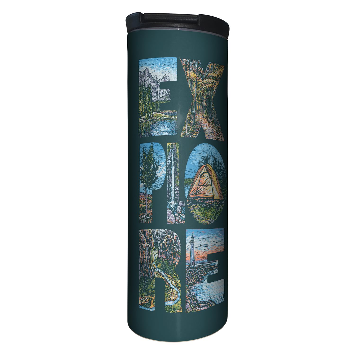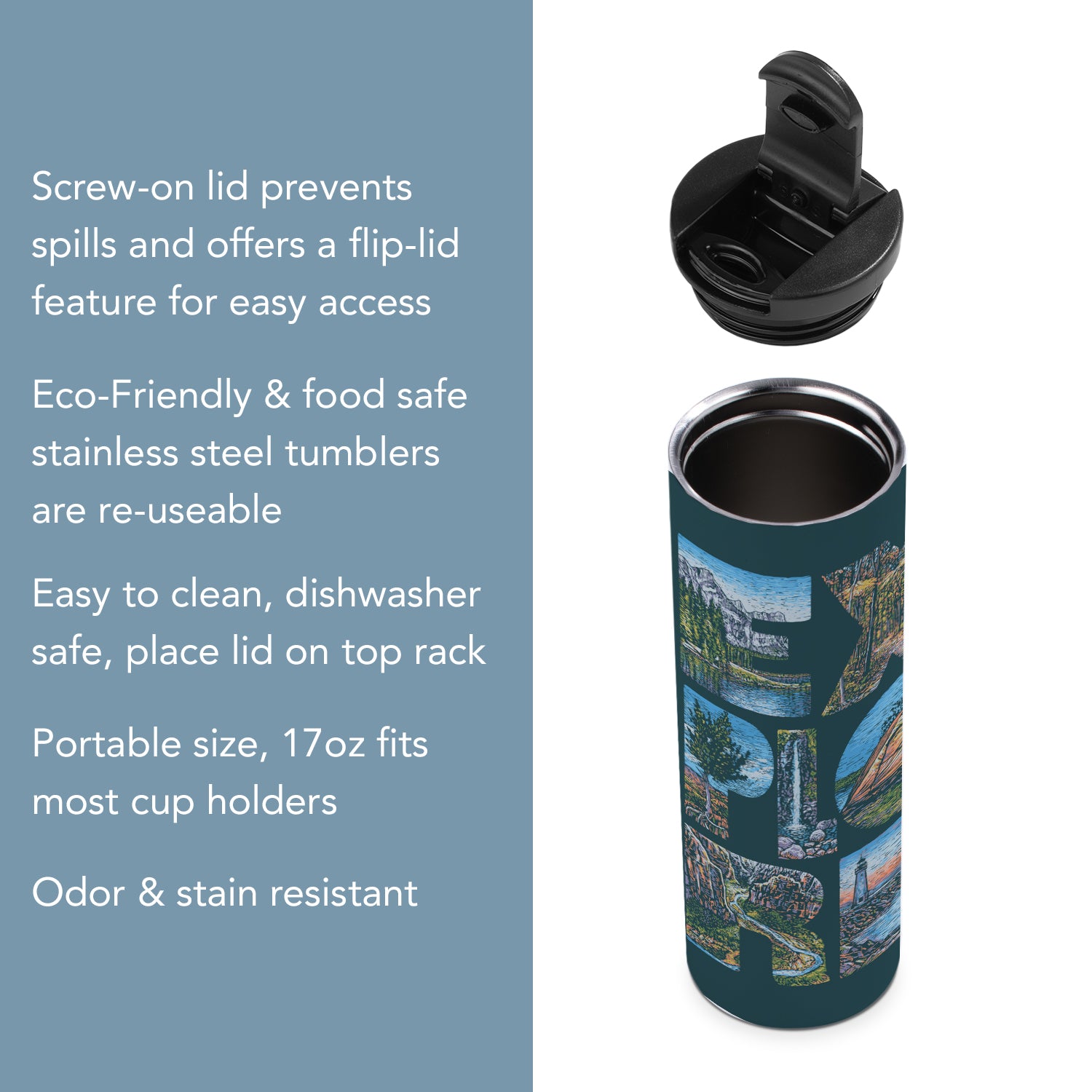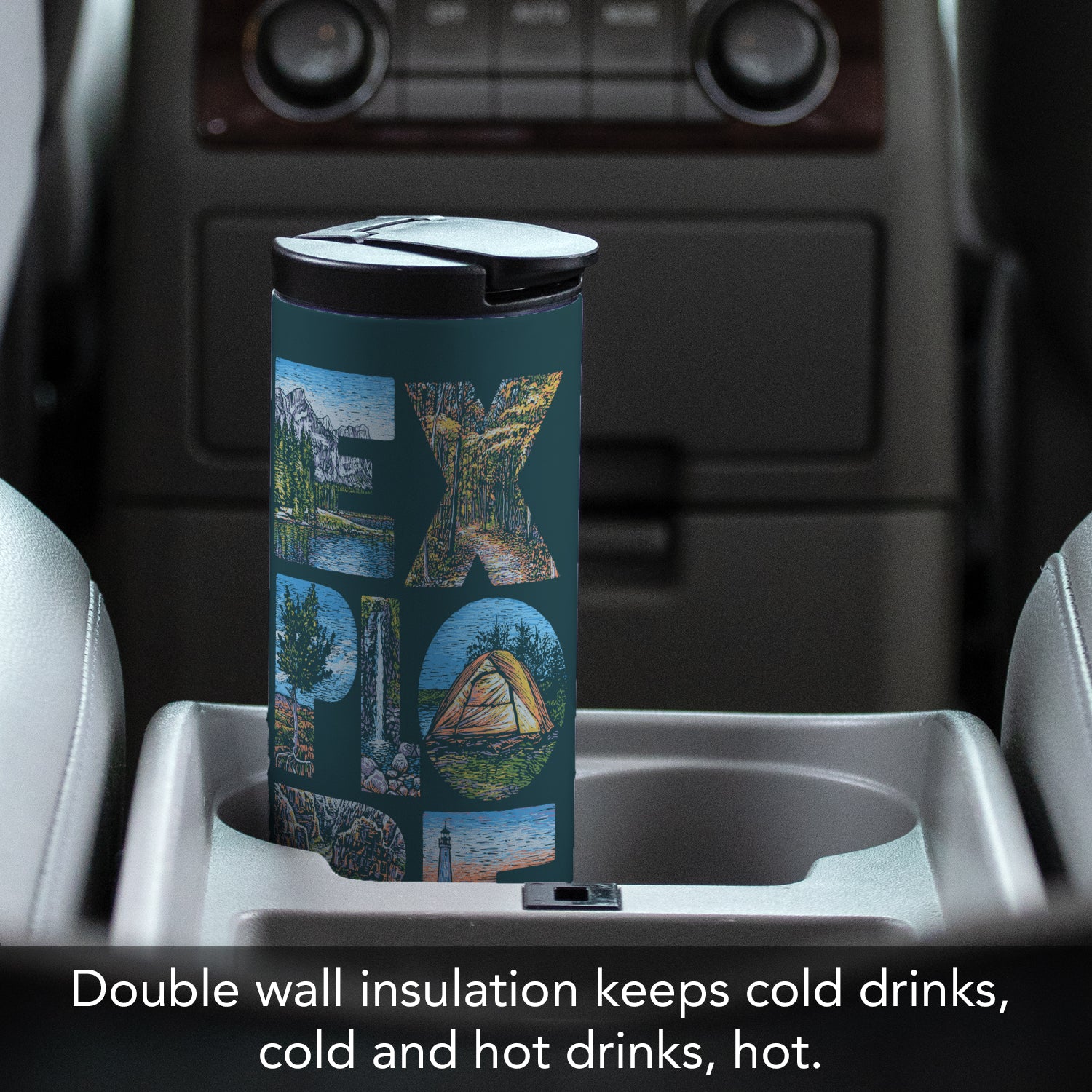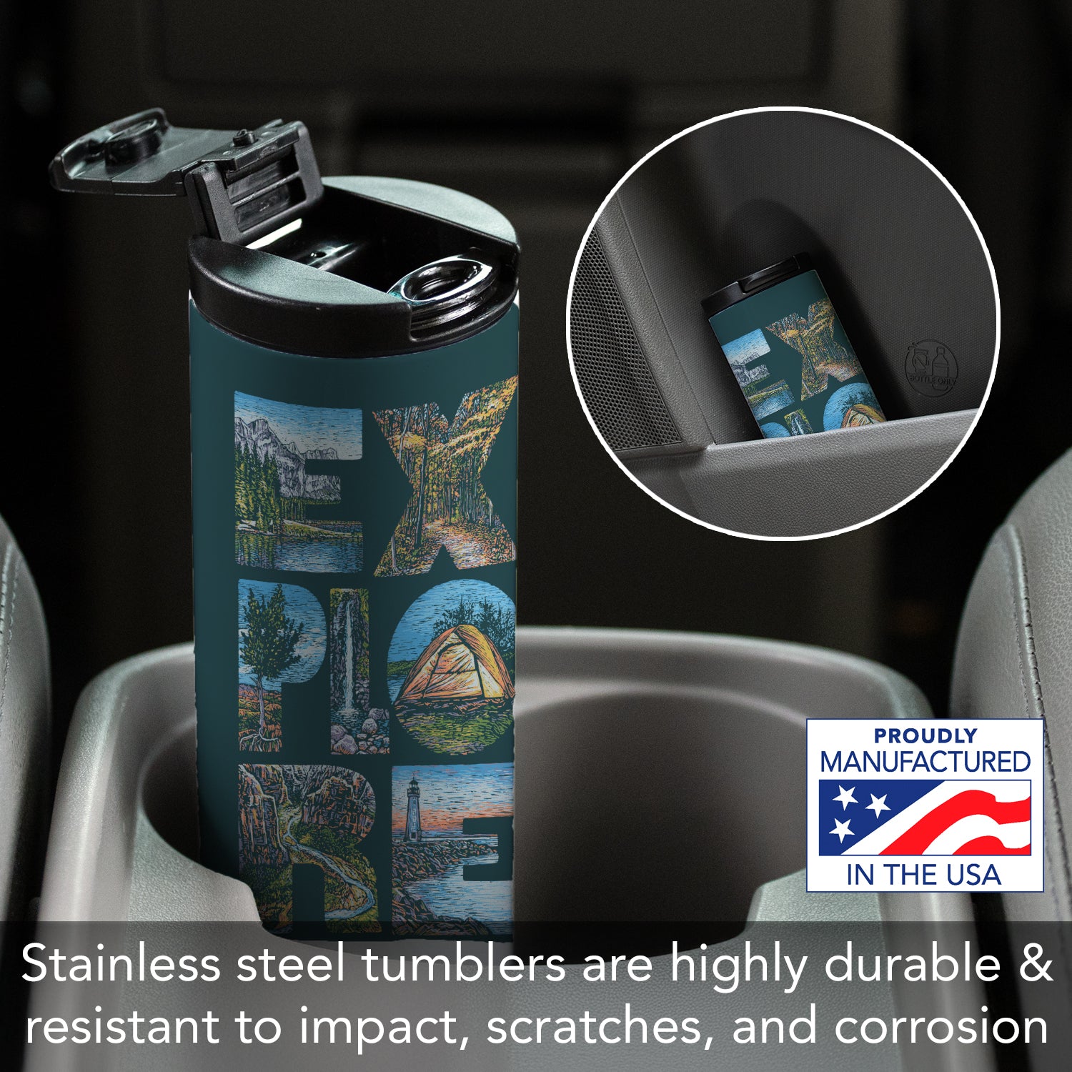 Explore Decorative Stainless Steel Double Wall Insulated Travel Tumbler with Lid 17 oz.
