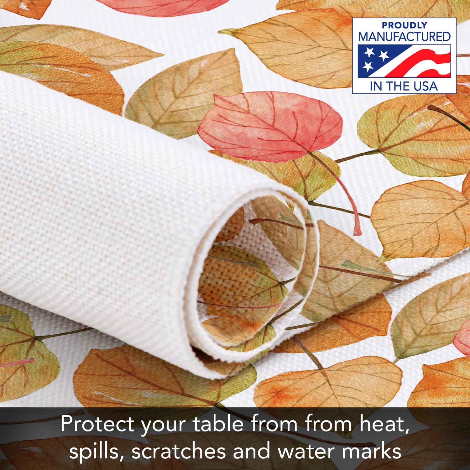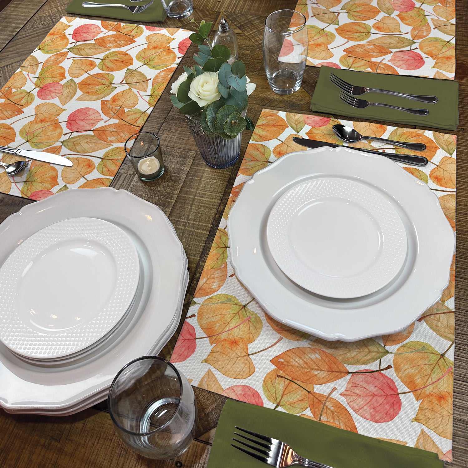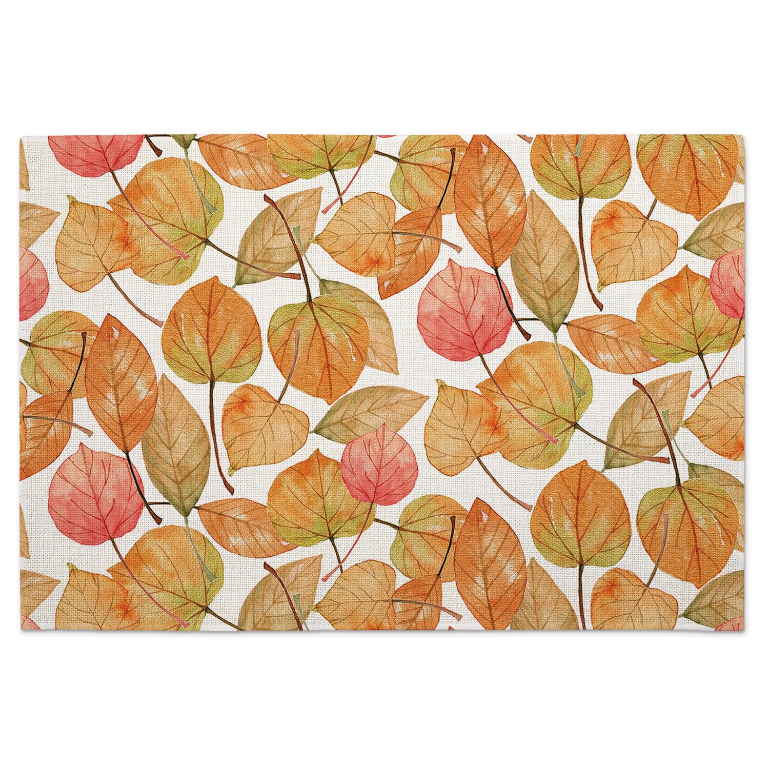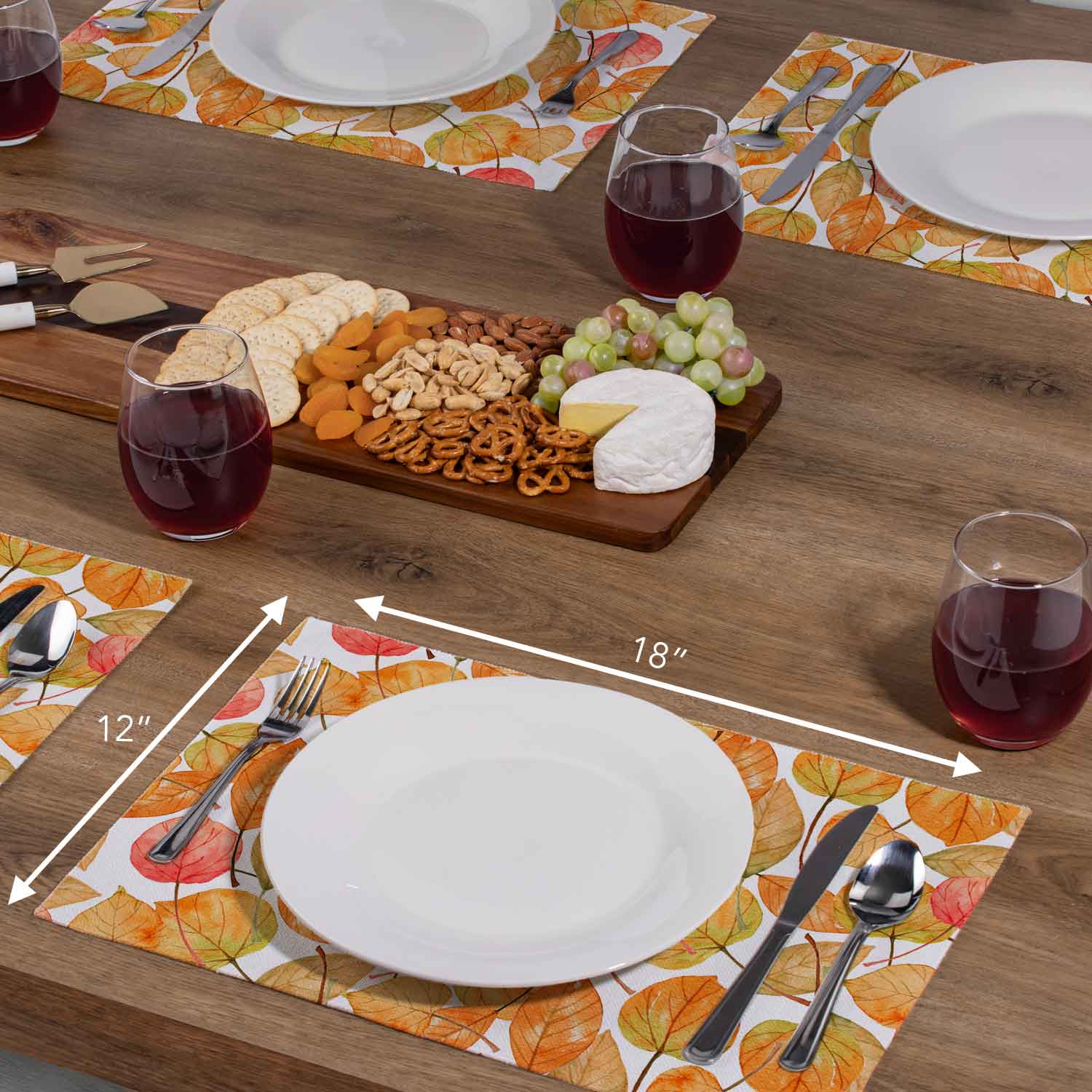 Highland Home Falling Leaves 4 Pack Poly-Cotton Blend Fabric Placemats 18" x 12" Manufactured in The USA