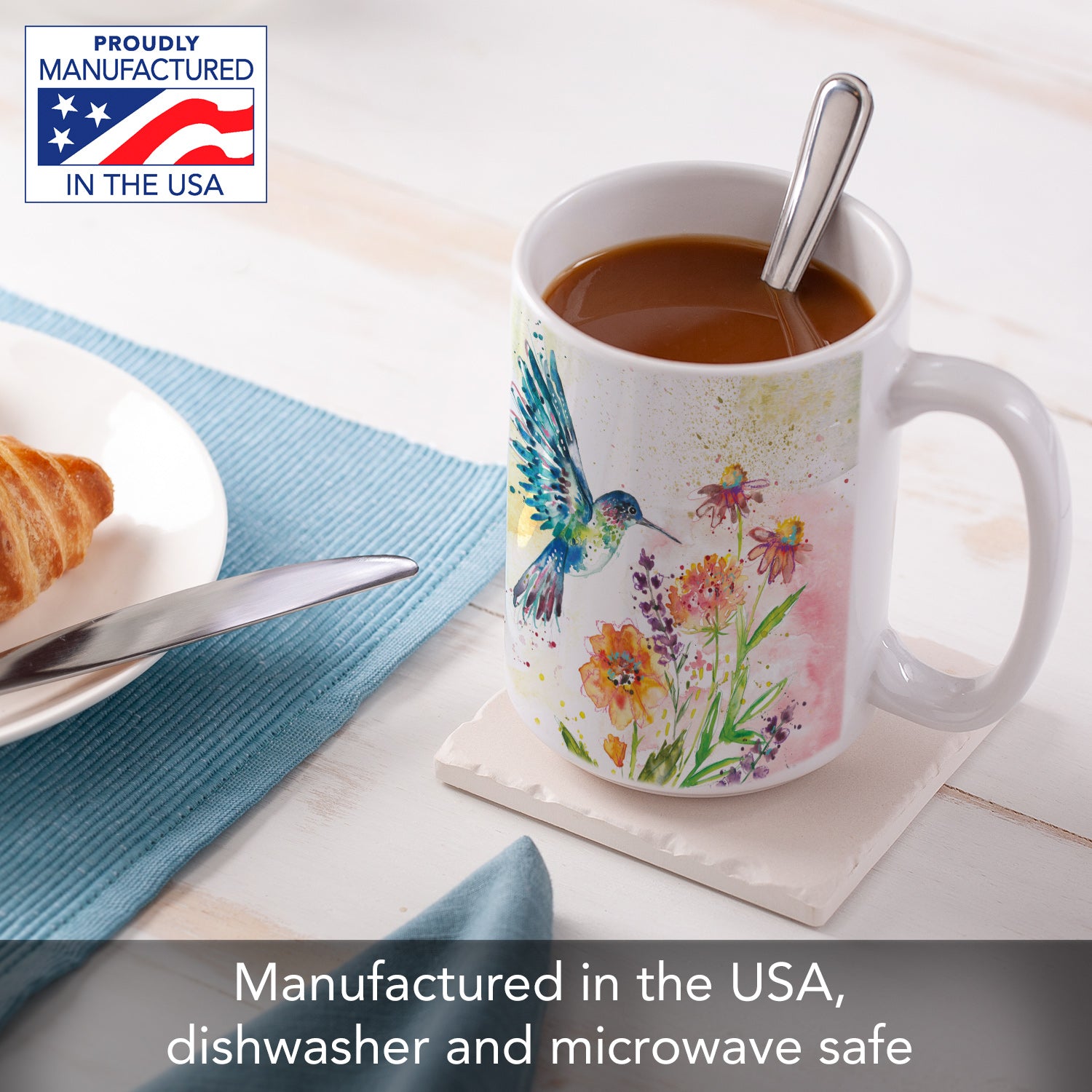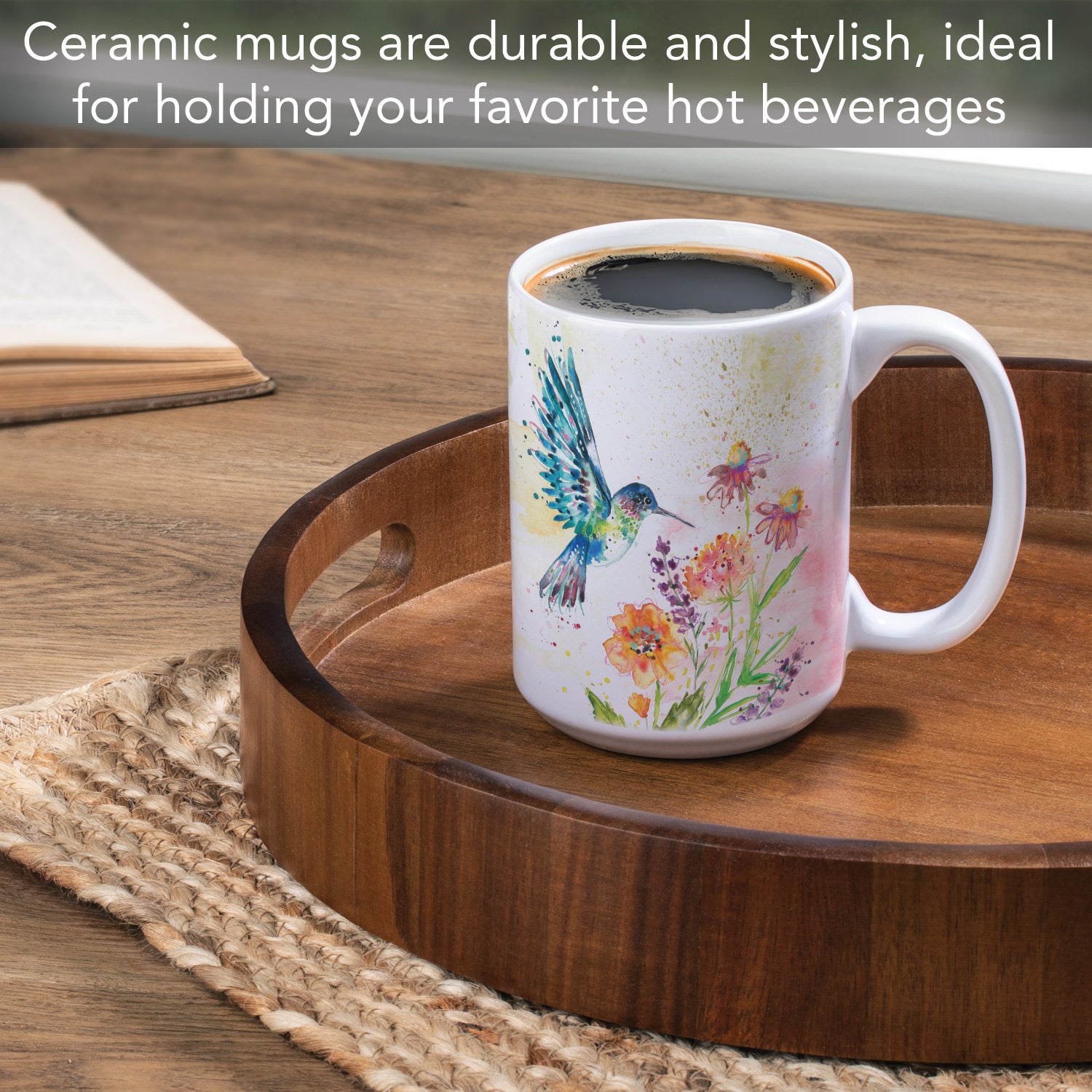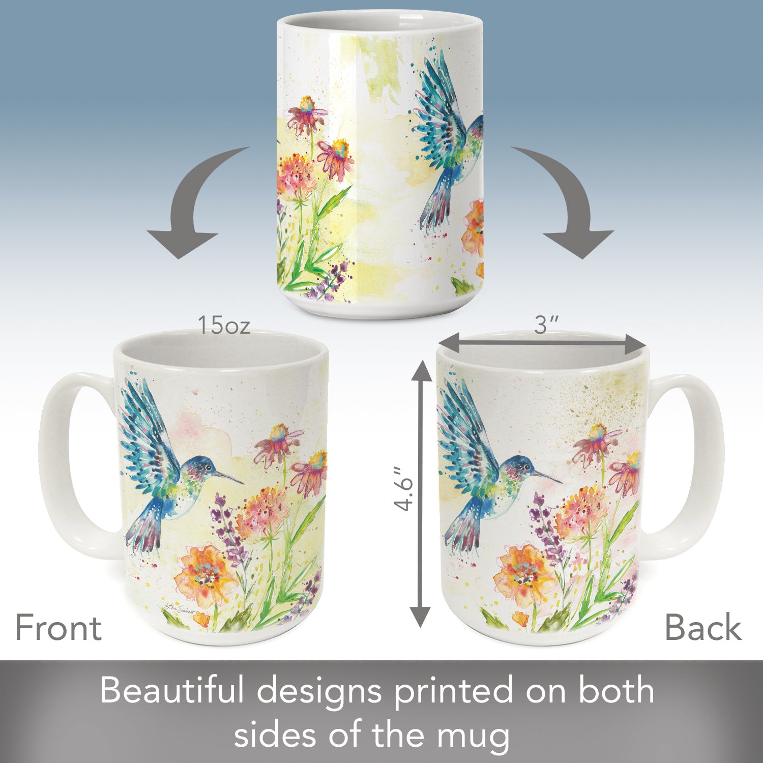 Highland Home Hummingbird Flight Large Decorative Ceramic Mug 15 oz. Manufactured in the USA