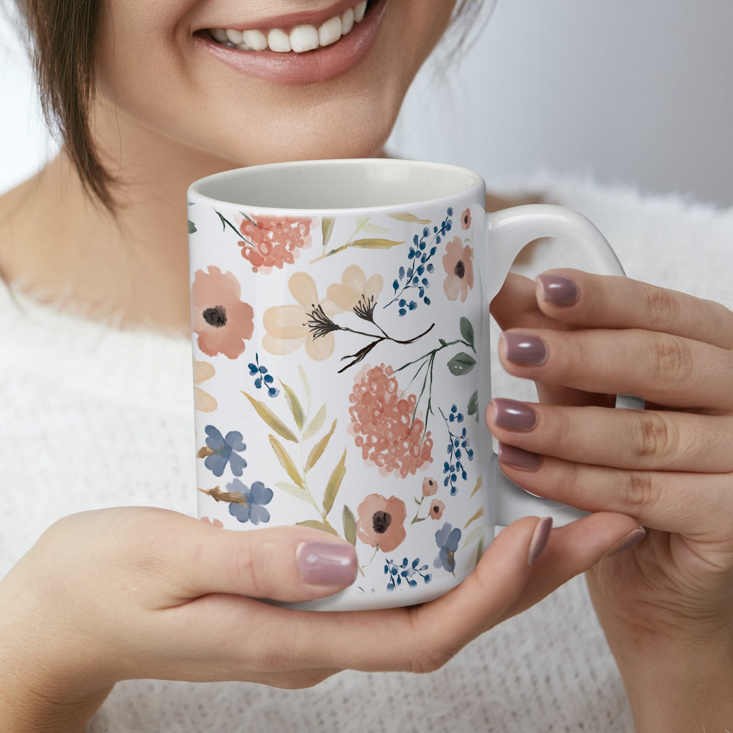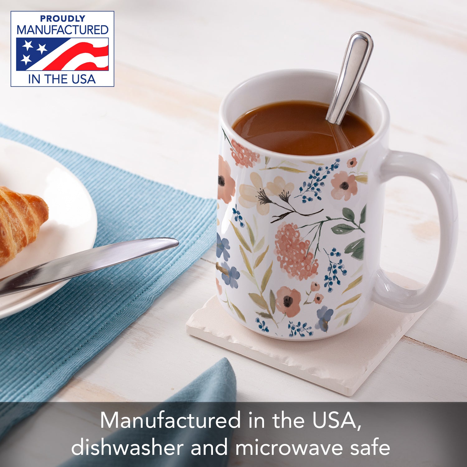 Highland Home Meadow Large Decorative Ceramic Mug 15 oz. Manufactured in the USA