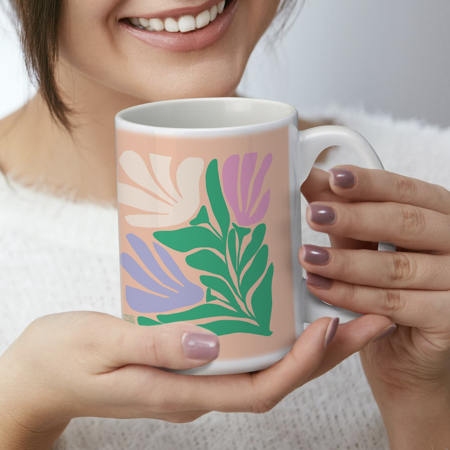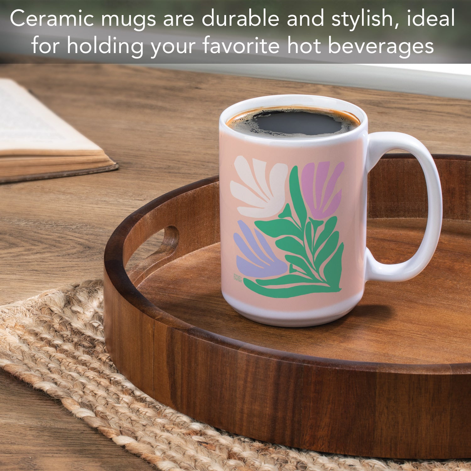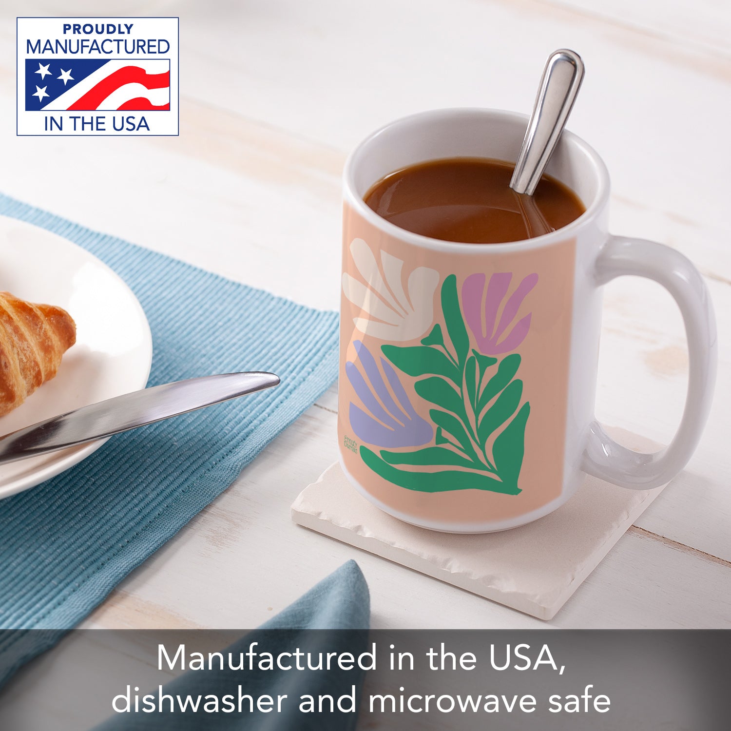 Highland Home Funky Flowers 15 oz. Ceramic Mug Manufactured in the USA