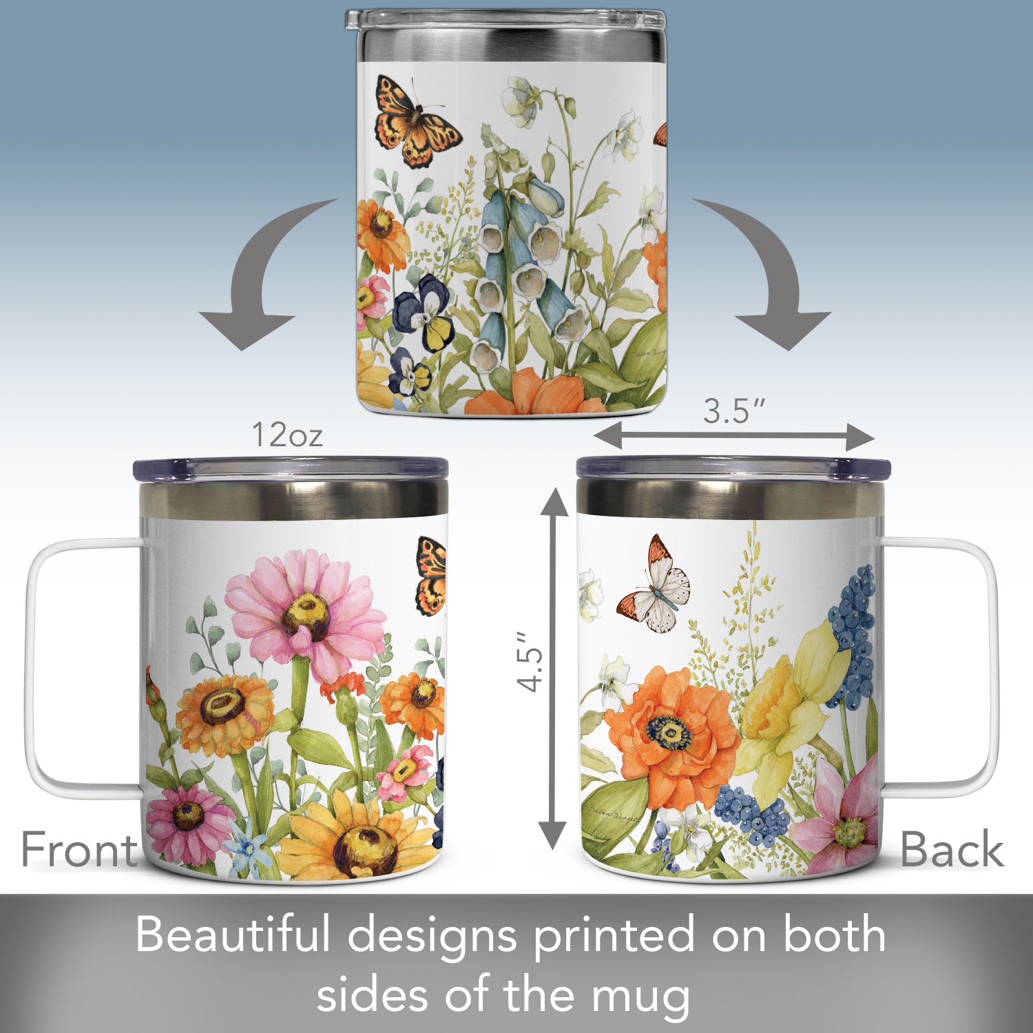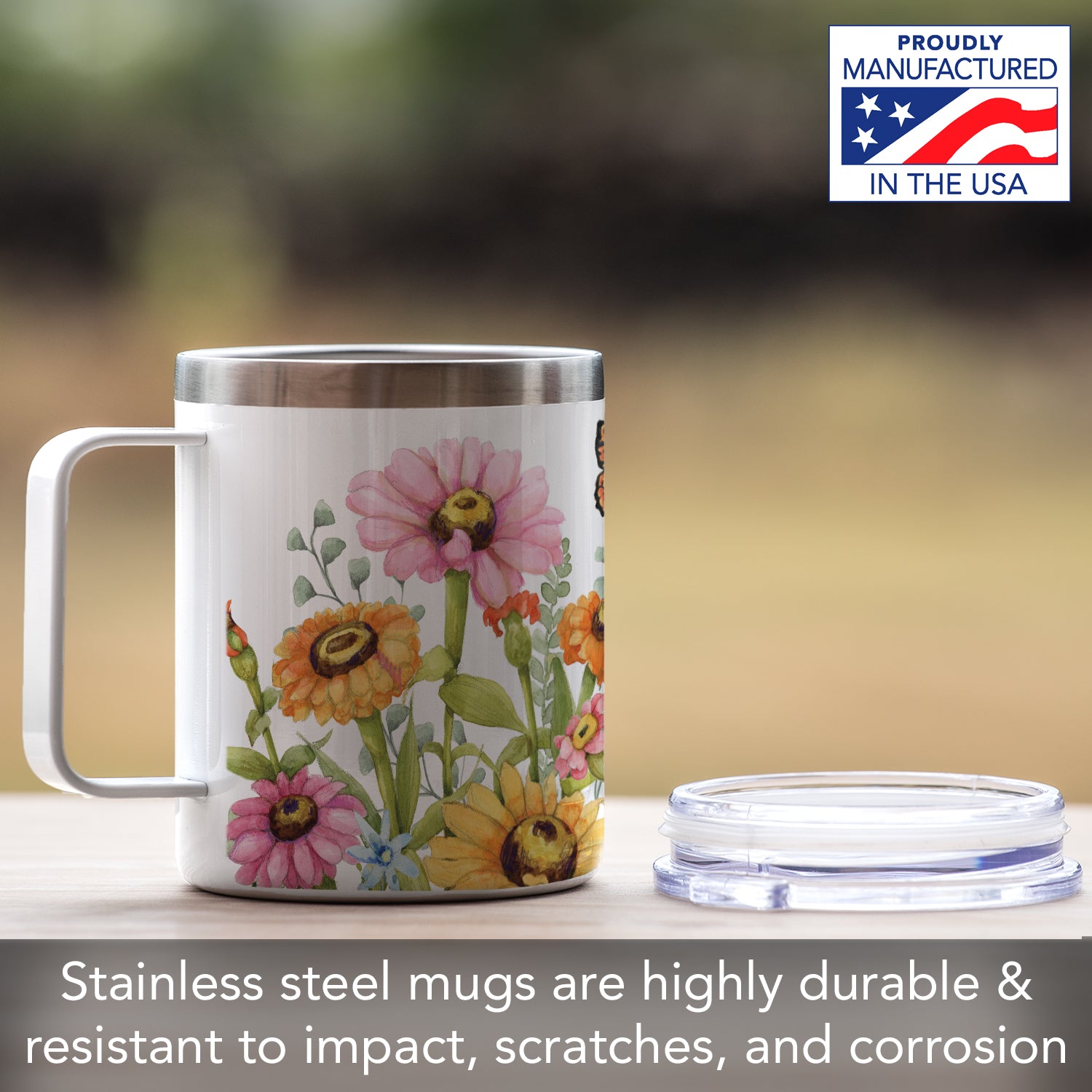 Garden Walk Stainless Steel Travel Mug with Lid 12 oz. Manufactured in the USA