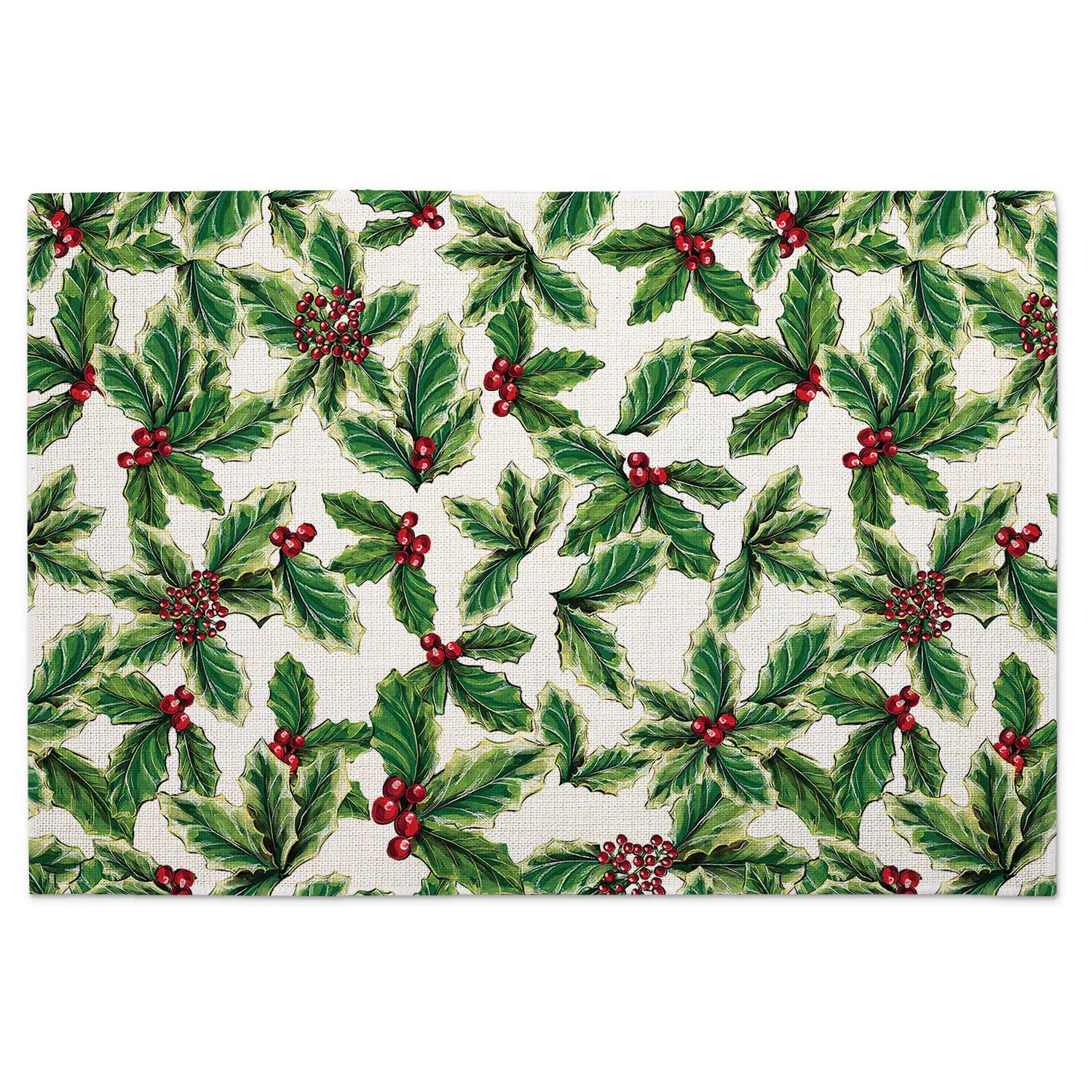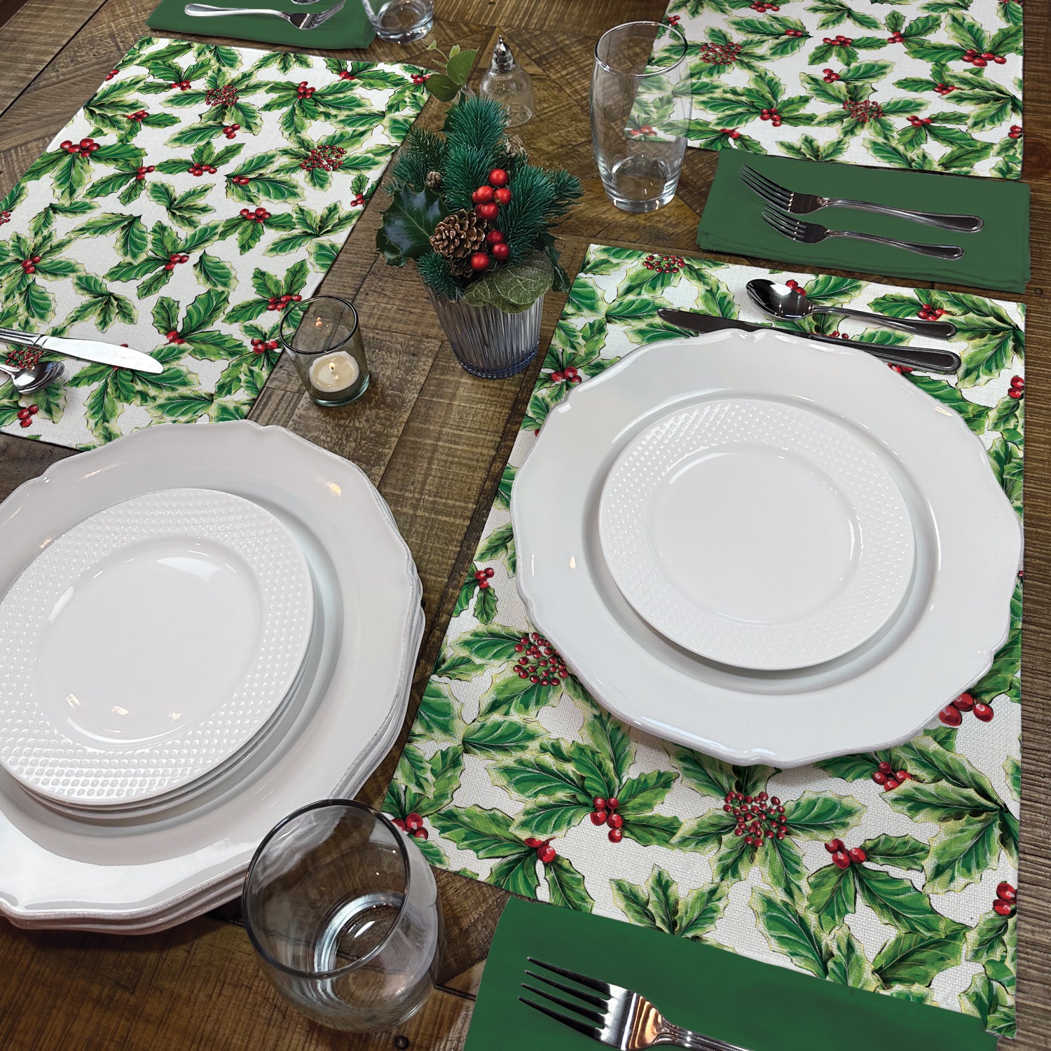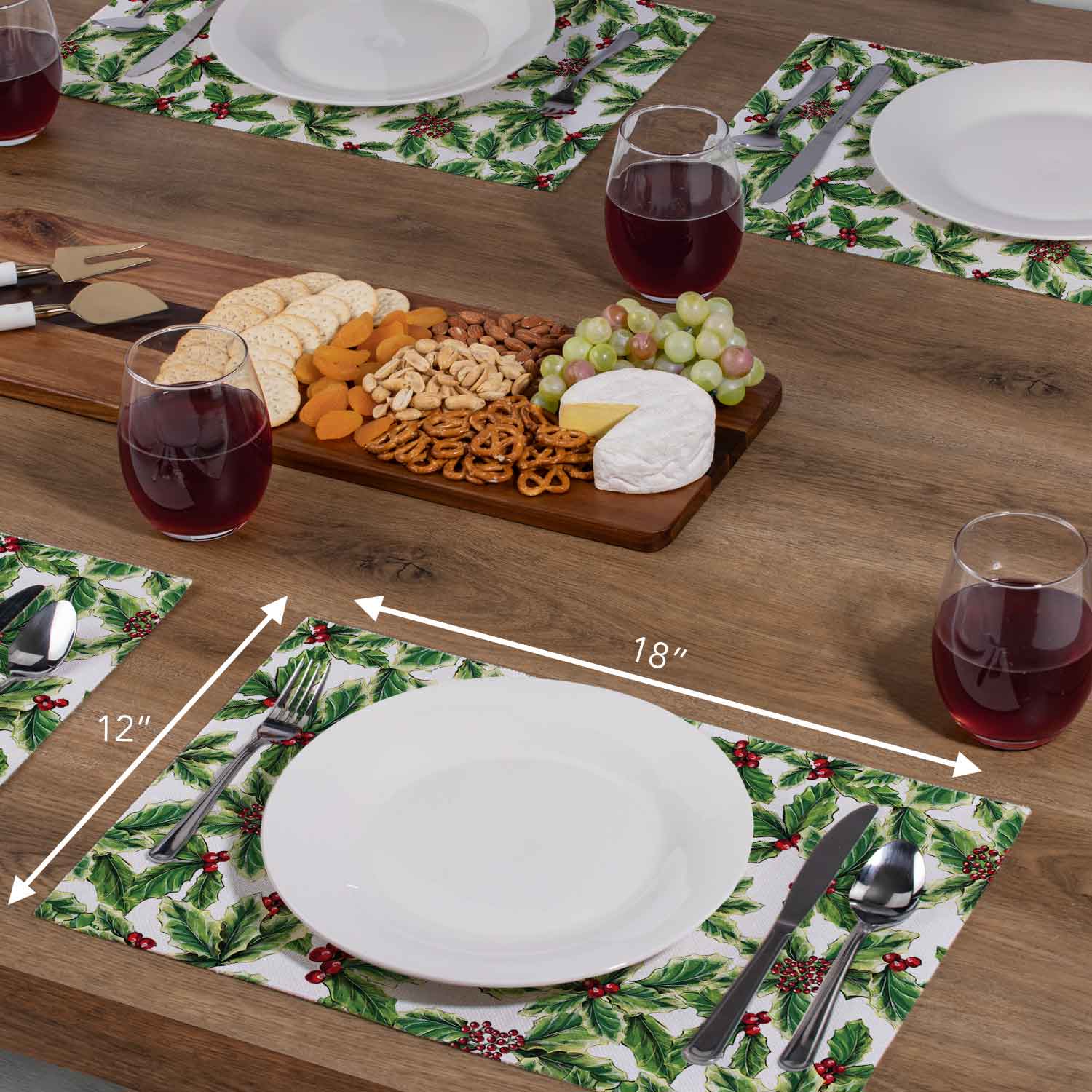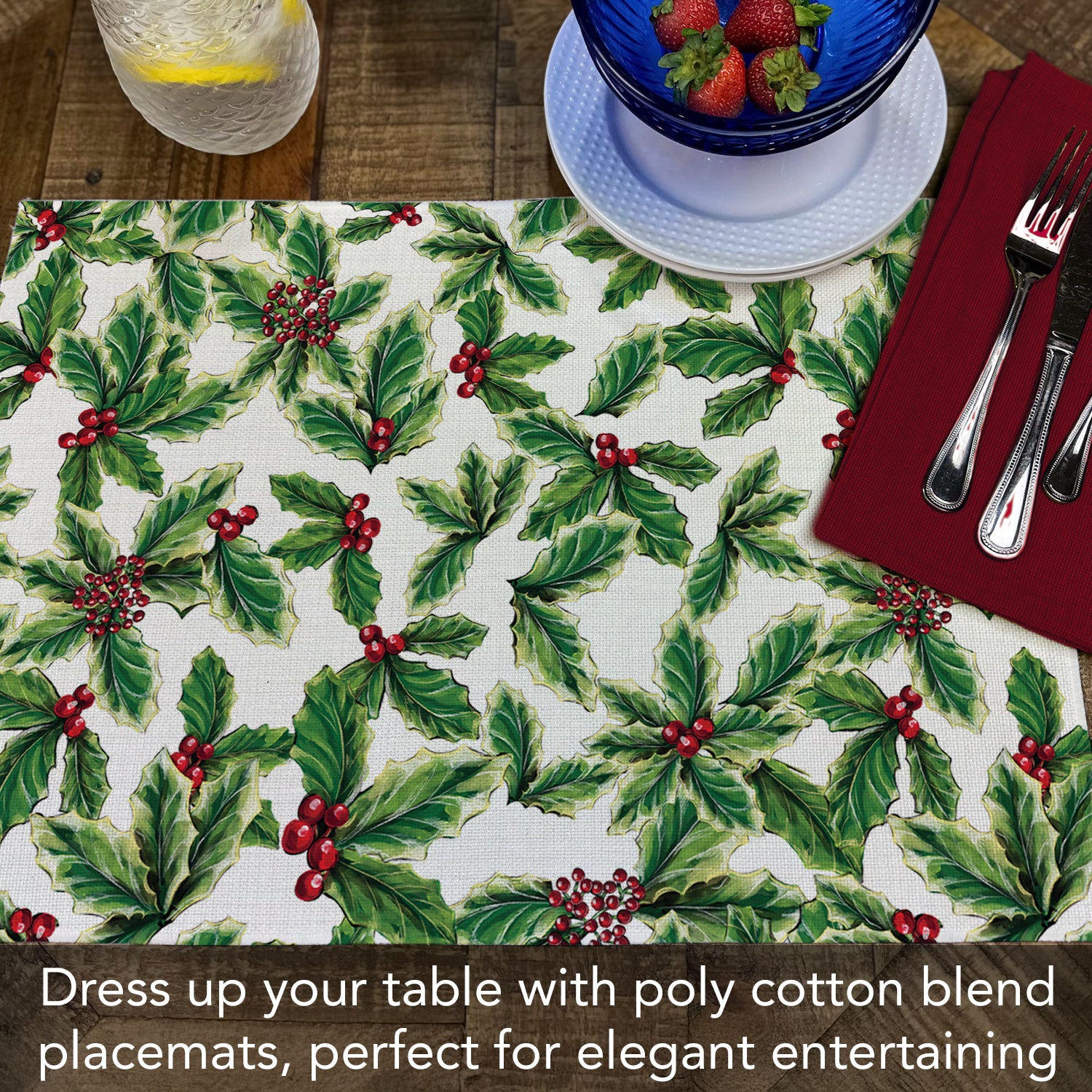 Highland Home Grand Christmas 4 Pack Poly-Cotton Blend Fabric Placemats 18" x 12" Manufactured in The USA