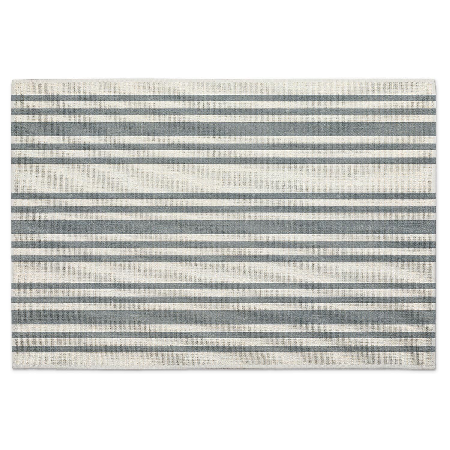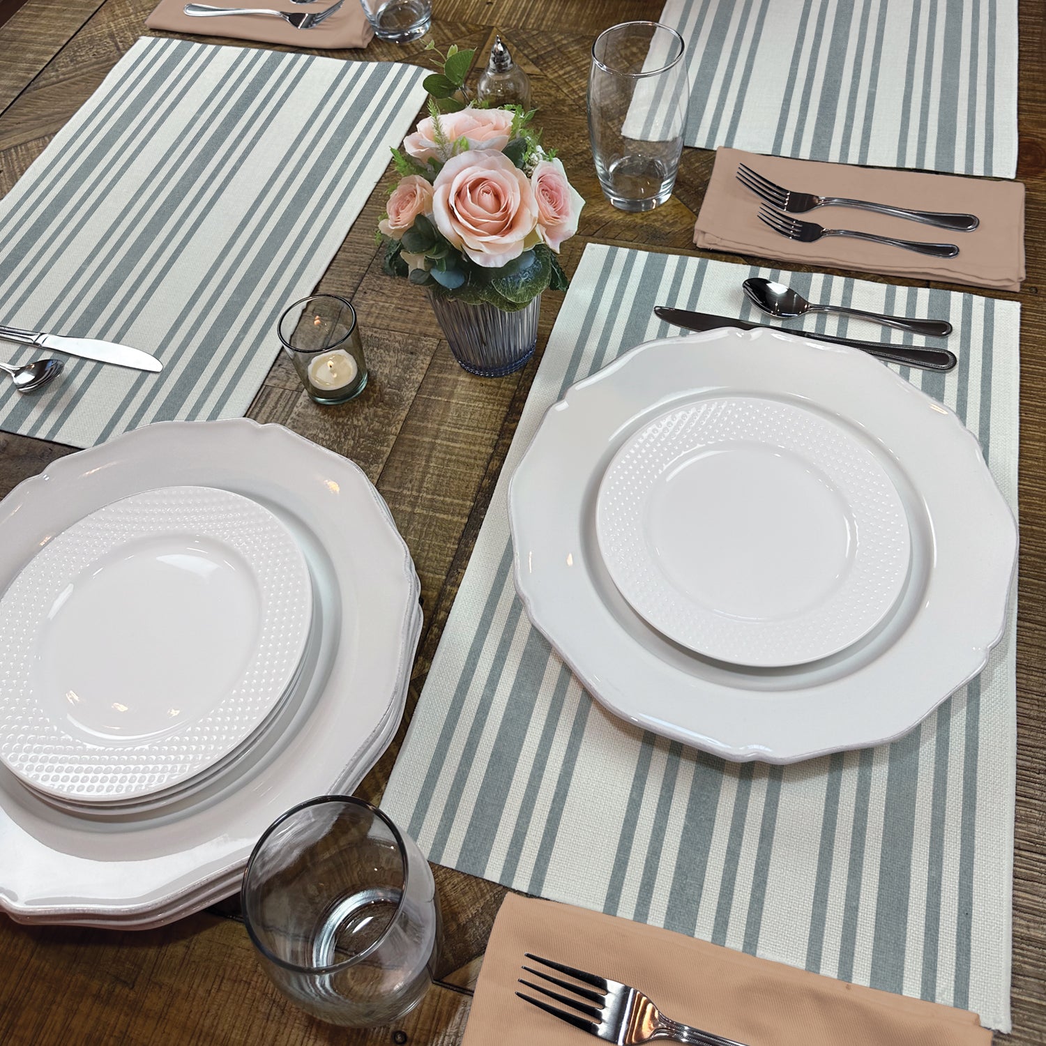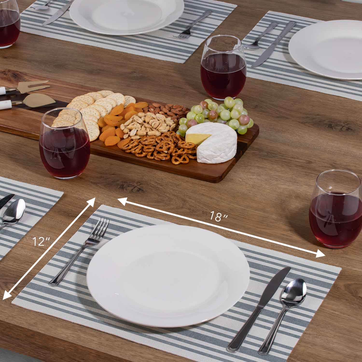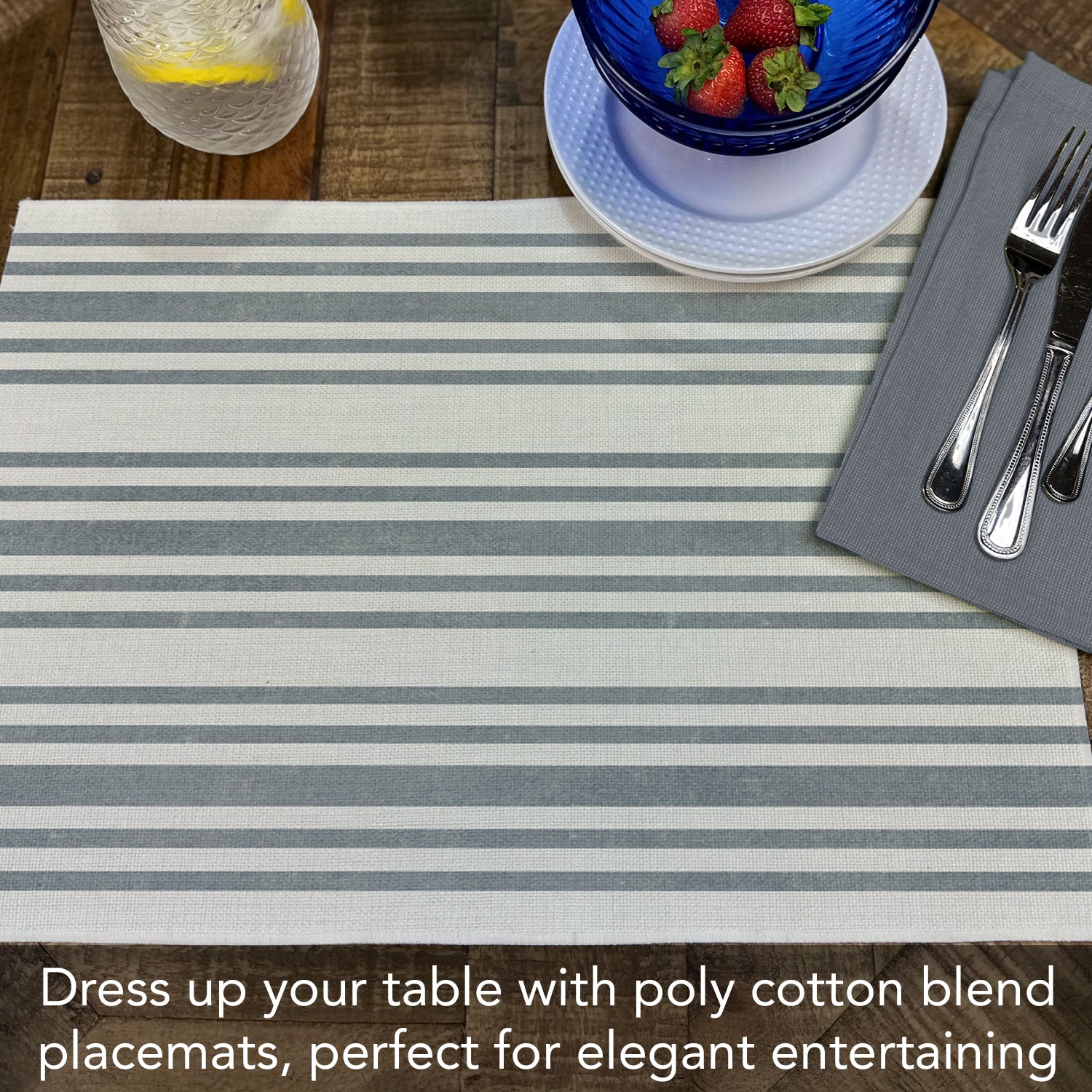 Highland Home Farmhouse Stripe 4 Pack Poly-Cotton Blend Fabric Placemats 18" x 12" Manufactured in The USA