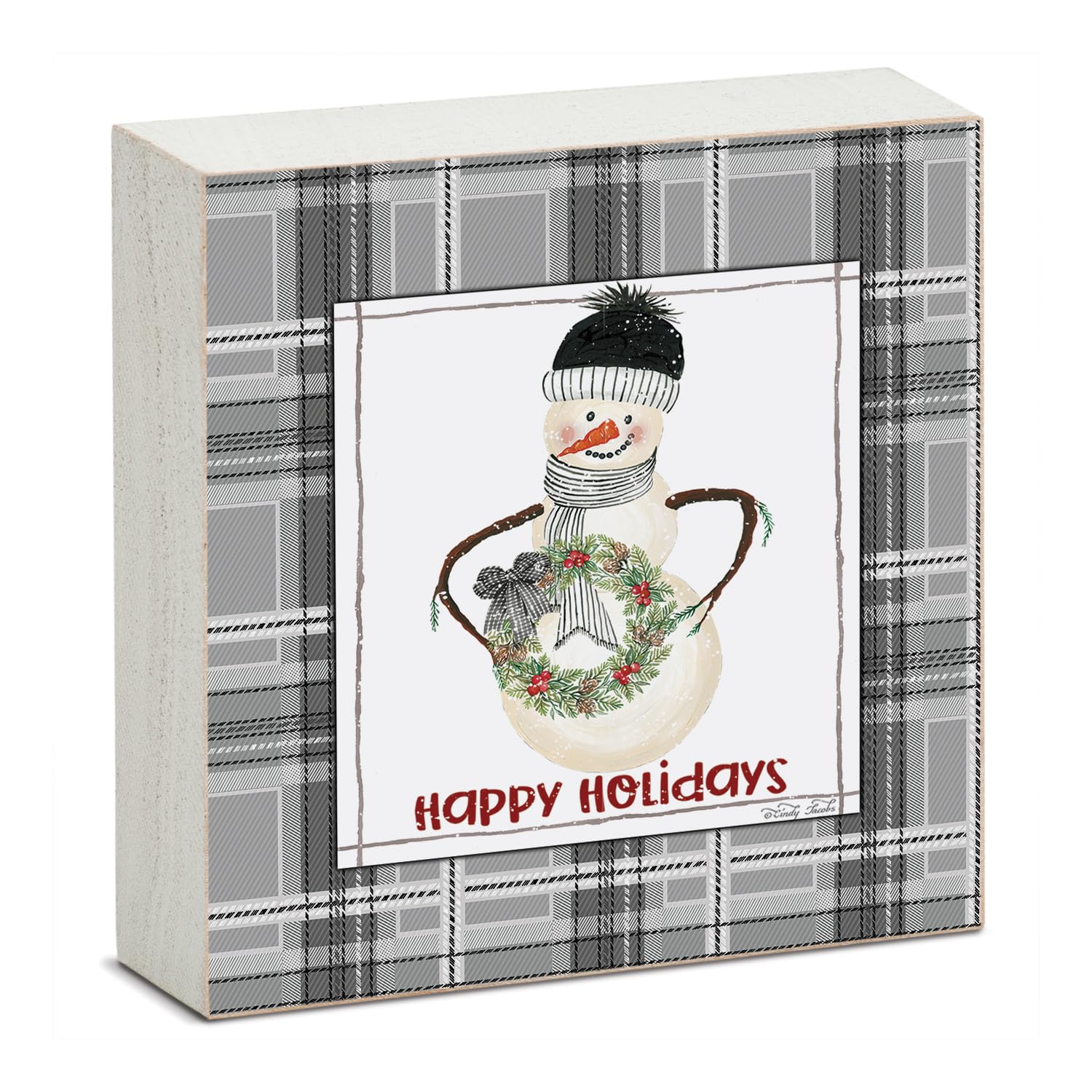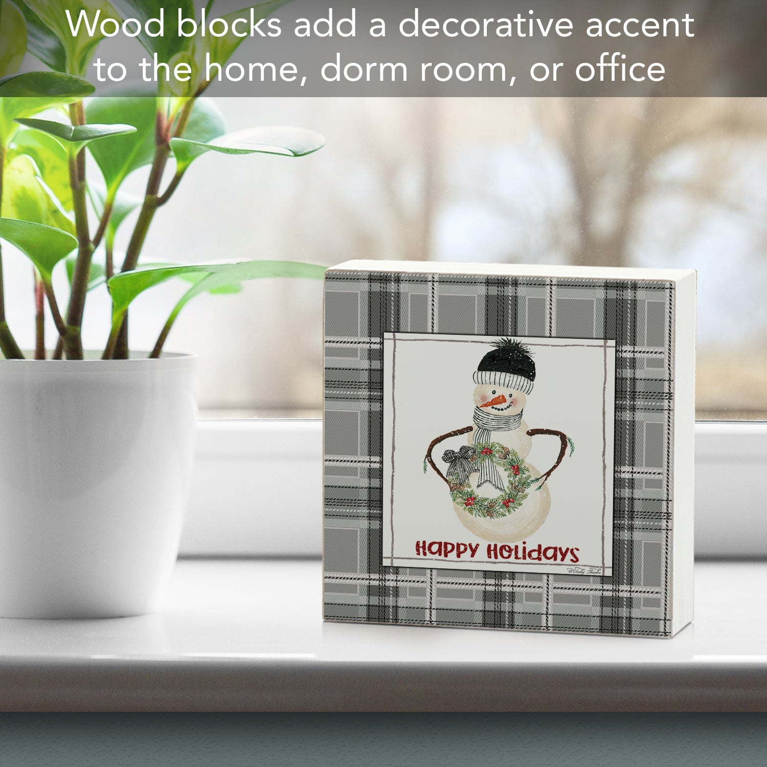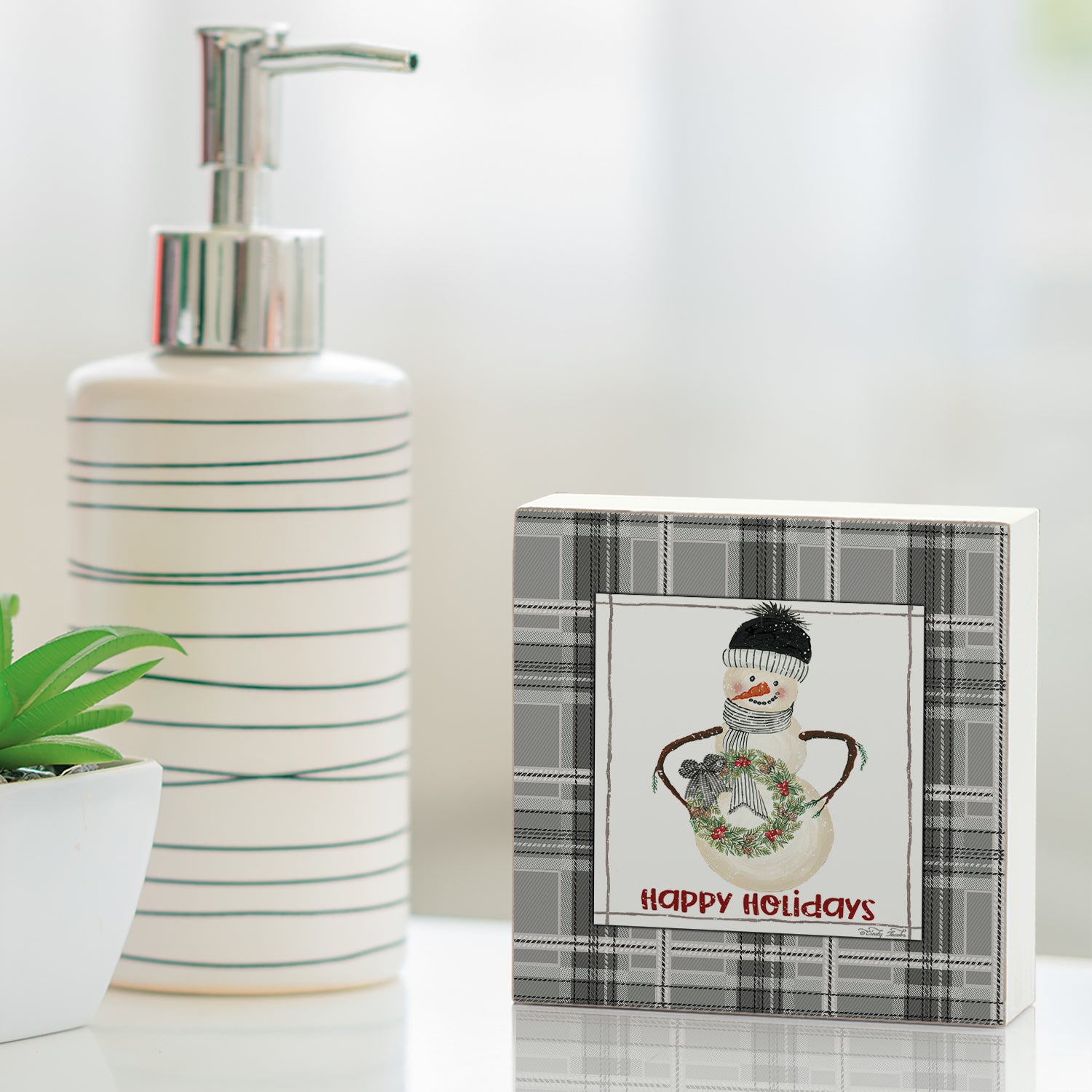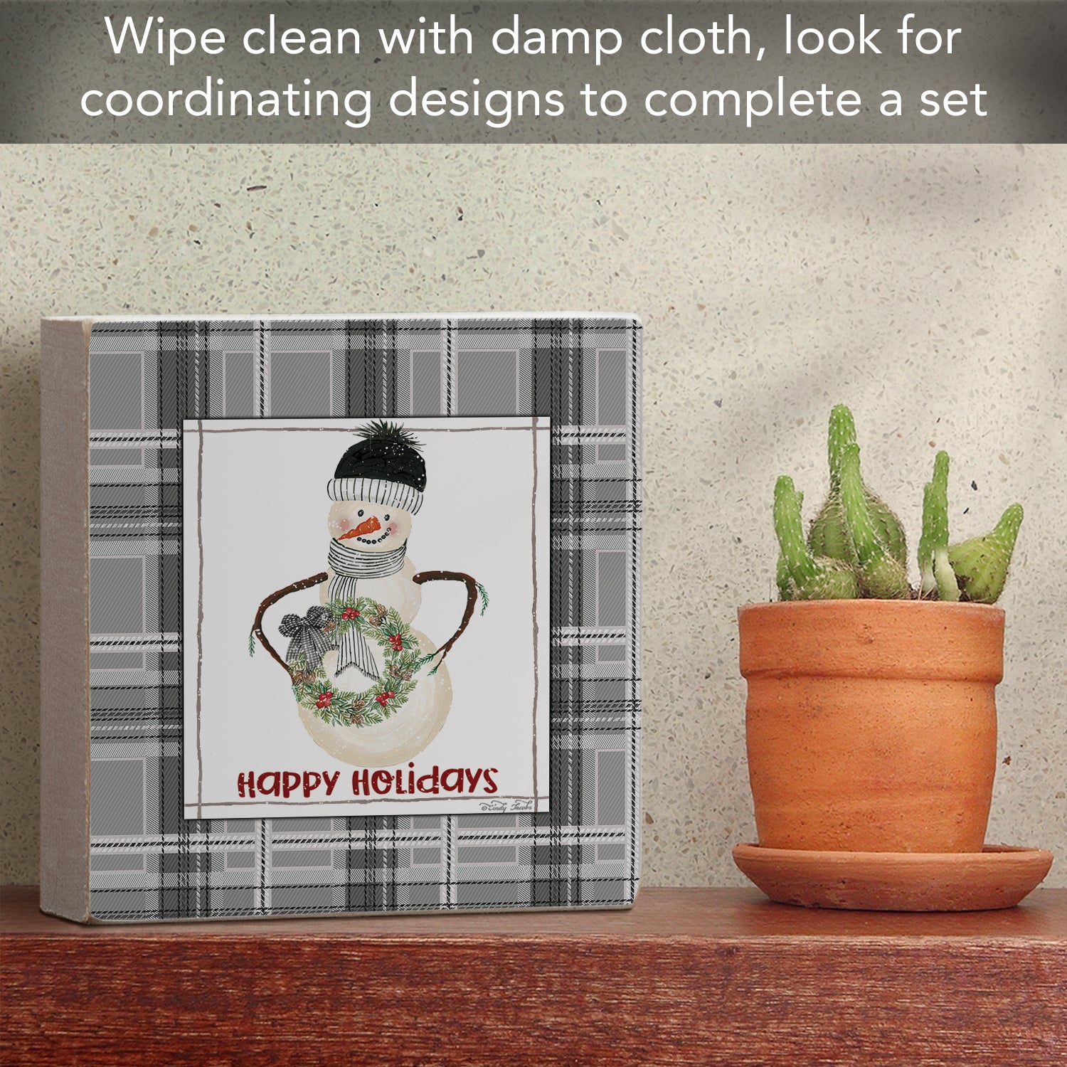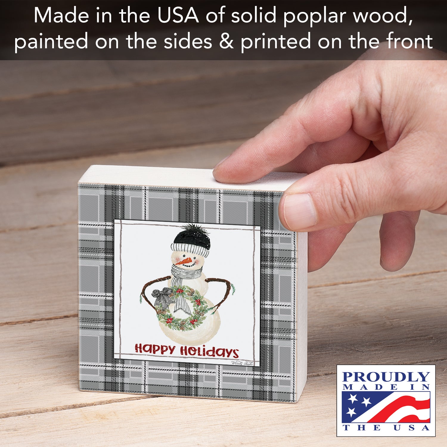 Happy Holidays Decorative Wooden Home Accent Sign 3.75" Square Made in the USA