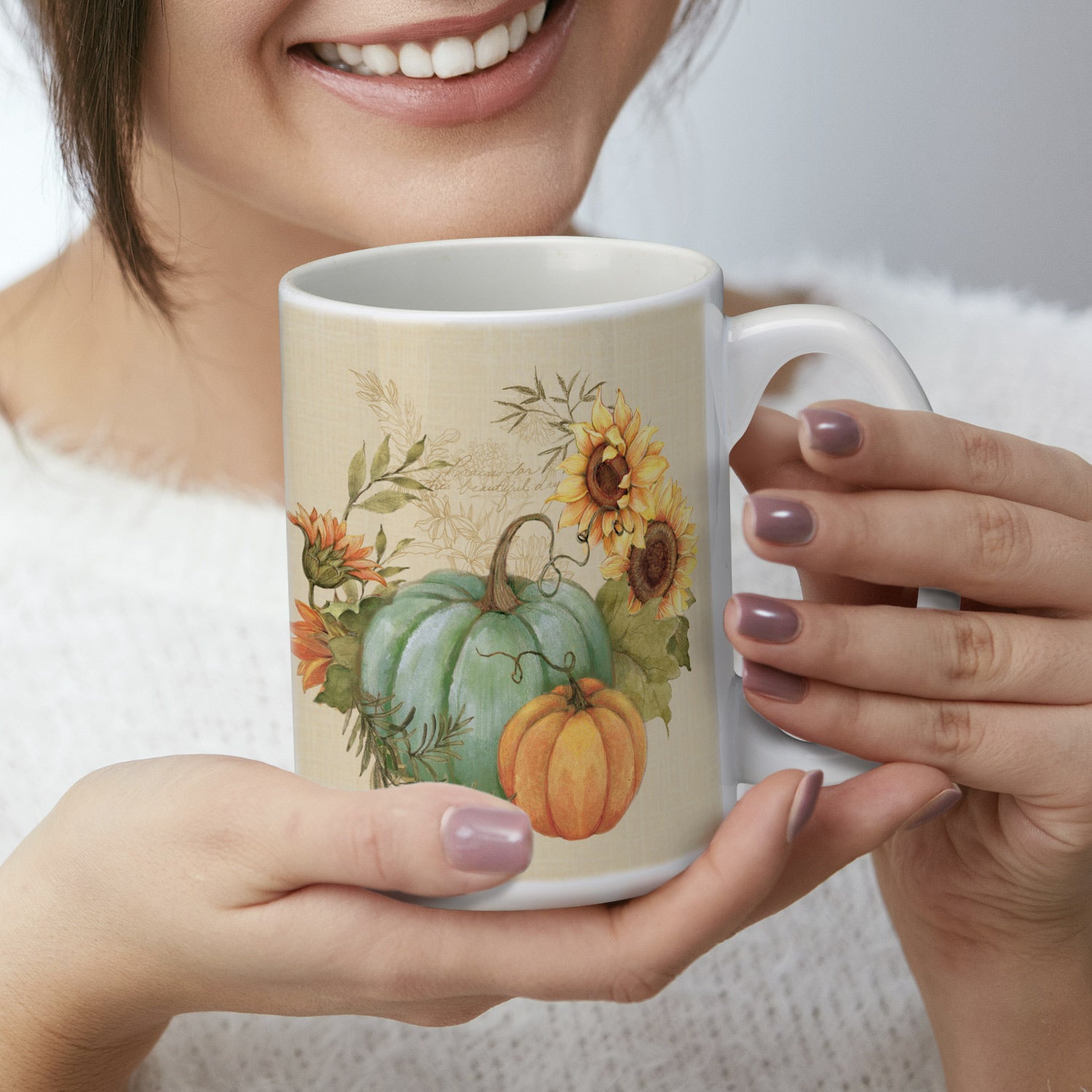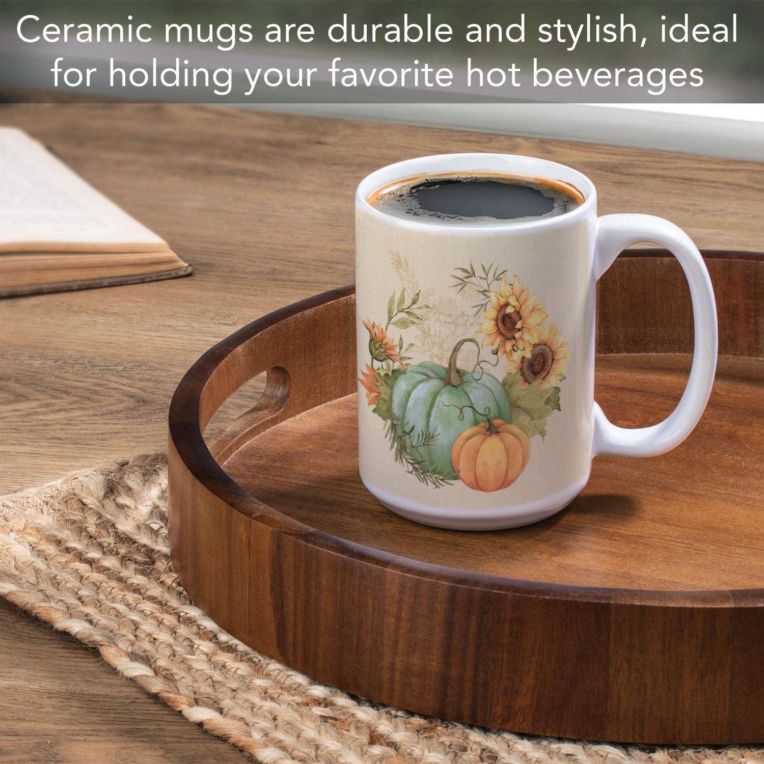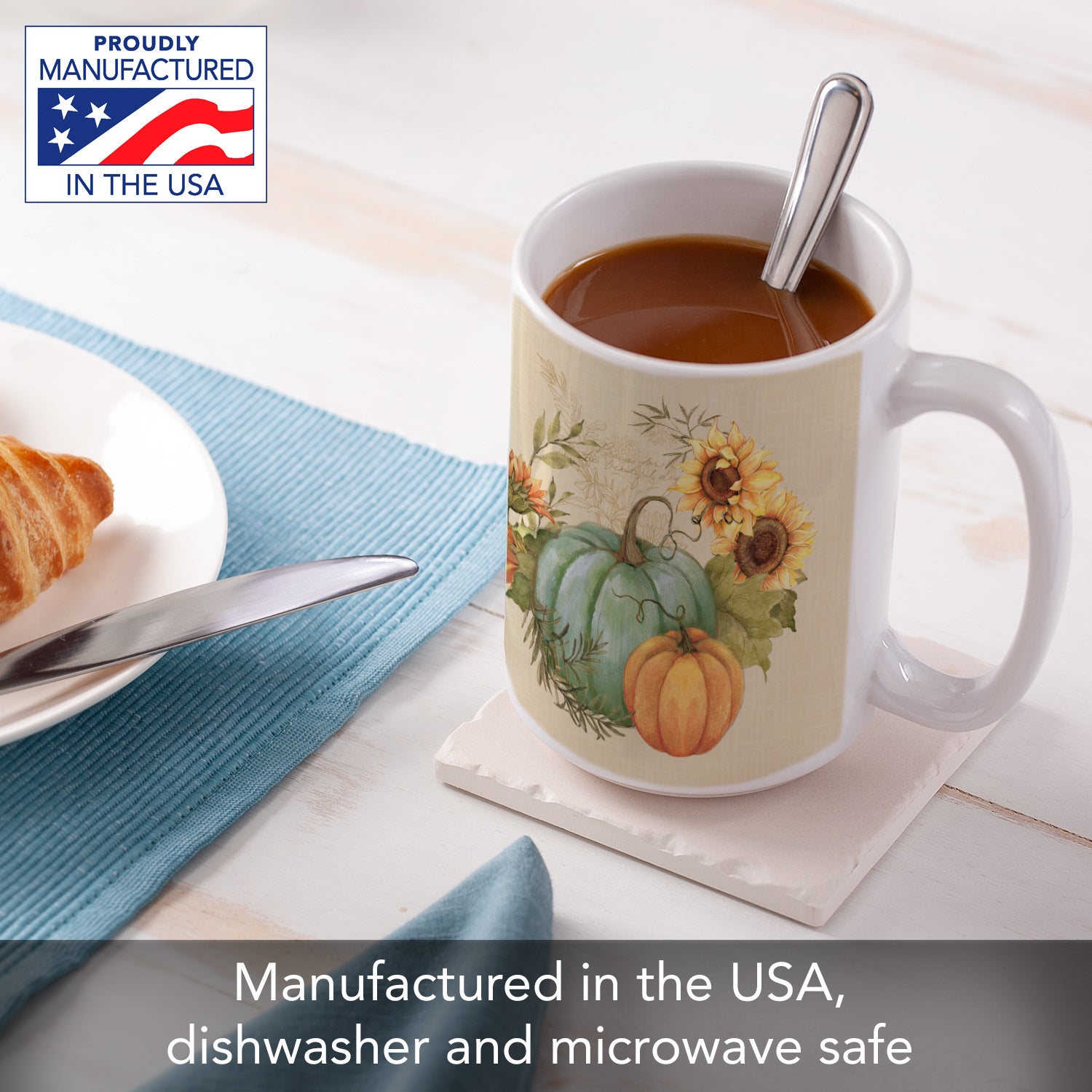 Highland Home Harvest Fields Large Decorative Ceramic Mug 15 oz. Manufactured in the USA