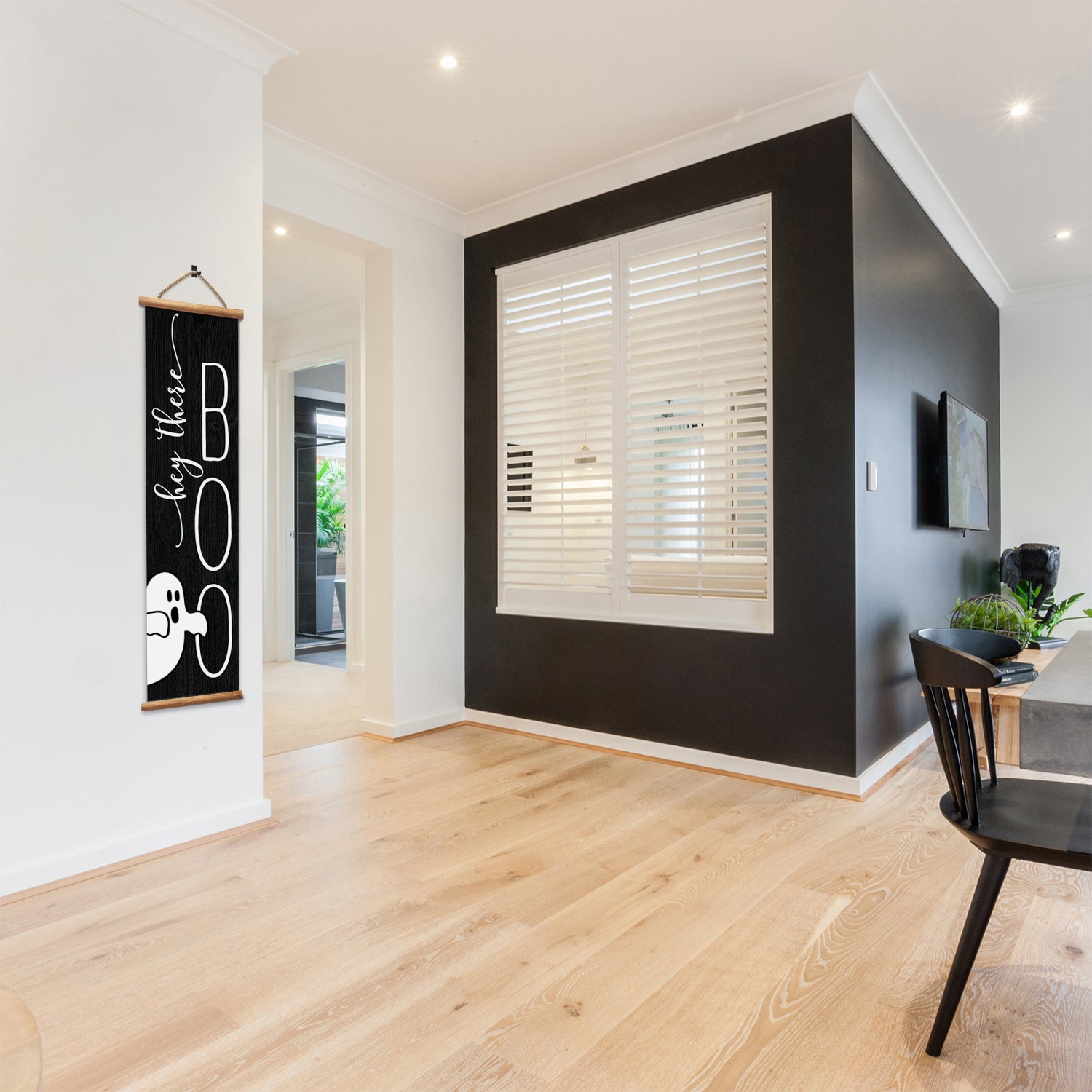 Hey Boo Welcome Indoor/Outdoor Vinyl Hanging Entryway Sign Made in the USA