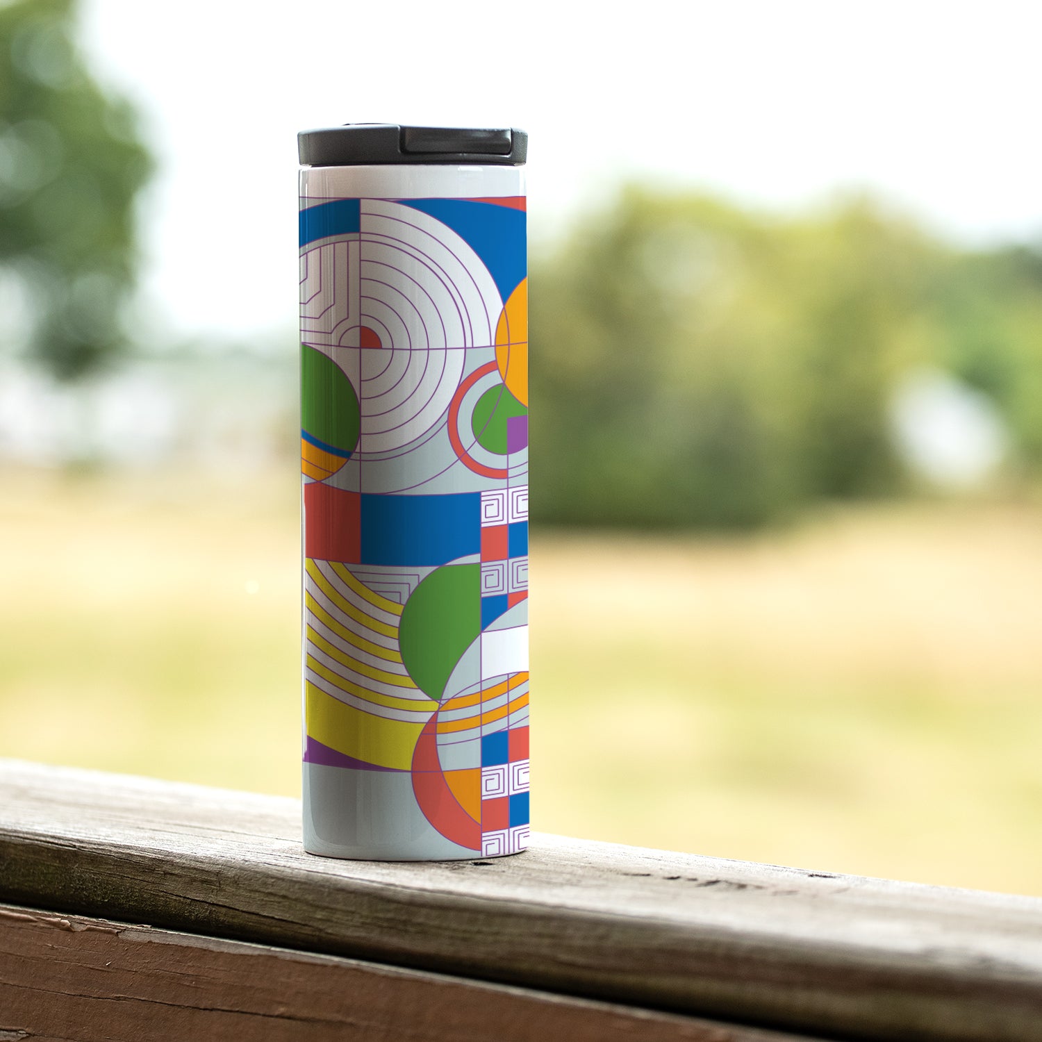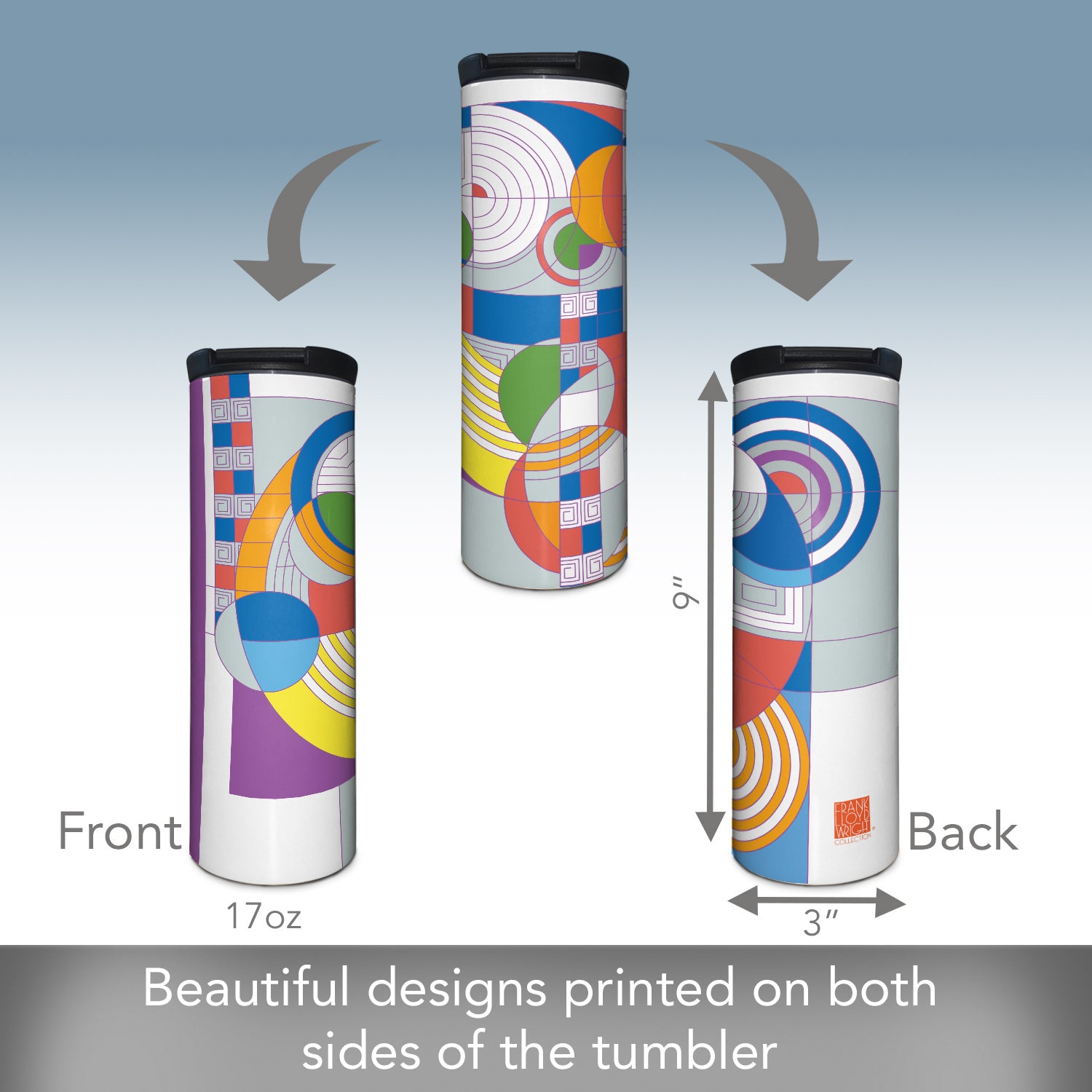 Frank Lloyd Wright's Hoffman Rug Design on 17 Ounce Insulated Stainless Steel Tumbler Manufactured in the USA
